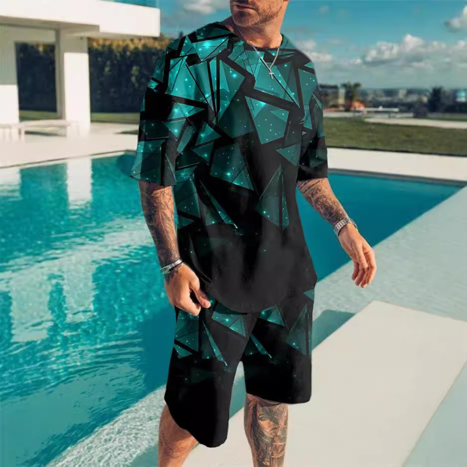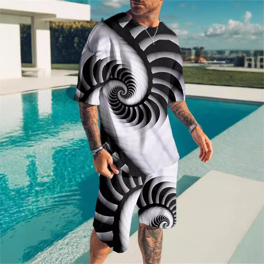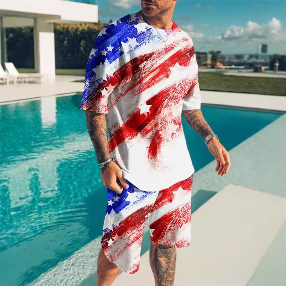 2024 국경 간 무역 반팔 티셔츠 비치 남성용 캐주얼 유럽과 미국의 인쇄 반바지 인쇄면 짧은 바지 남성복