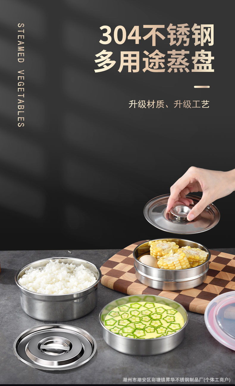뚜껑이있는 김이 나는 그릇 304 김이 나는 음식 스테인레스 스틸 가정용 김이 나는 계란 그릇 김이 나는 판 계란 커스터드 고온 저항하는 계란 디스크