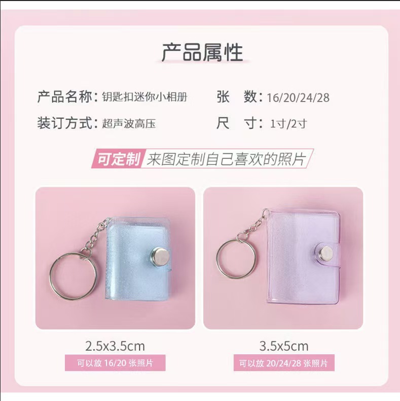 새로운 1.0inch 2inch 미니 사진 앨범 키 체인 펜던트 학생 가방 삽입 사진 앨범 ID 사진 보관 앨범