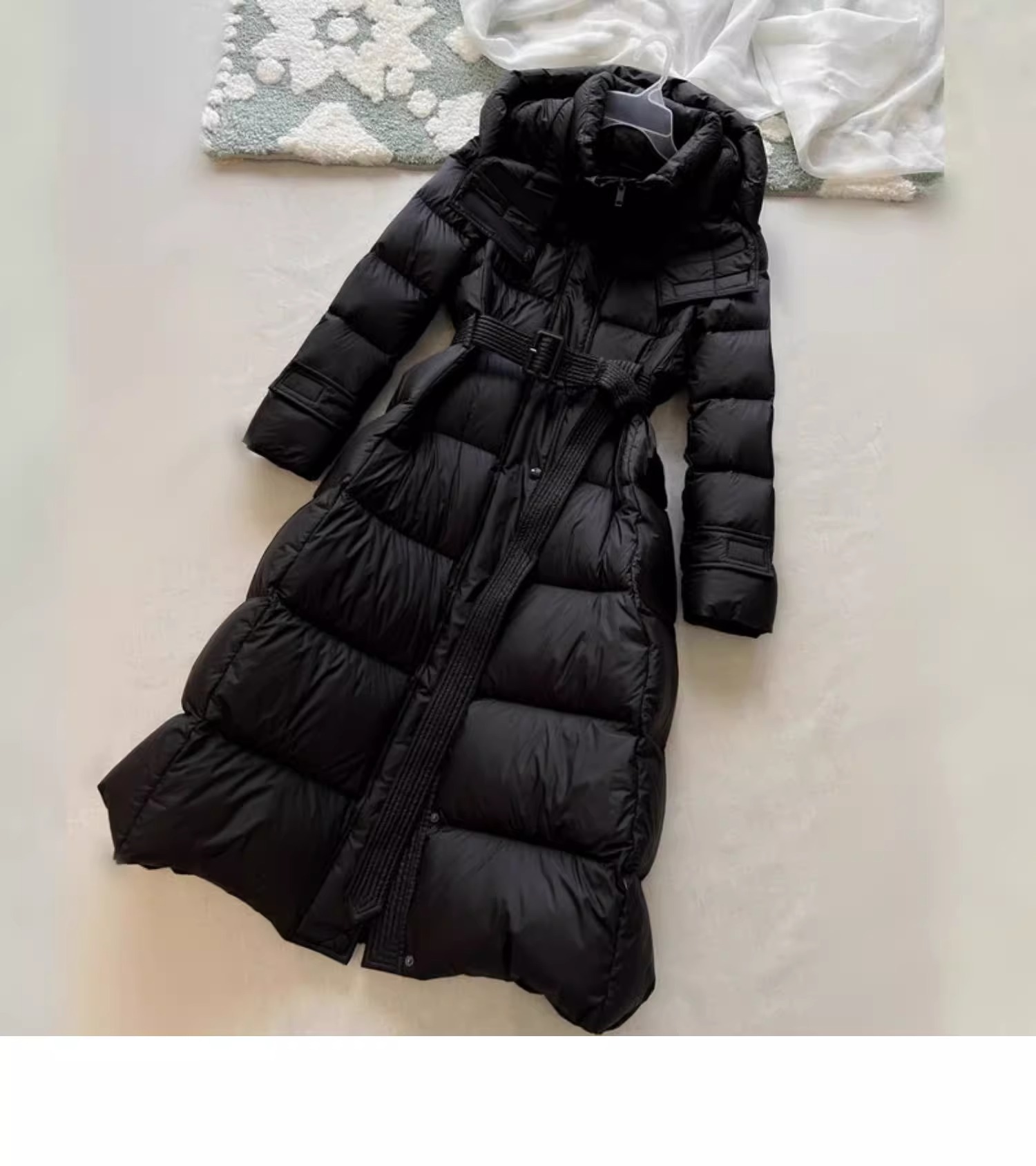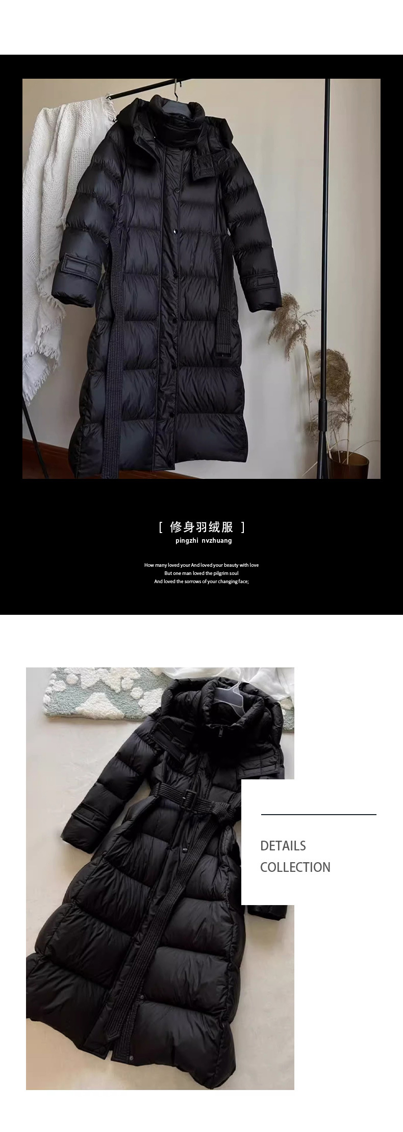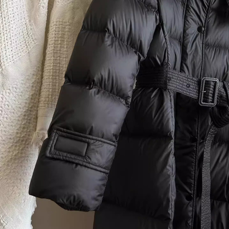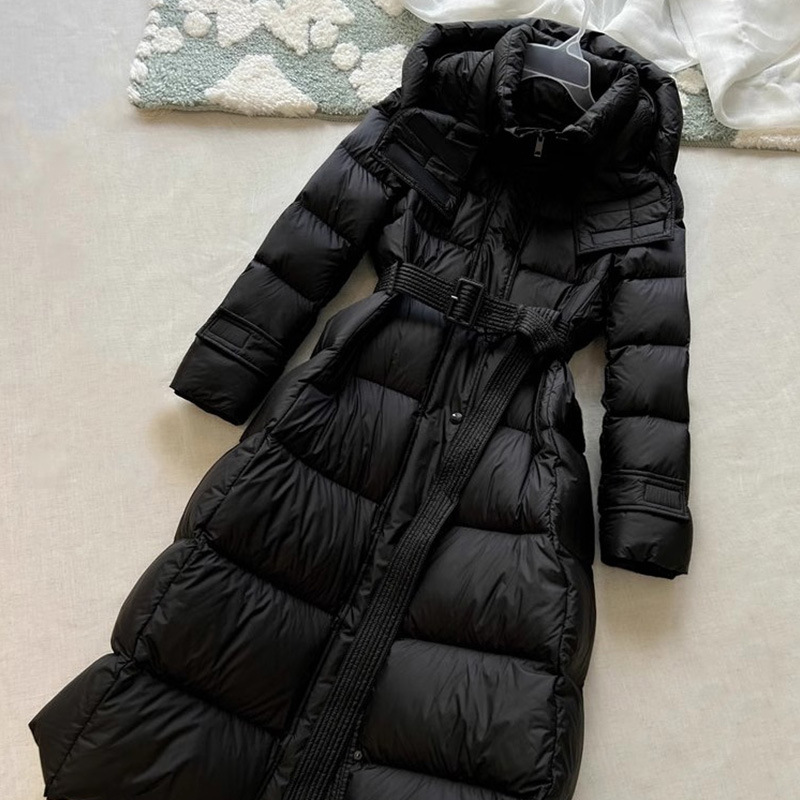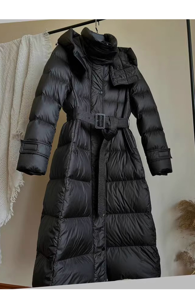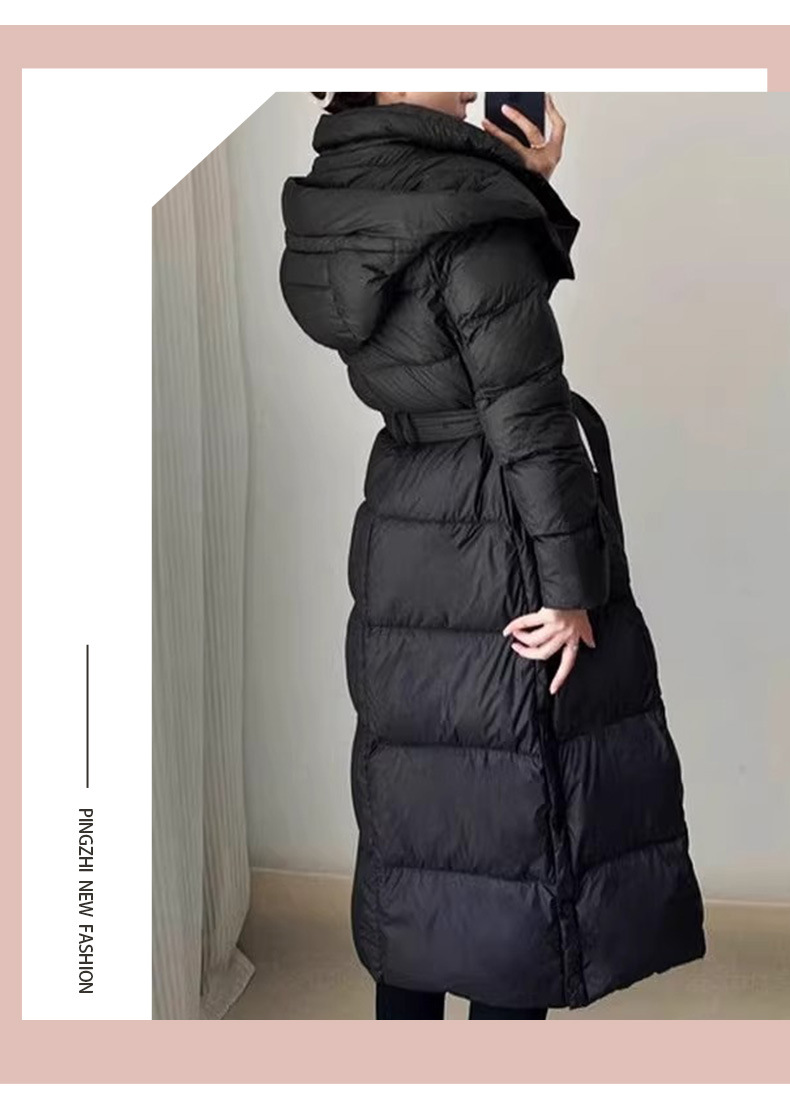 긴 허리 슬림 다운 재킷 두꺼운 블랙 코트 하이 엔드 Pinghu 여성의 90 흰 오리 다운 후드 겨울