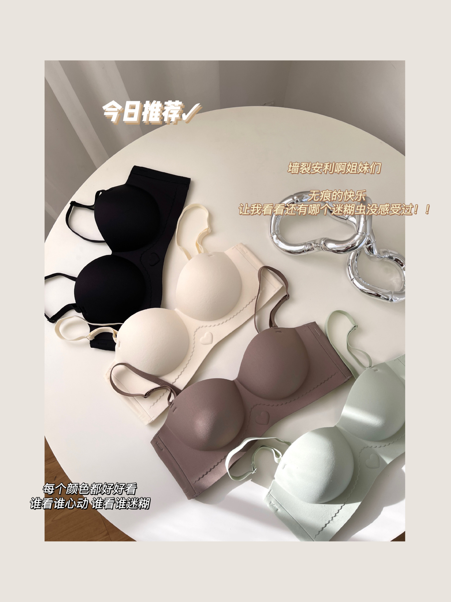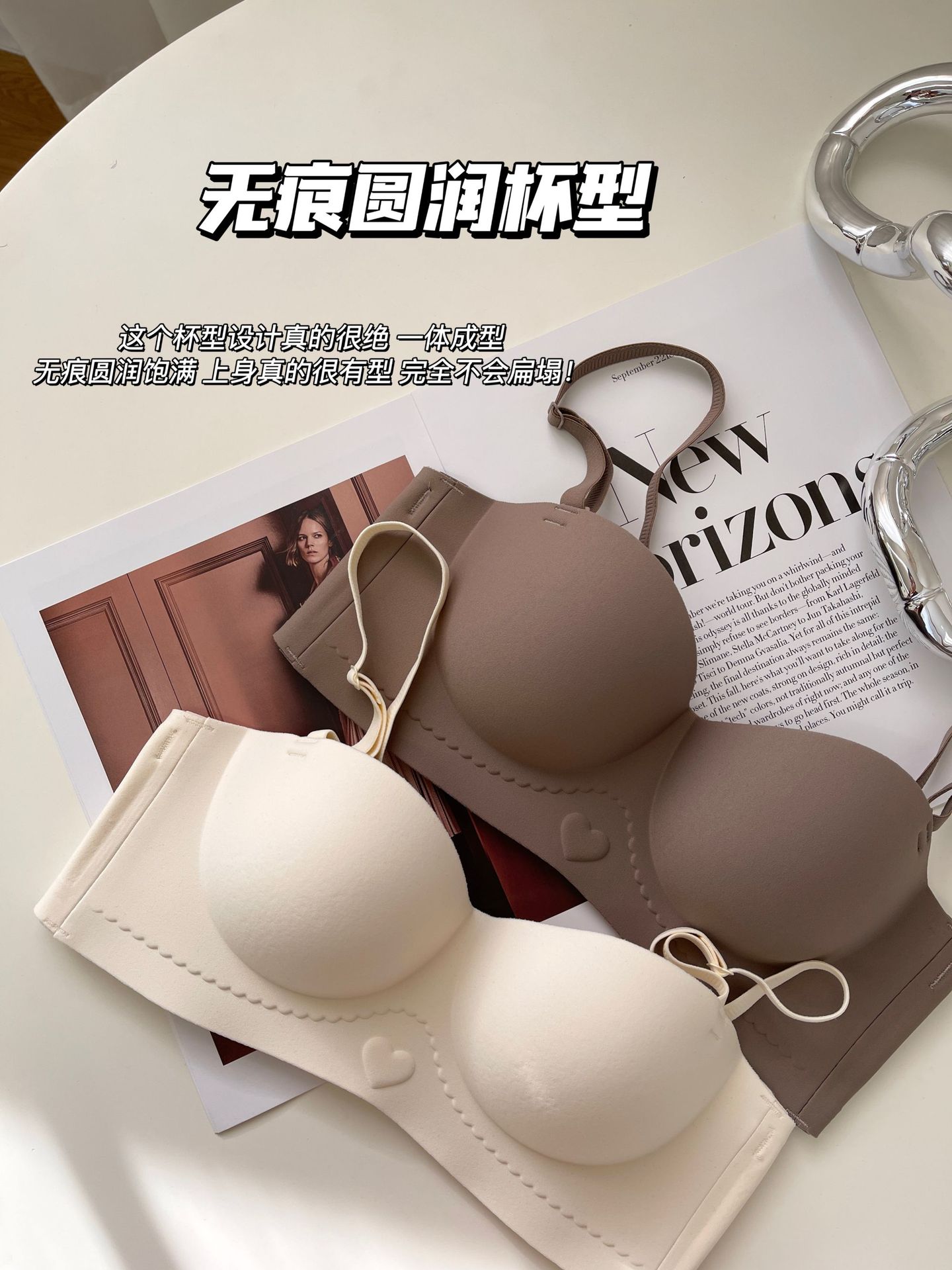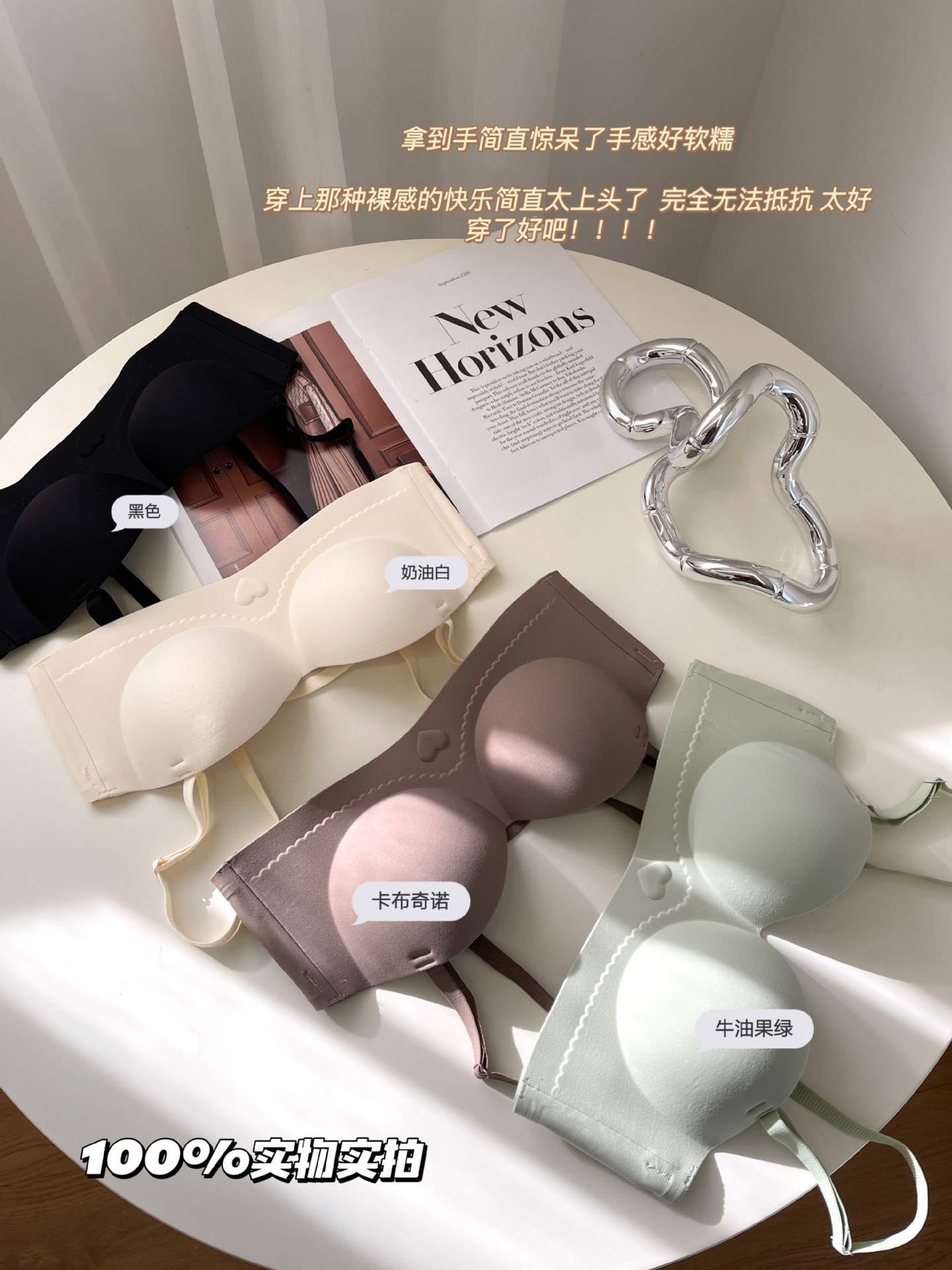 만화 가슴 부드러운 지원 무자비한 브래지어 세트 추적없는 작은 가슴 푸시 업 스트랩리스 미끄럼 방지 속옷 팬티 여성