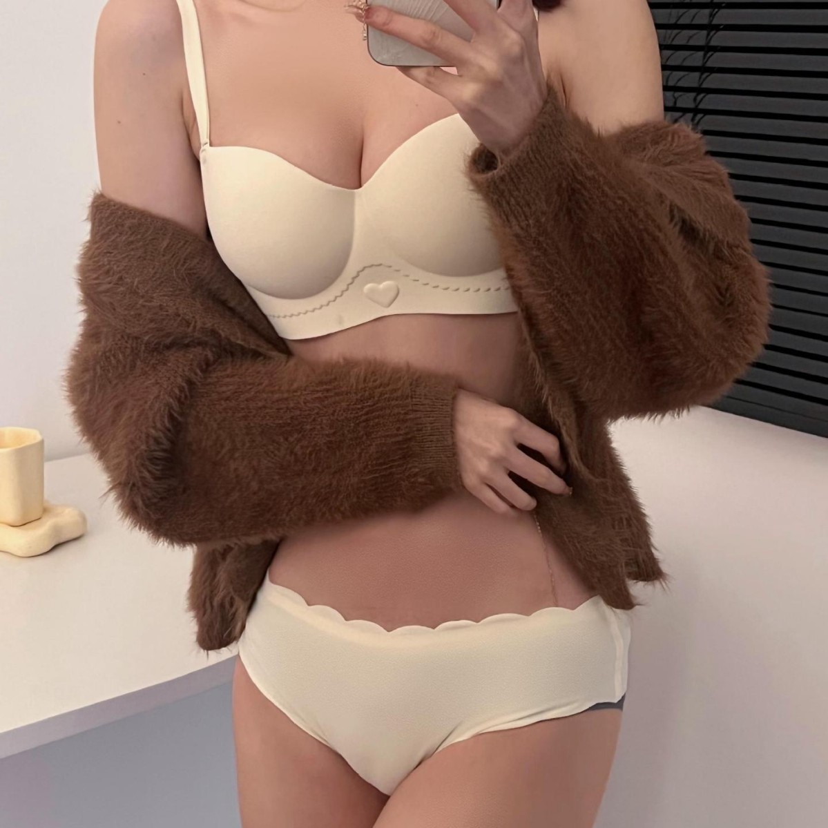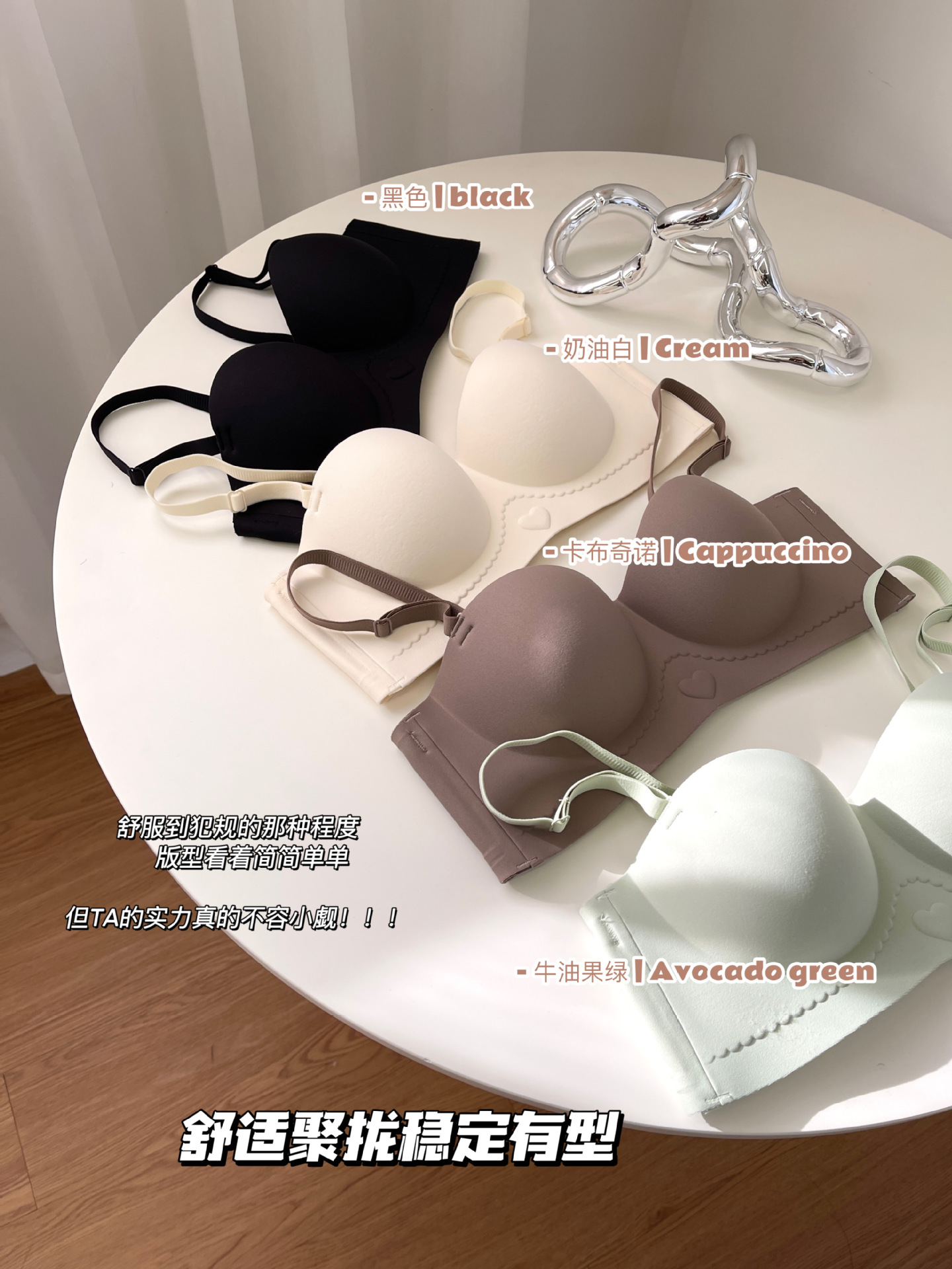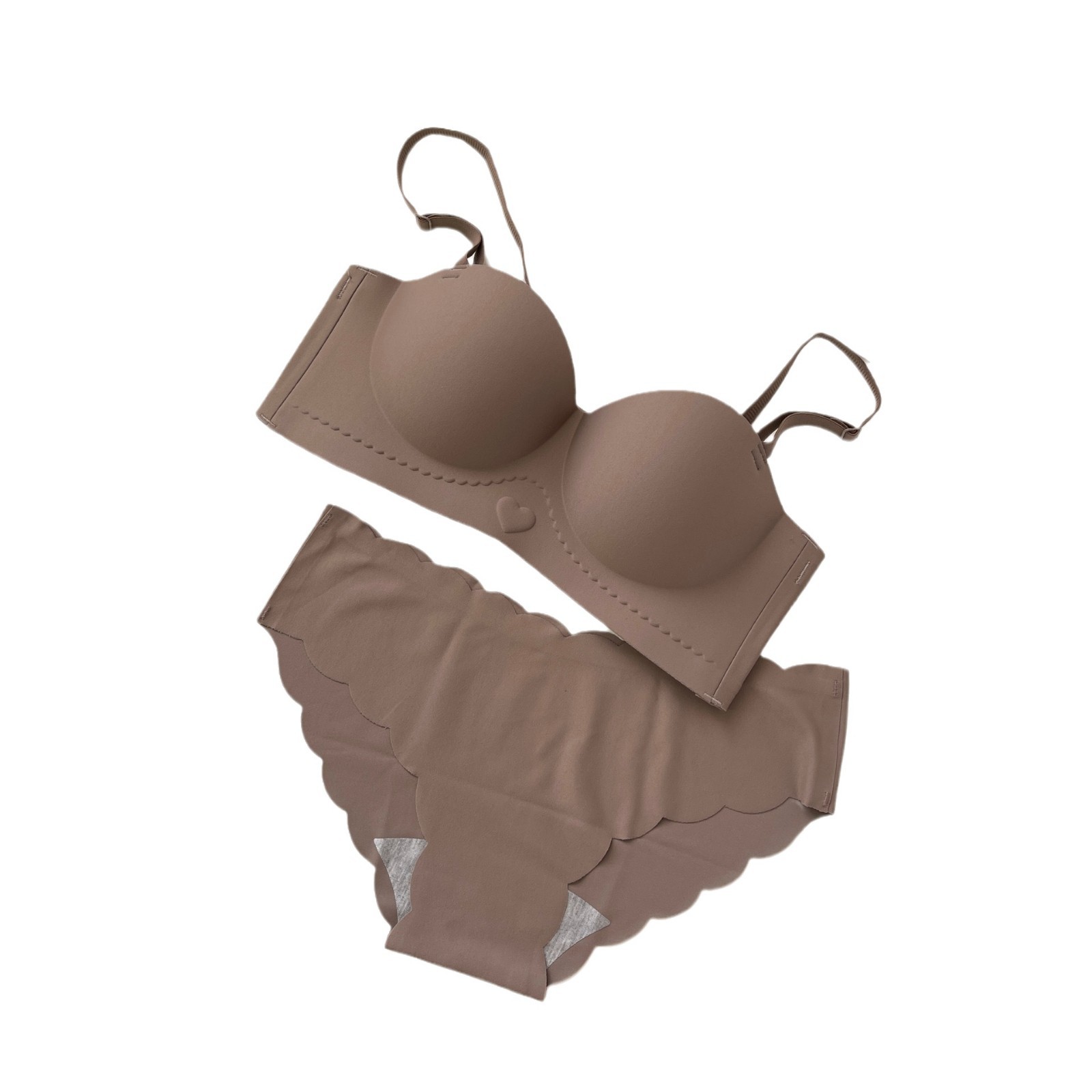 만화 가슴 부드러운 지원 무자비한 브래지어 세트 추적없는 작은 가슴 푸시 업 스트랩리스 미끄럼 방지 속옷 팬티 여성