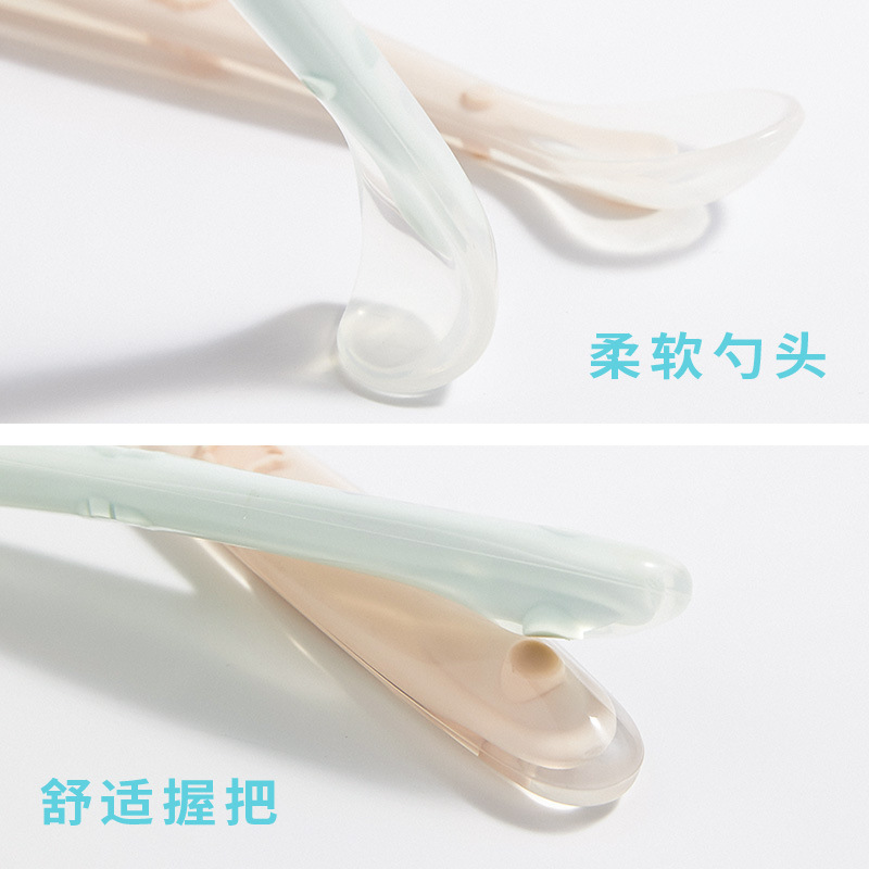 어린이 실리콘 부드러운 플라스틱 스푼 세트 신생아 아기 아기 훈련 음식 먹이 식기 온도 젤