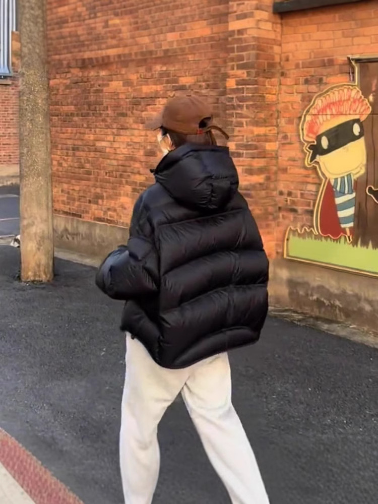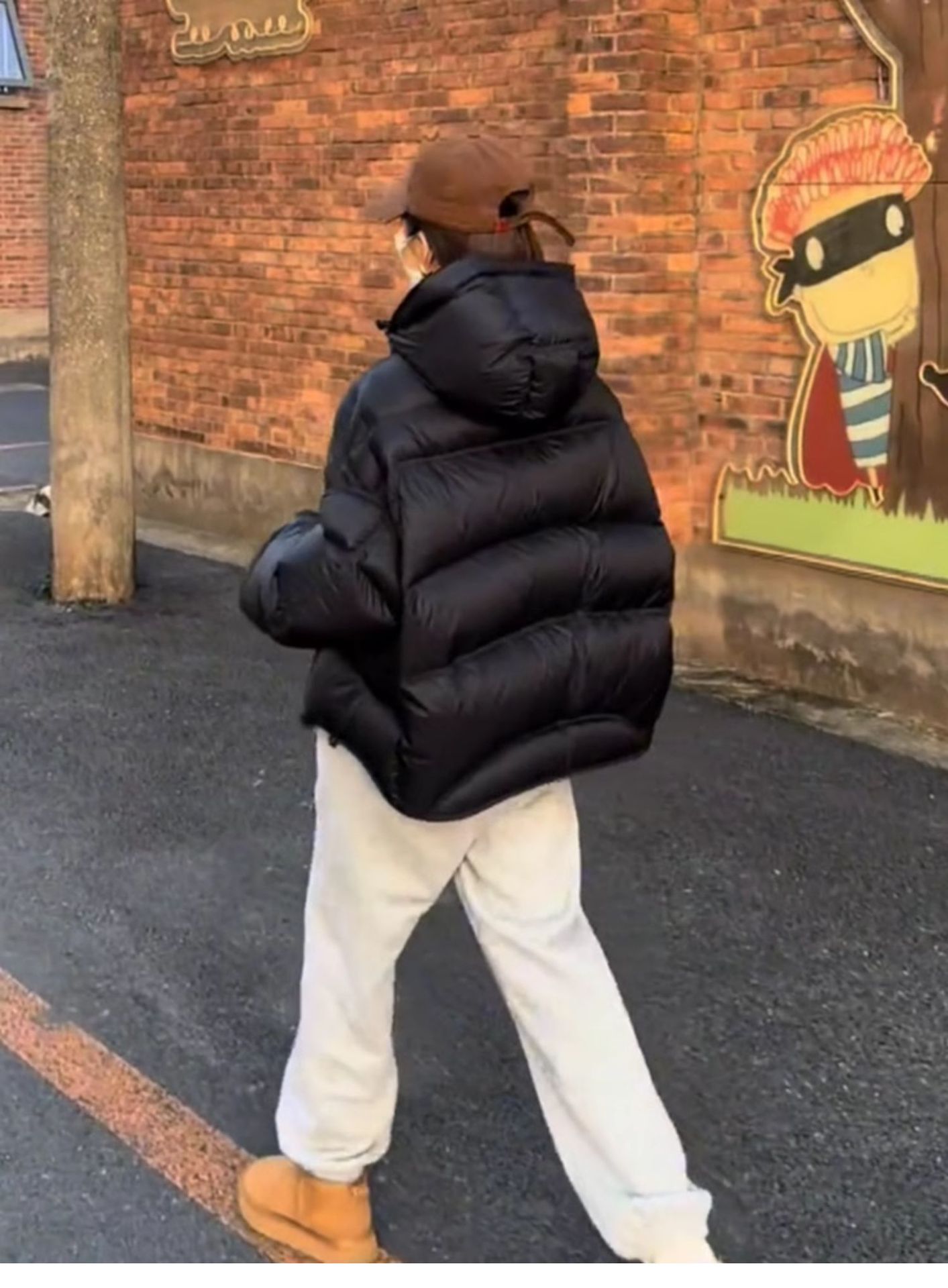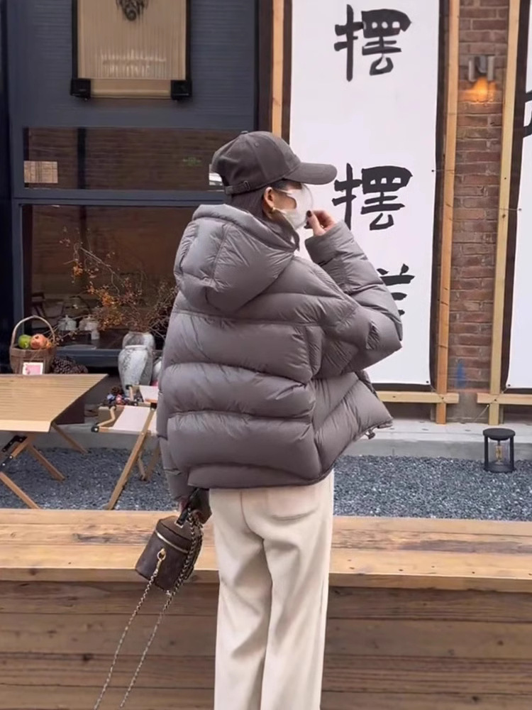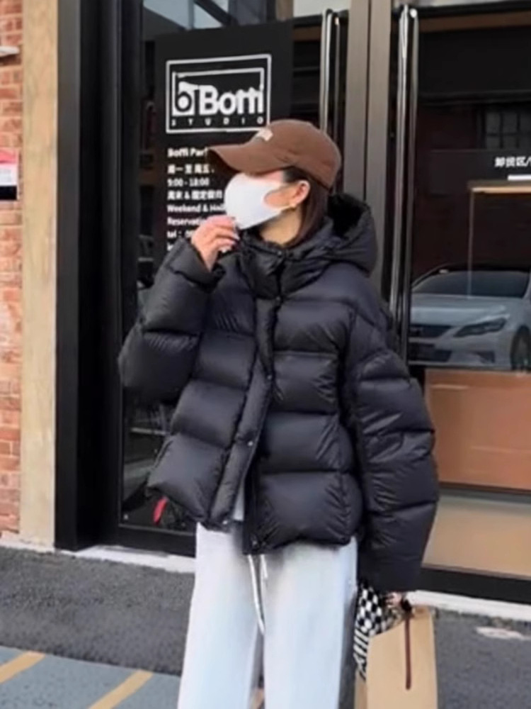 소프트 왁스 퍼프 짧은 후드 터틀 백 다운 재킷 여성의 겨울 새로운 도착 느슨한 슬리밍 빵 코트