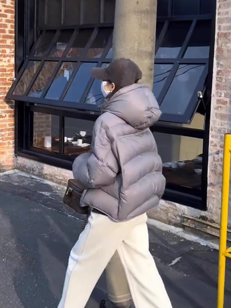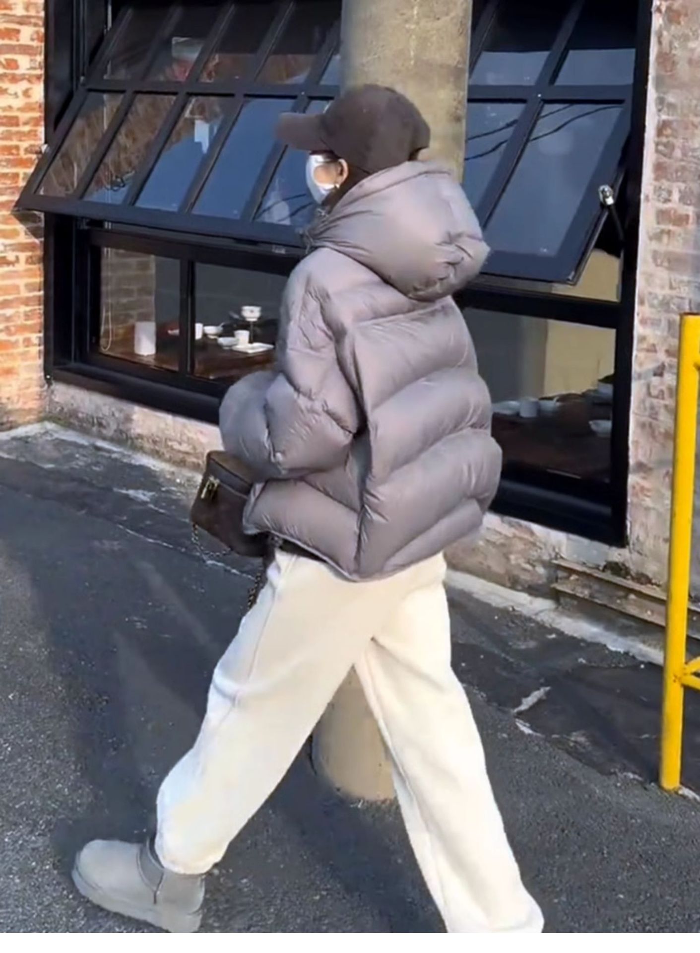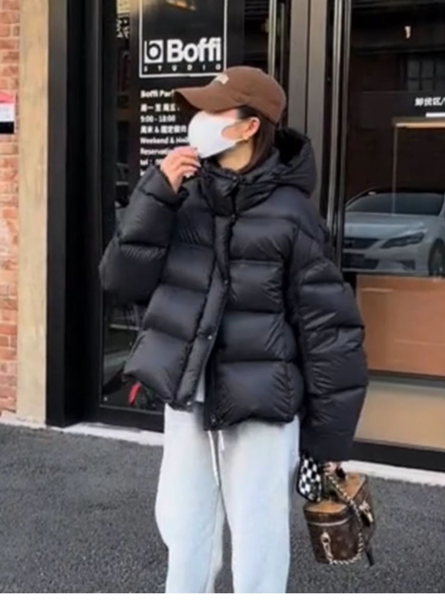 소프트 왁스 퍼프 짧은 후드 터틀 백 다운 재킷 여성의 겨울 새로운 도착 느슨한 슬리밍 빵 코트