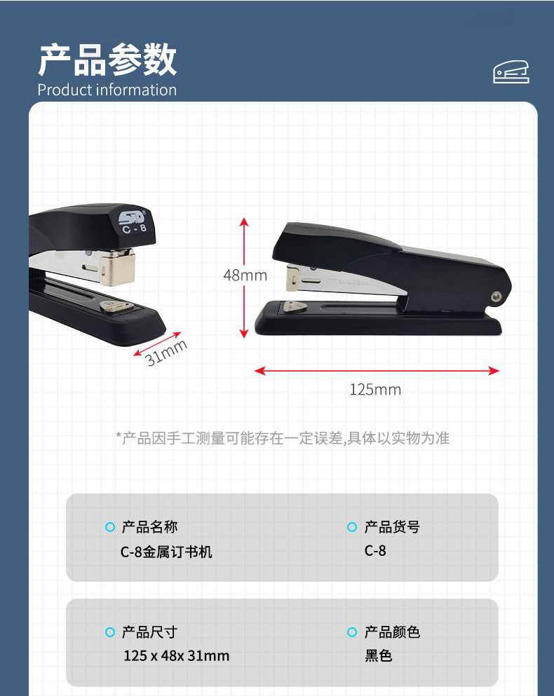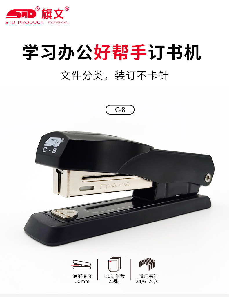 Qiwen C-8 홈 오피스 학생 문구 스테이플러 No. 12 노동 절약형 고가치 스테이플러 스테이플러