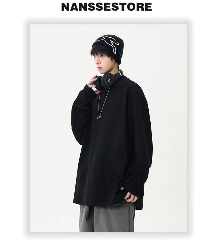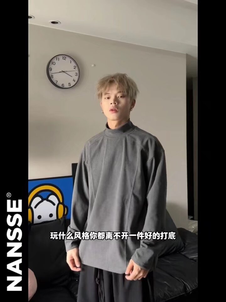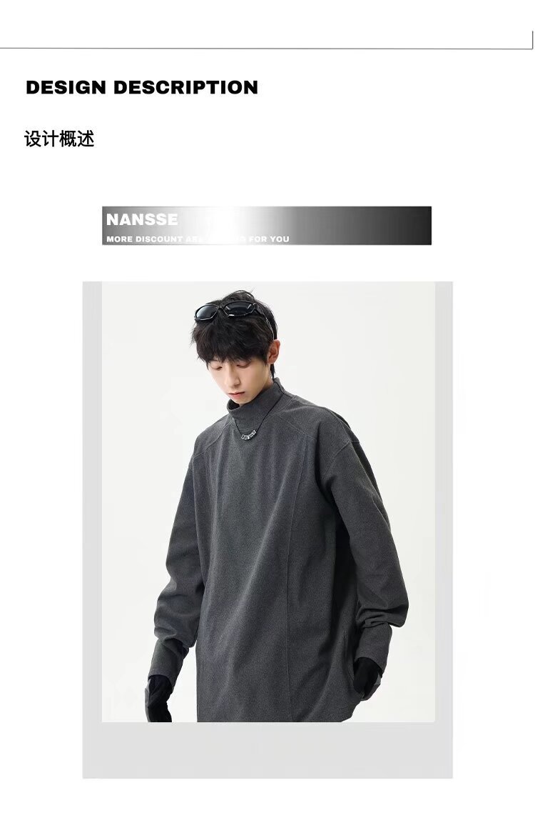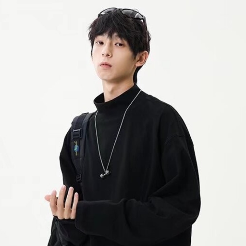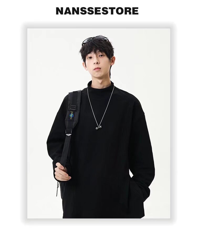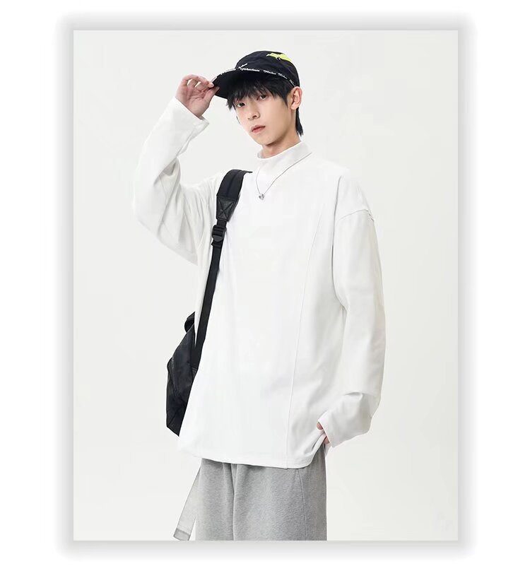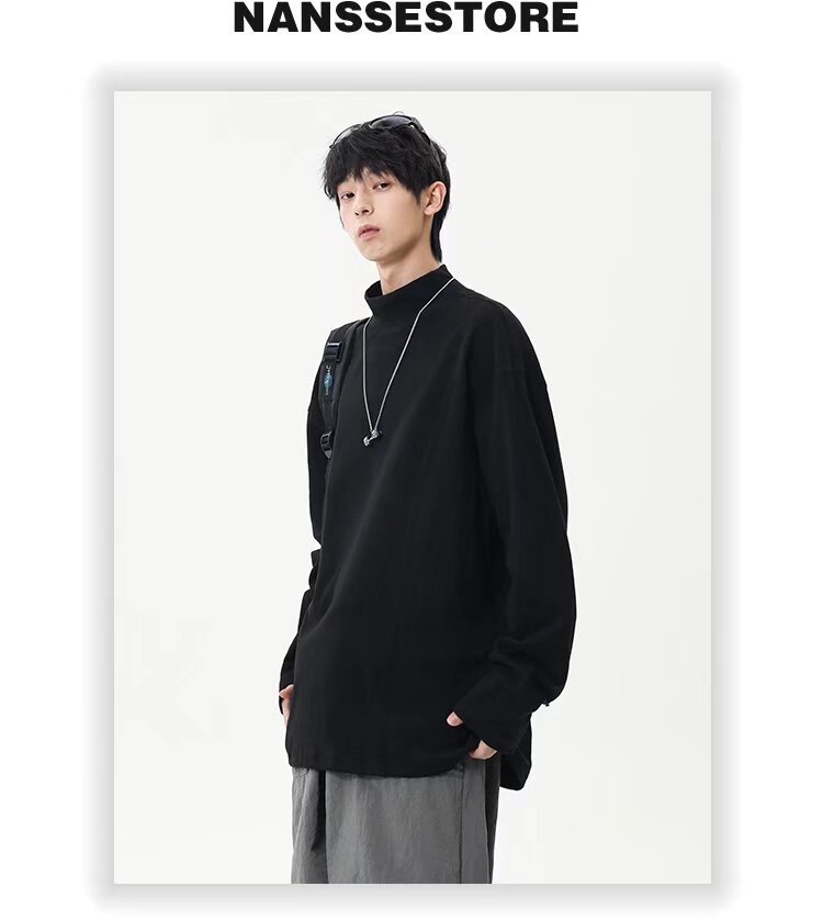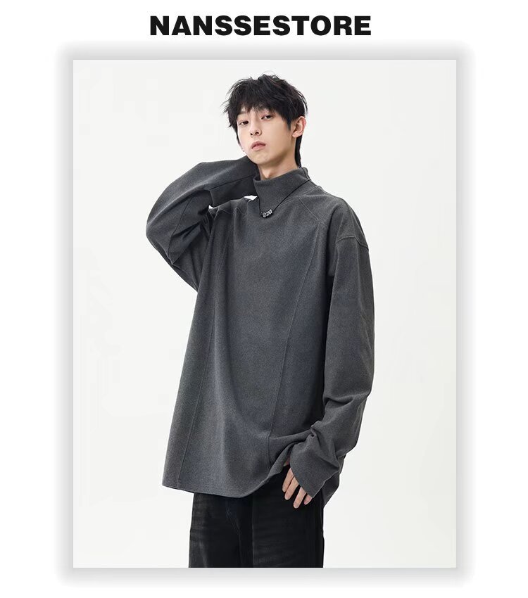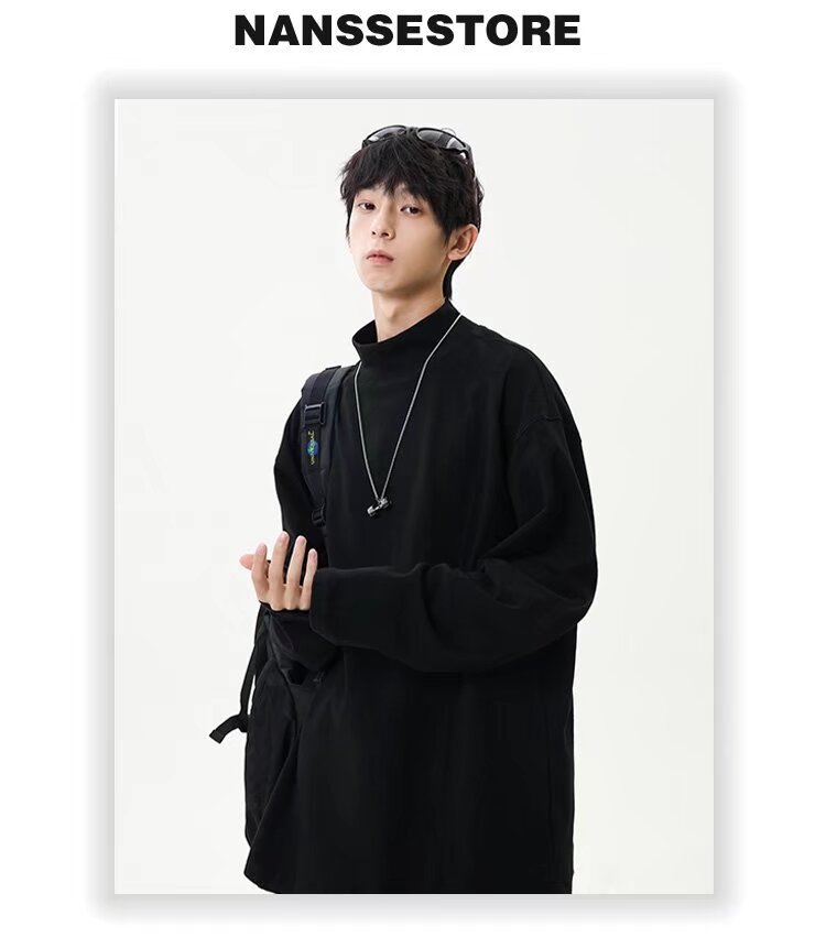 솔리드 컬러 세미 하이 넥 벨벳 긴팔 티셔츠 남성 가을 및 겨울 미국 디자인 센스 숄더 스웨트 셔츠 (베이스 탑 포함)