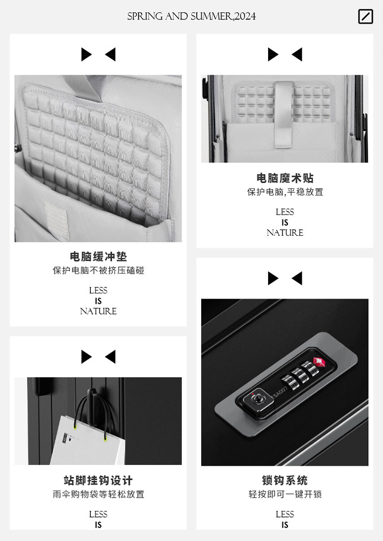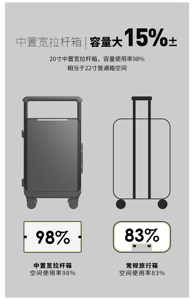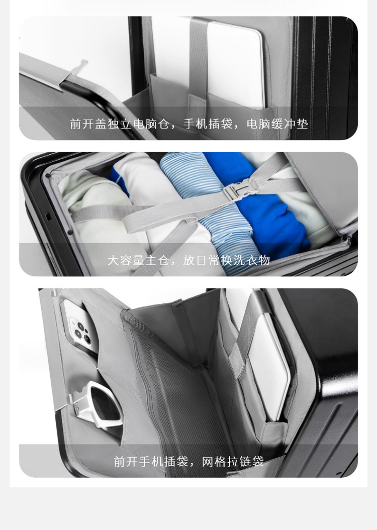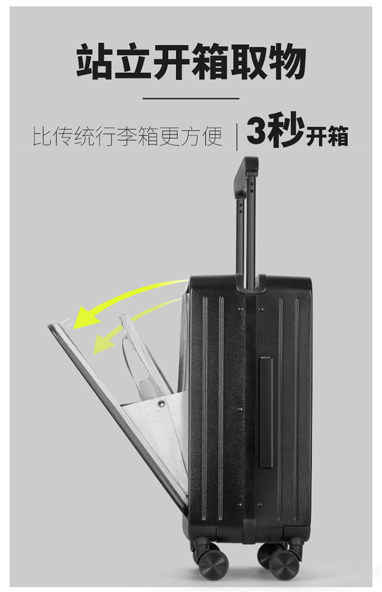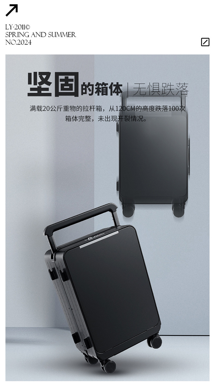인터넷 인기 신상품 전면 개방형 와이드 레버 캐리어, 비즈니스용 대용량 저소음 여행 가방, 남성용 만능 바퀴 패션 캐리어, 비밀번호 잠금 캐리어
