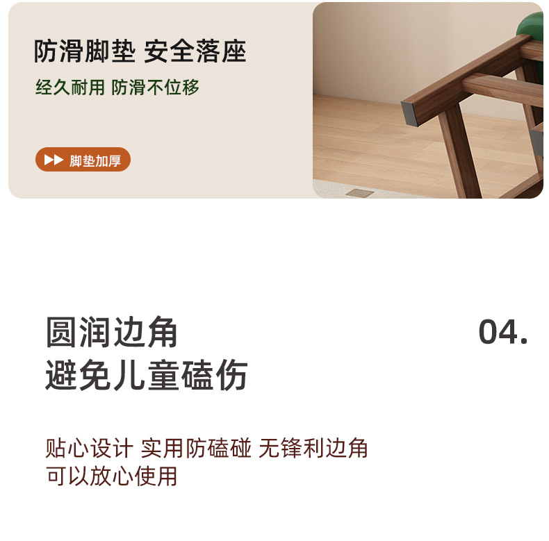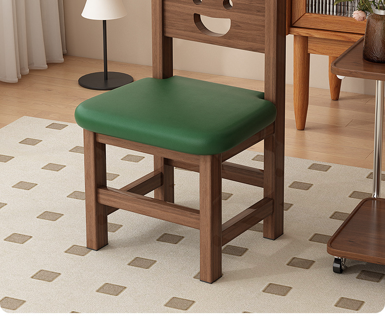 [부드러운 등받이 의자] 월넛 컬러 + 앉은키 28cm + 그린 시트쿠션