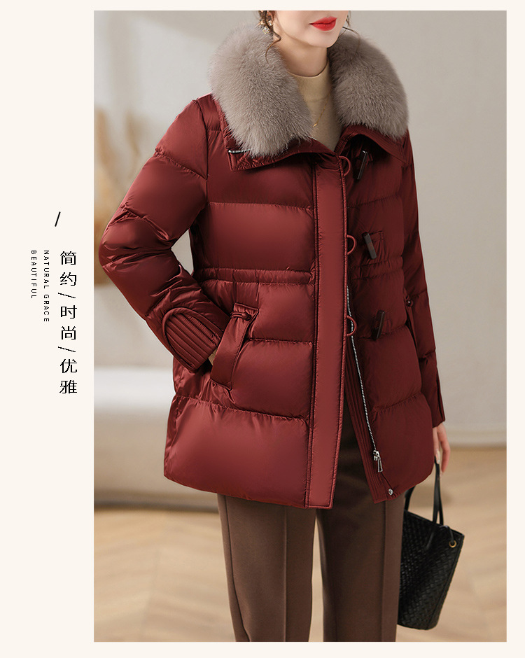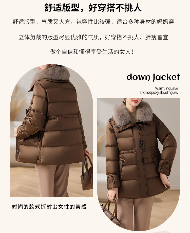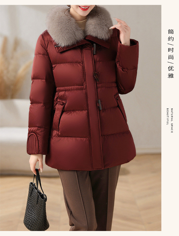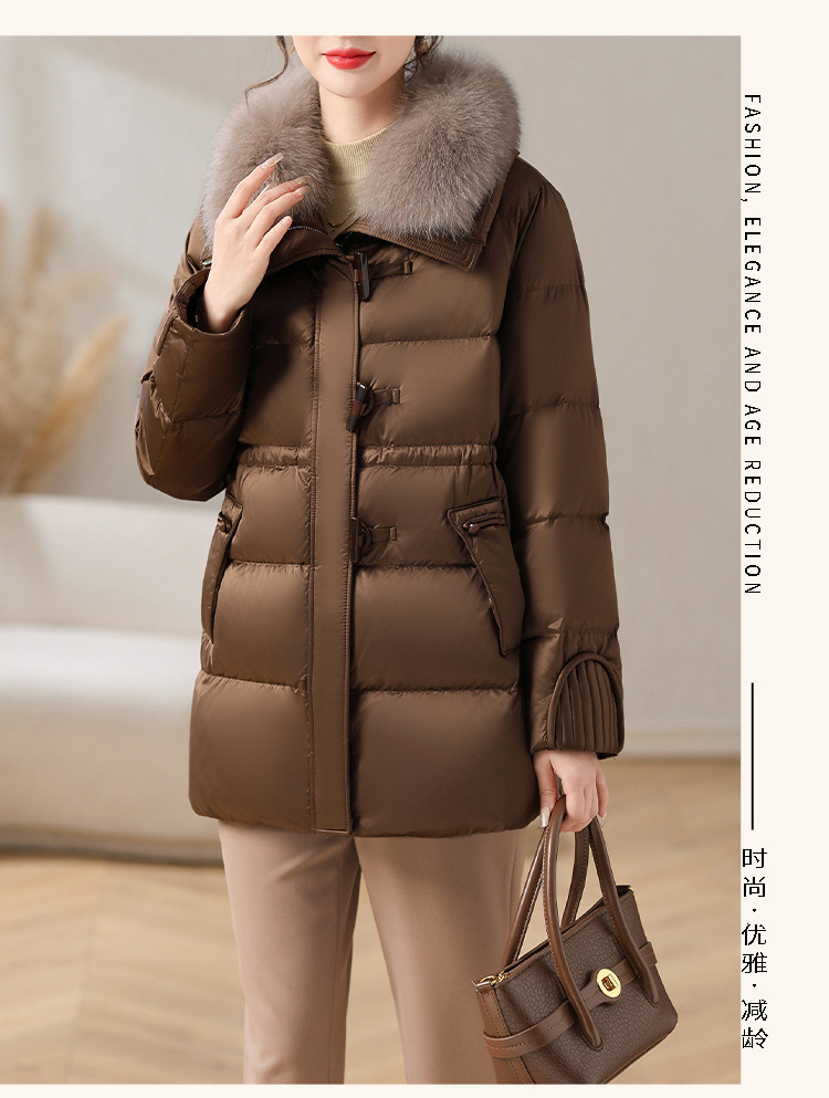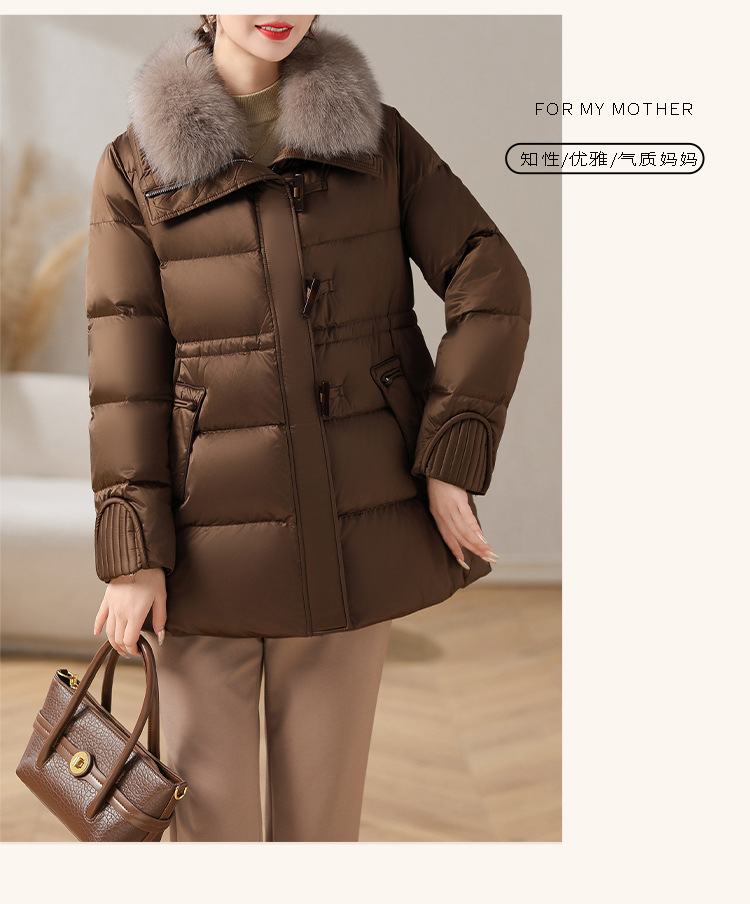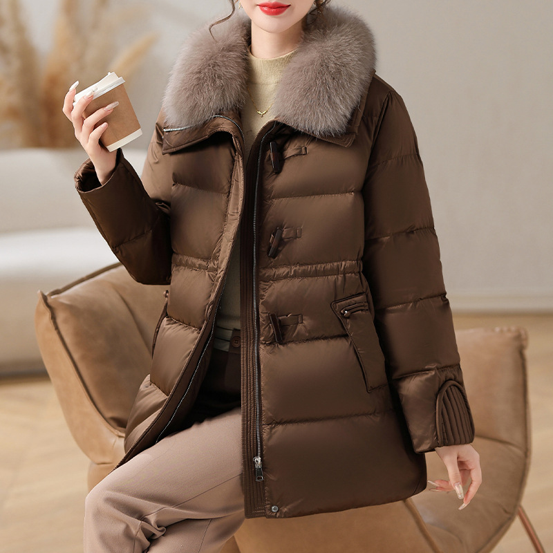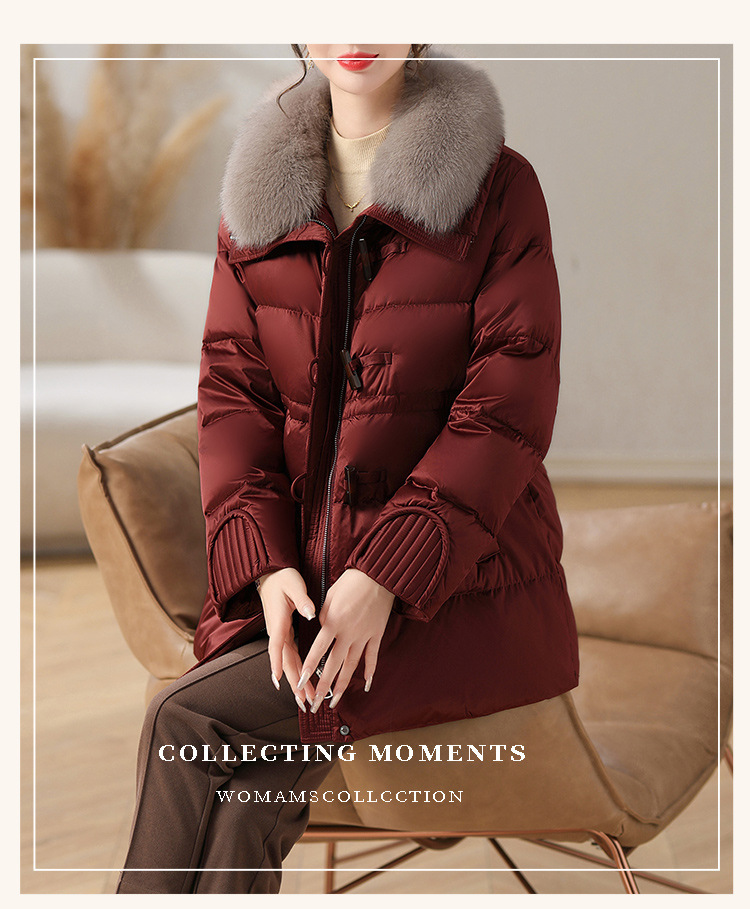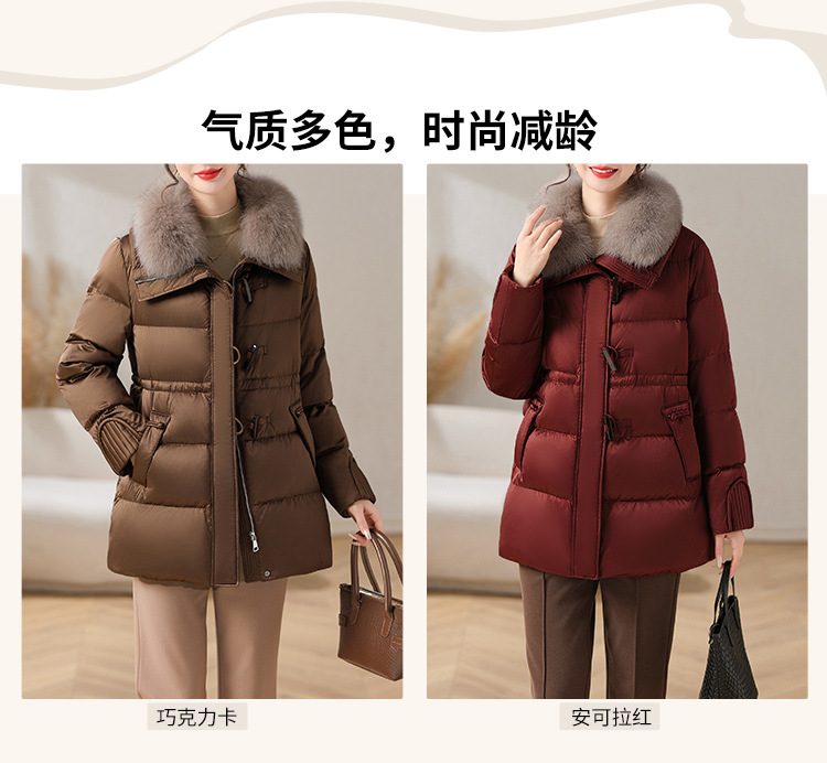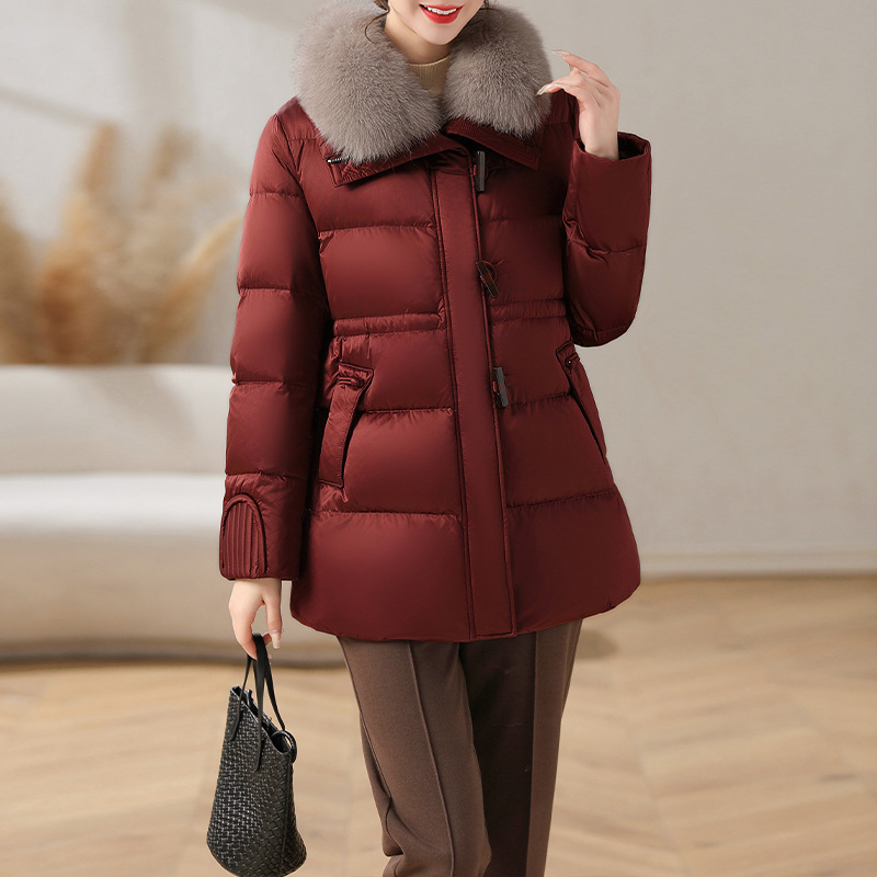 중년 어머니 겨울 다운 재킷 2024 새로운 허리 서양식 연령 감소 여성 여우 모피 칼라 코트