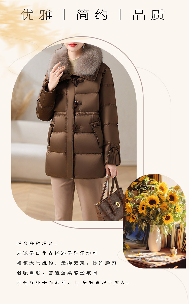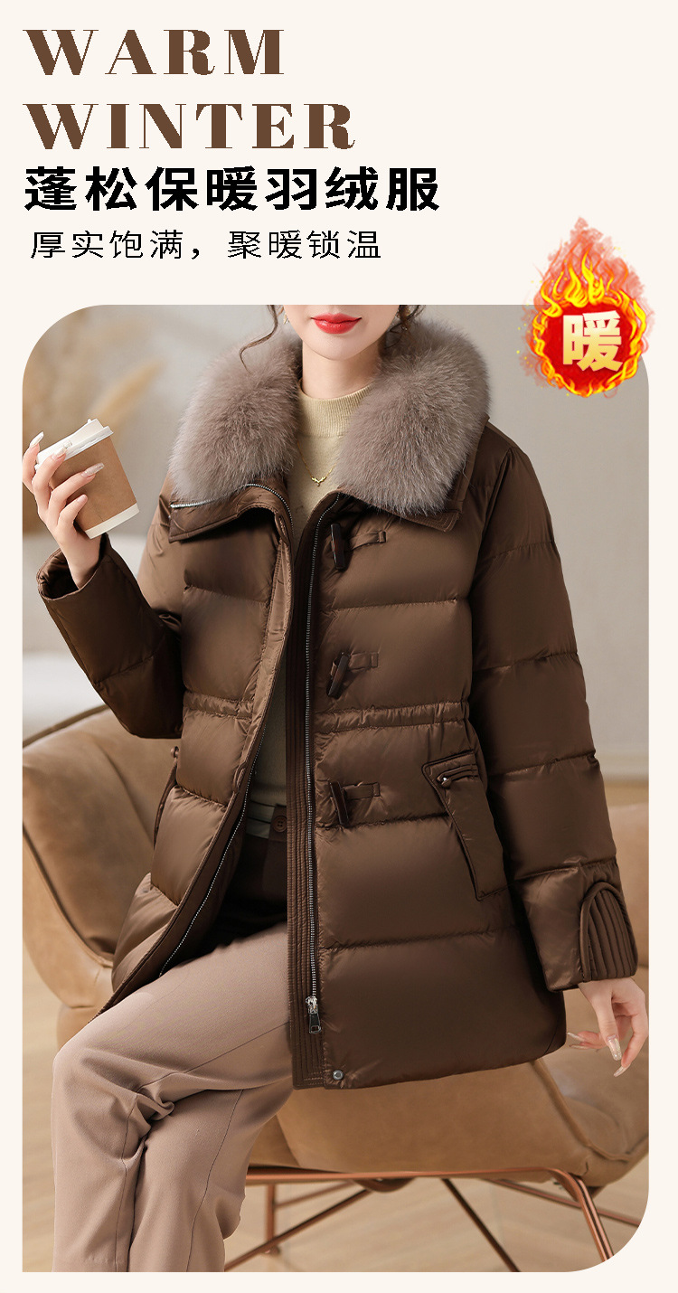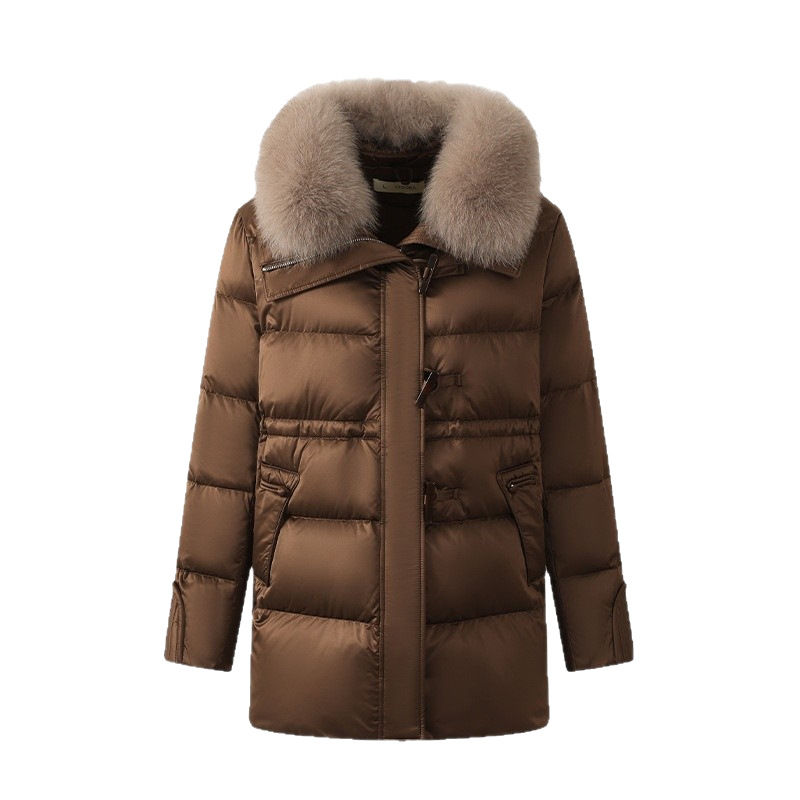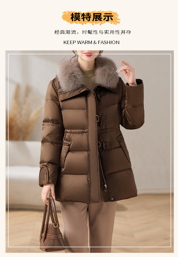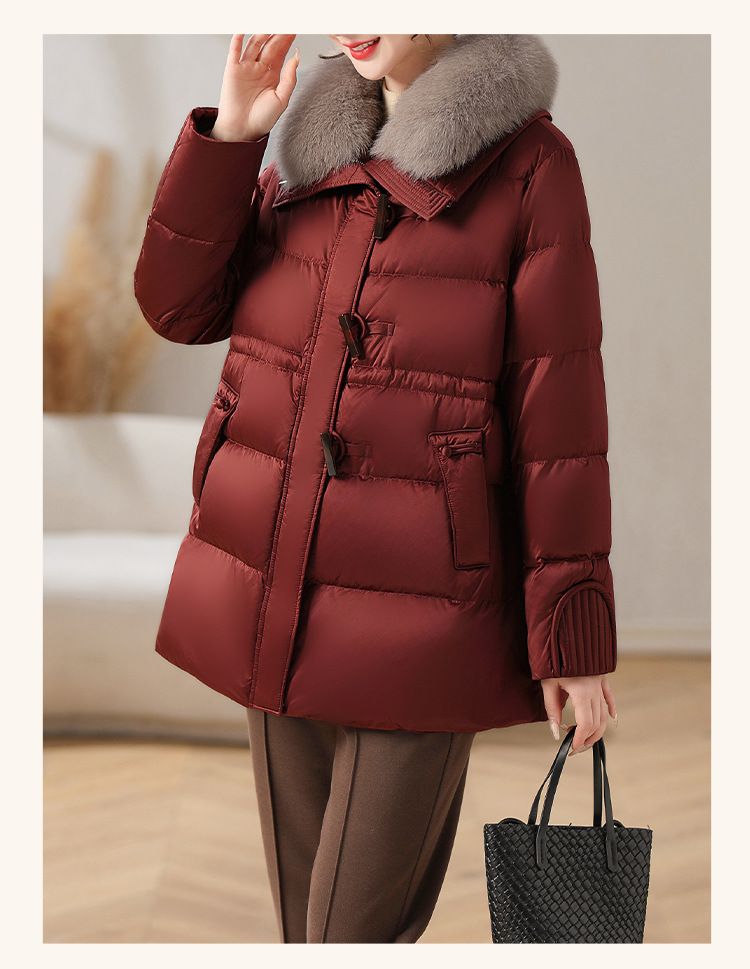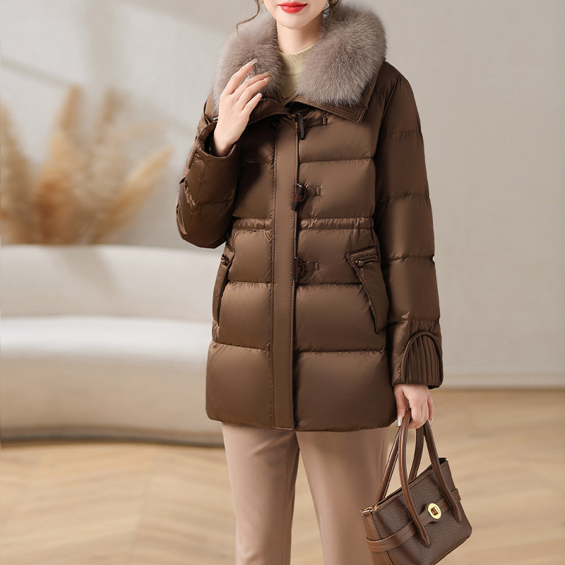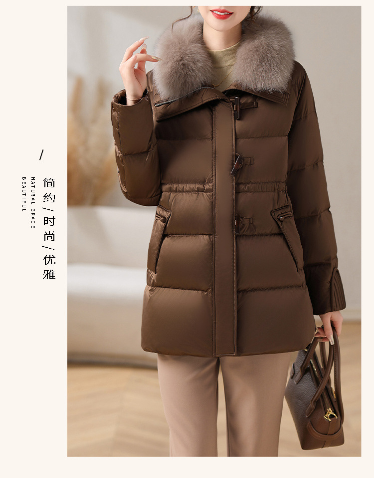 중년 어머니 겨울 다운 재킷 2024 새로운 허리 서양식 연령 감소 여성 여우 모피 칼라 코트