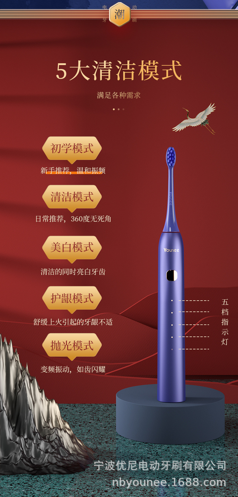 소스 공장 직접 소닉 전동 칫솔 Guofeng 애호가 국경 수출 뜨거운 방수 스마트 5 기어