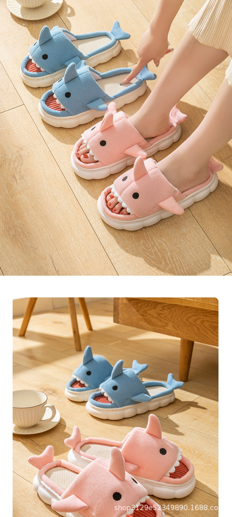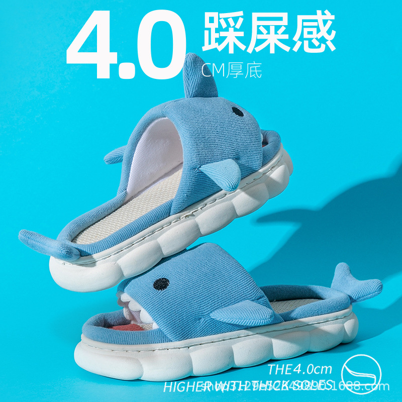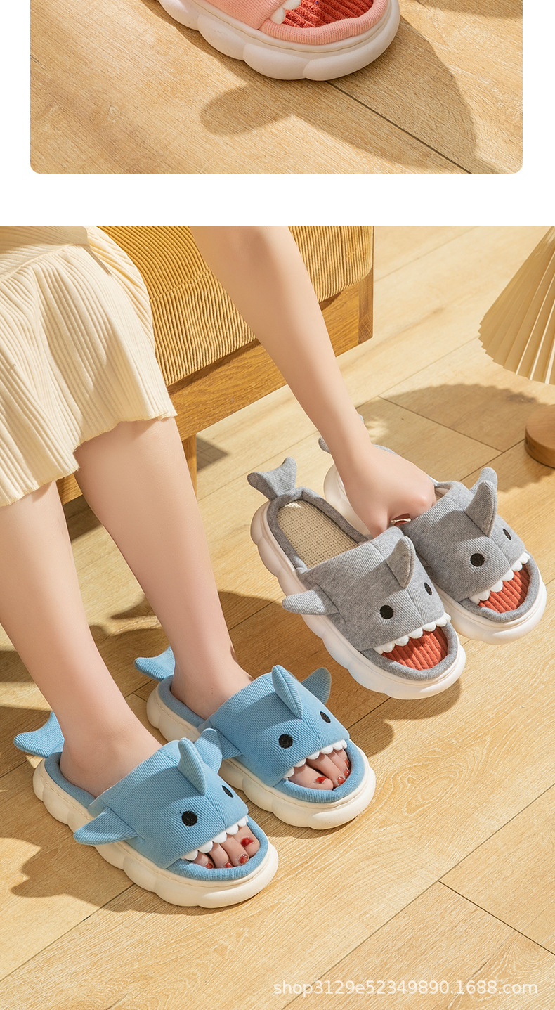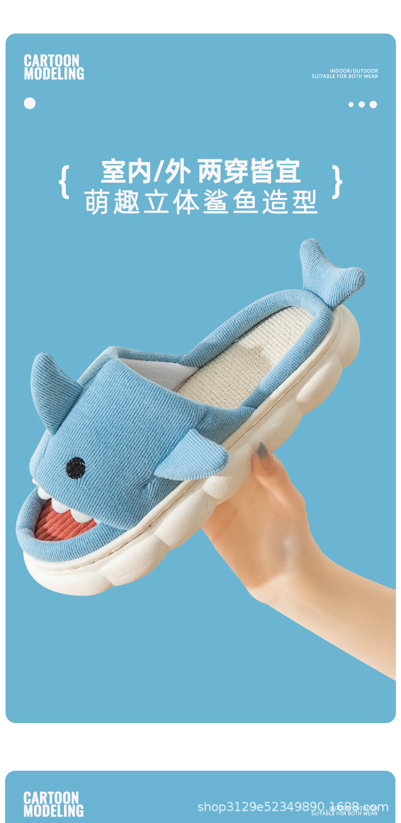 봄과 가을 리넨 슬리퍼 여성 상어 귀여운 만화 땀 흡수 통기성 미끄럼 방지 의상 홈 뮤트 커플 슬리퍼 도매