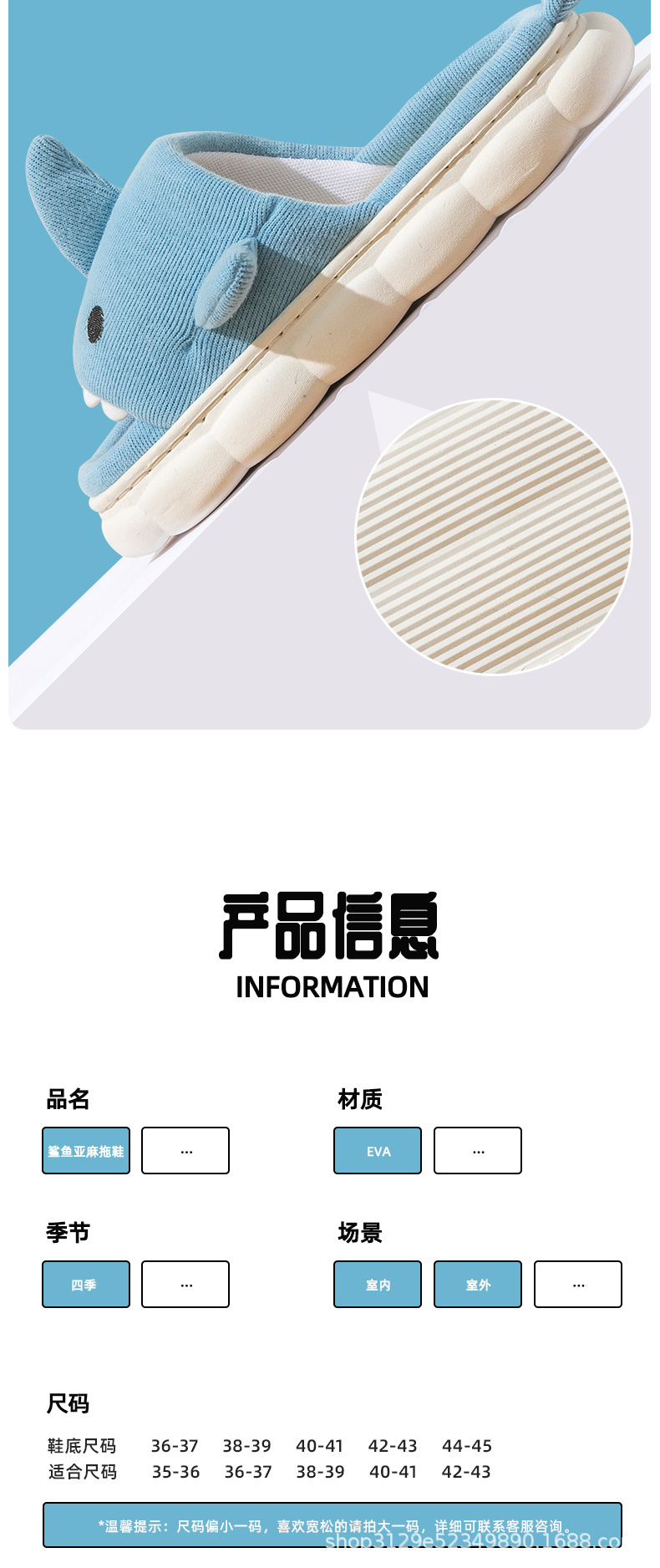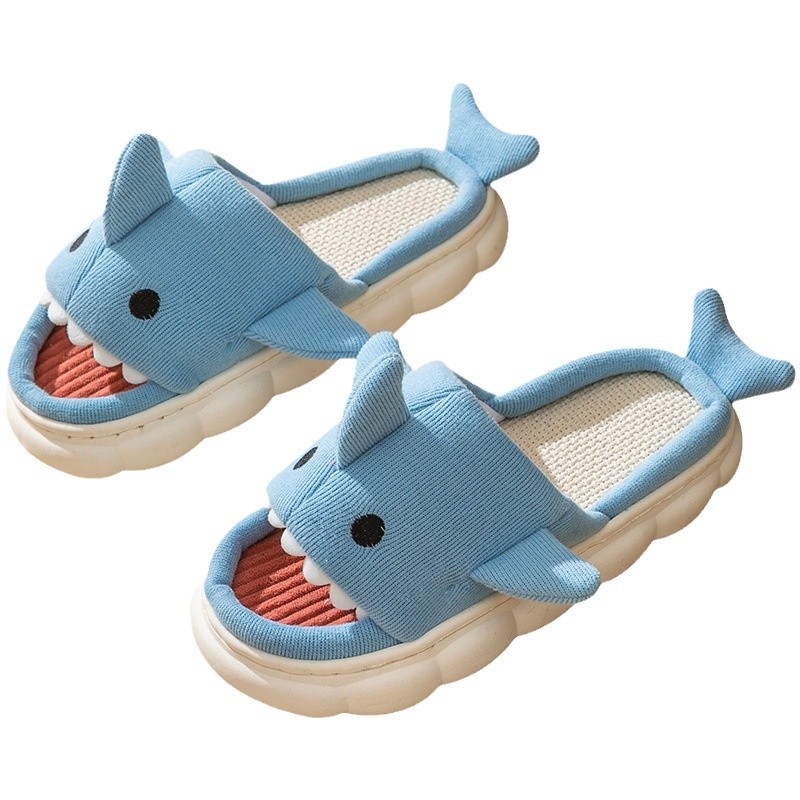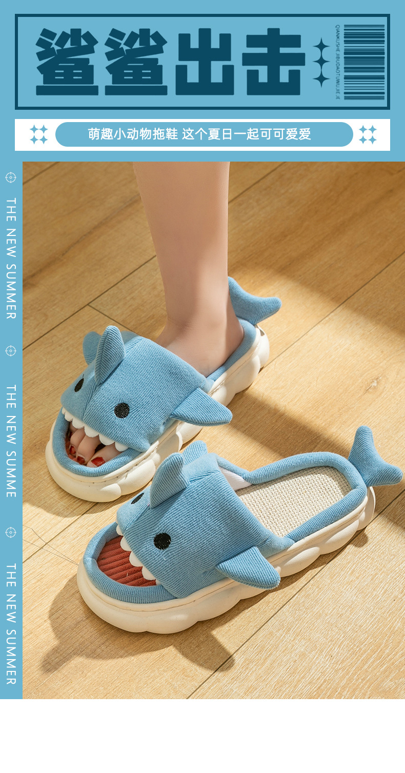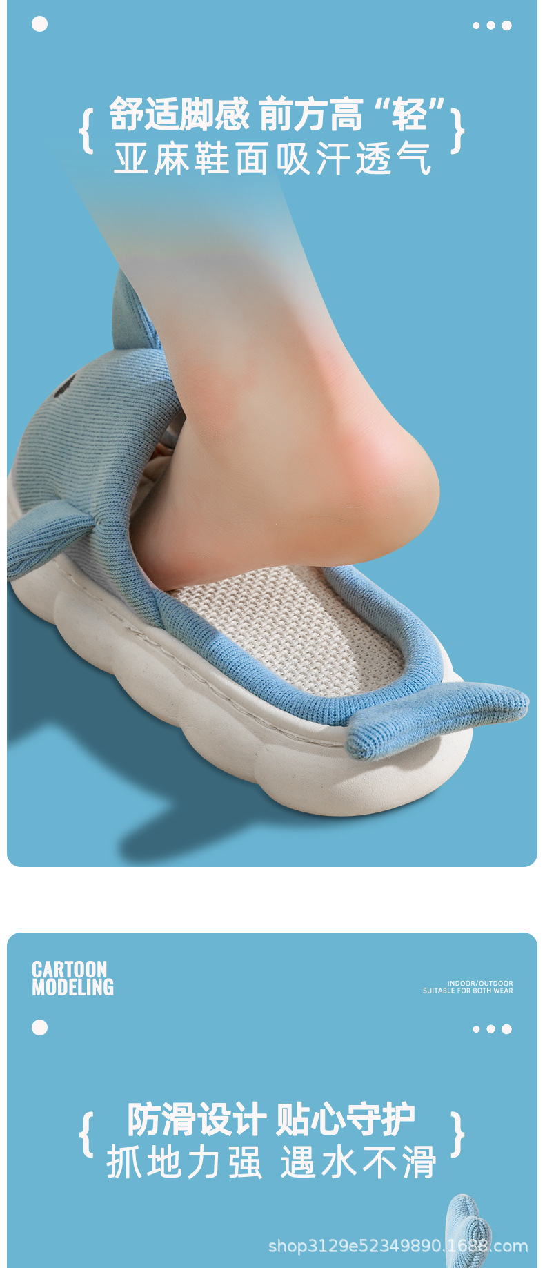 봄과 가을 리넨 슬리퍼 여성 상어 귀여운 만화 땀 흡수 통기성 미끄럼 방지 의상 홈 뮤트 커플 슬리퍼 도매