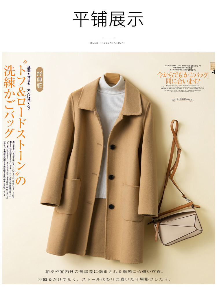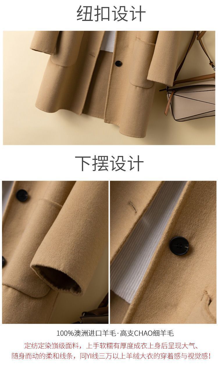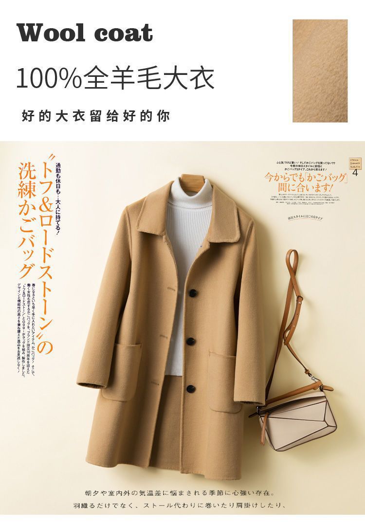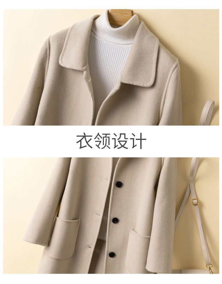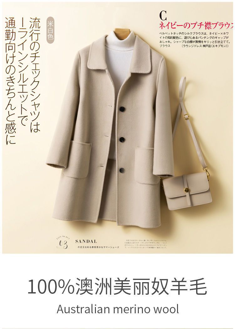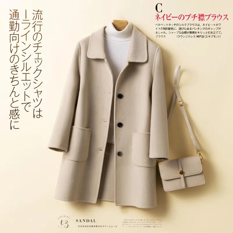 여성을 위한 크로스보더 순수 울 코트, 중간 길이의 새로운 고급 한국 양면 캐시미어 모직 코트
