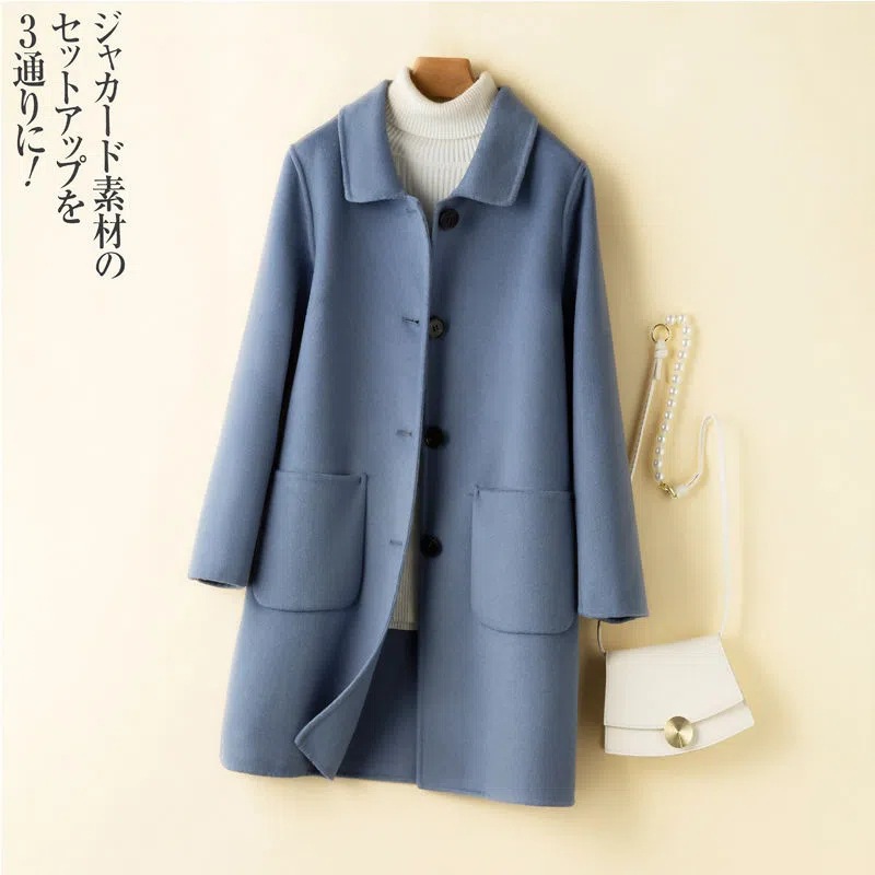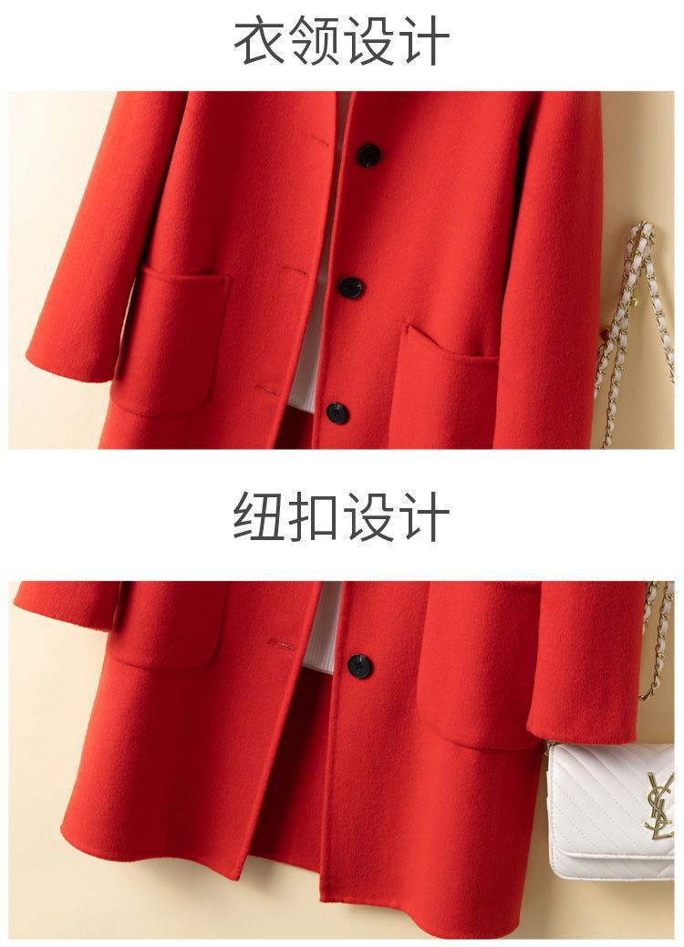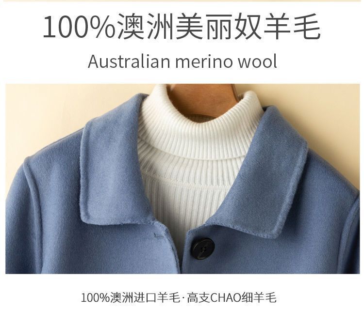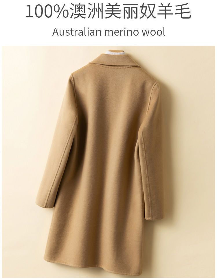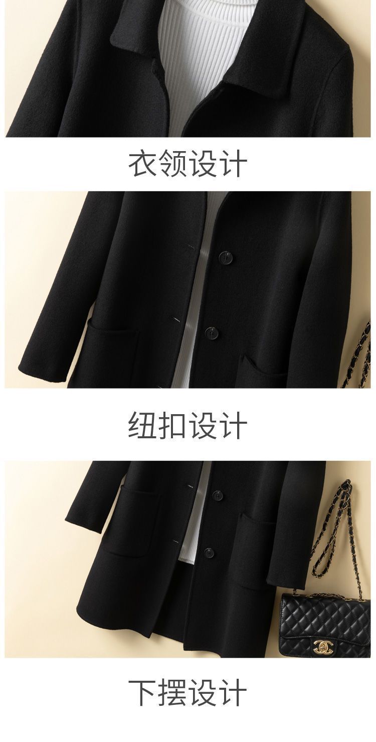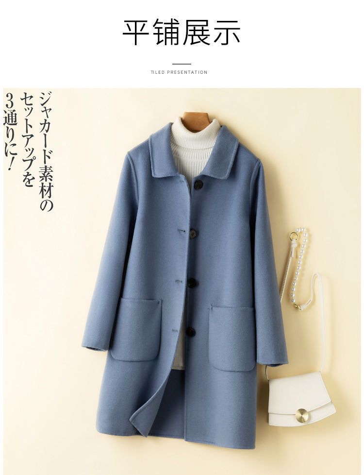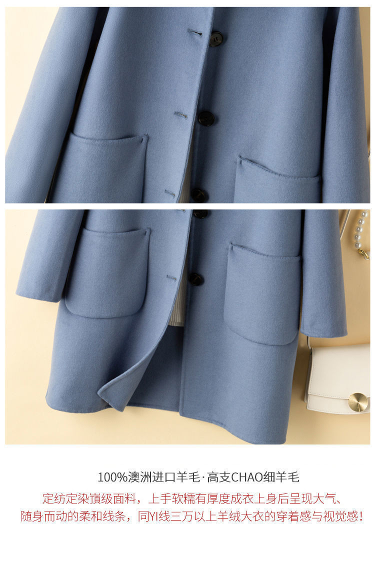 여성을 위한 크로스보더 순수 울 코트, 중간 길이의 새로운 고급 한국 양면 캐시미어 모직 코트