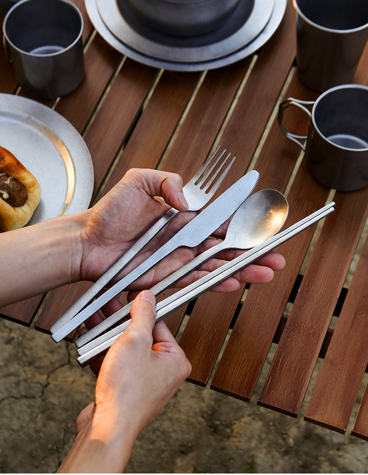맞춤형 레트로 304 스테인리스 물컵, 접시, 캠핑 야외 캠프 식기, 모던 심플 양식 세트 도매