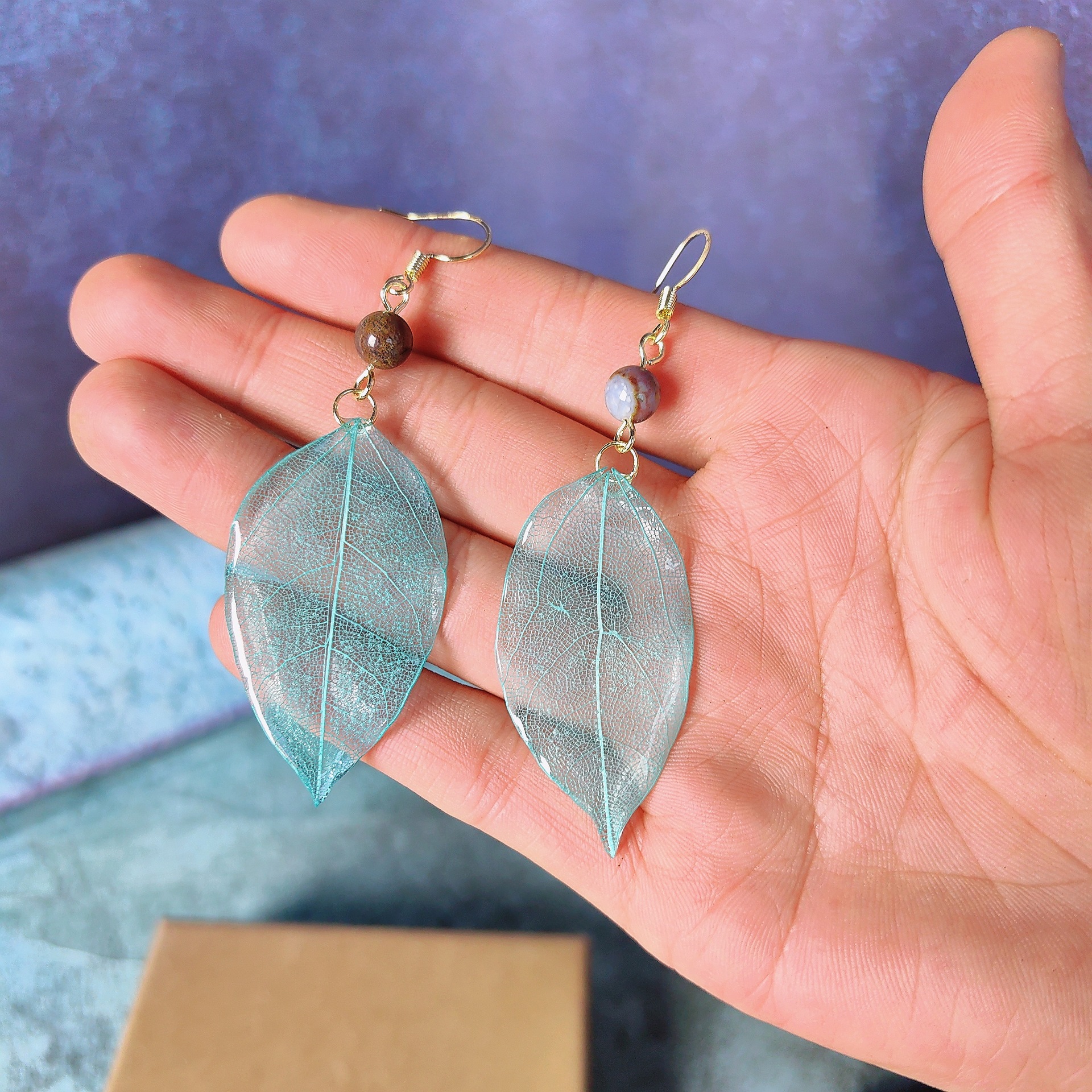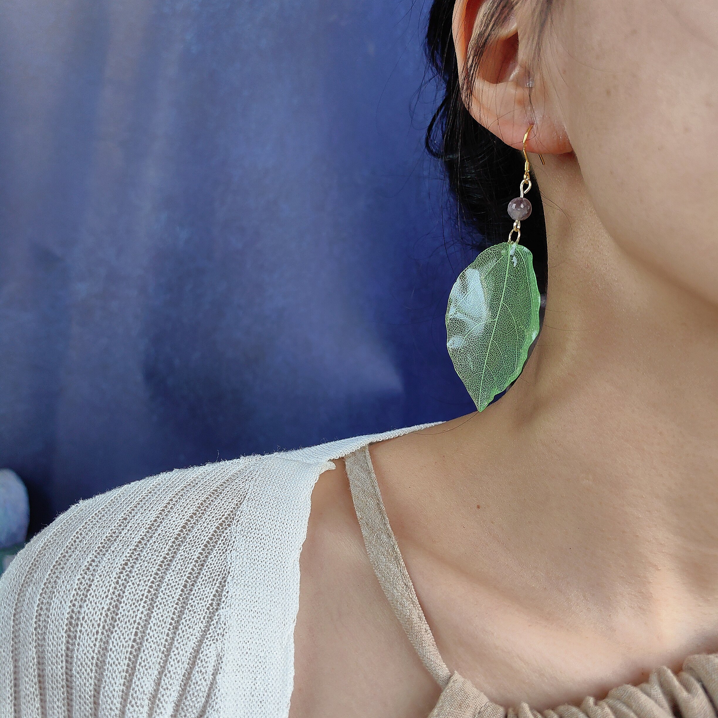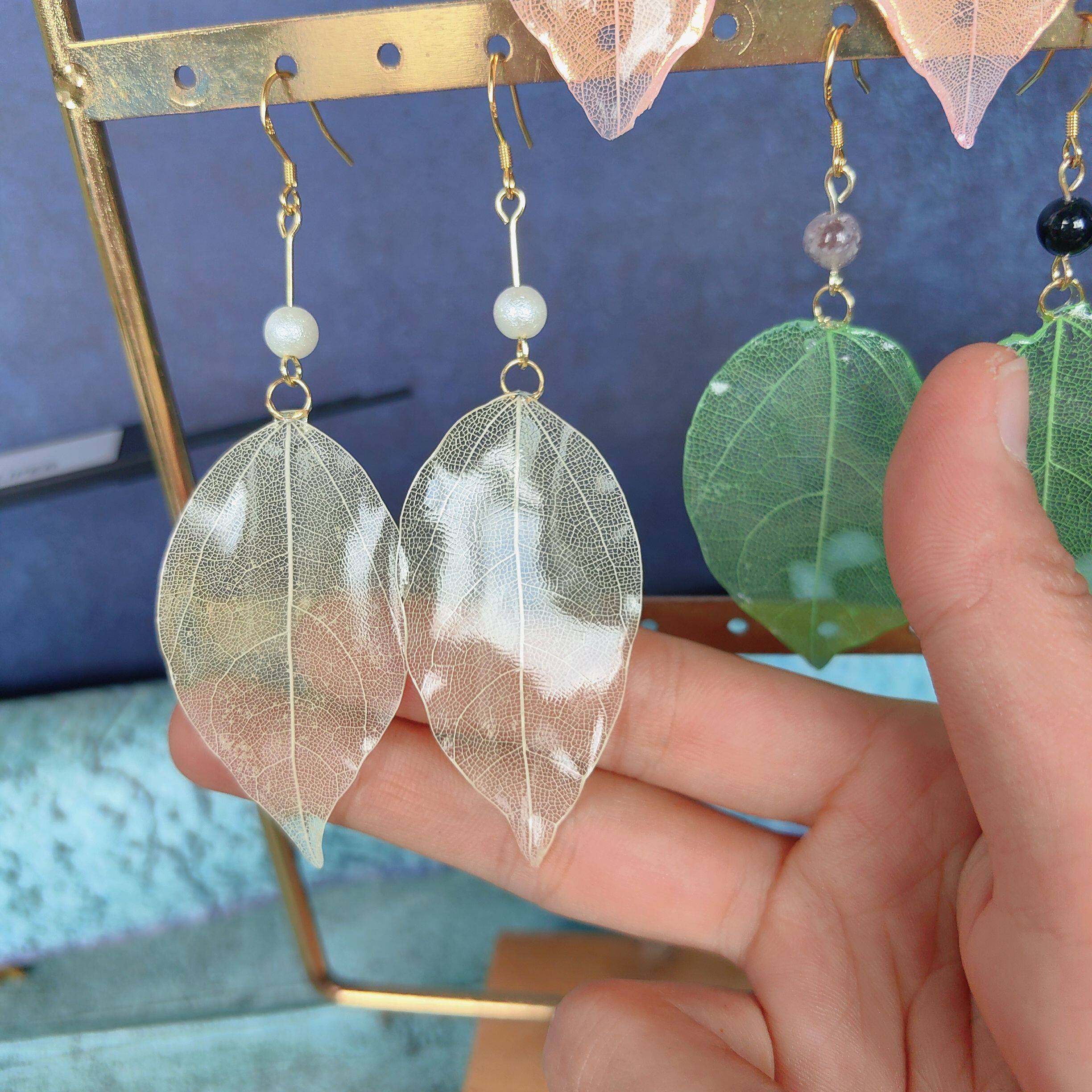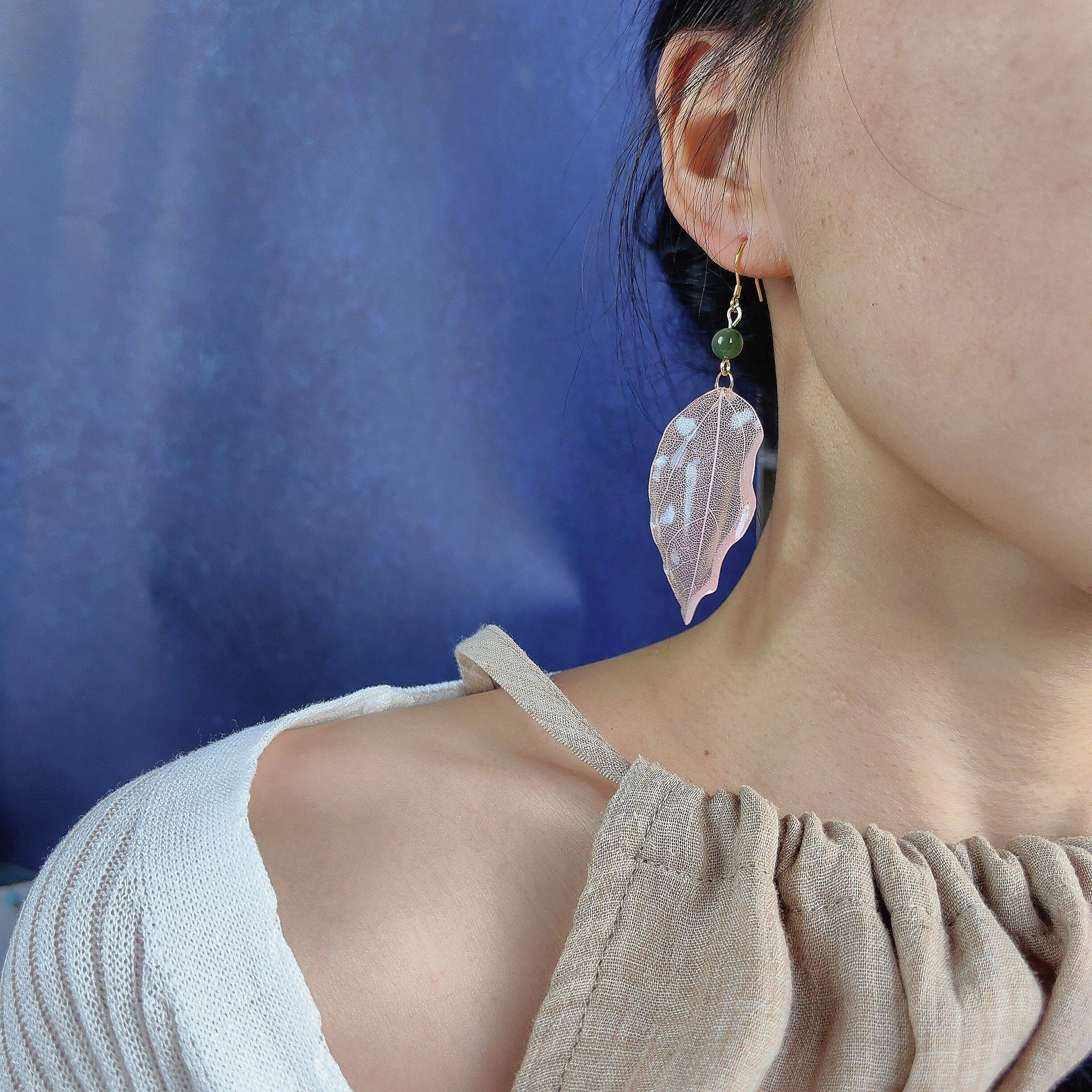 진정한 정맥 잎 껌은 킹콩 잎 긴 얼굴 트리밍 작은 신선한 창조적 인 틈새 진실한 잎 식물 귀걸이 여성용