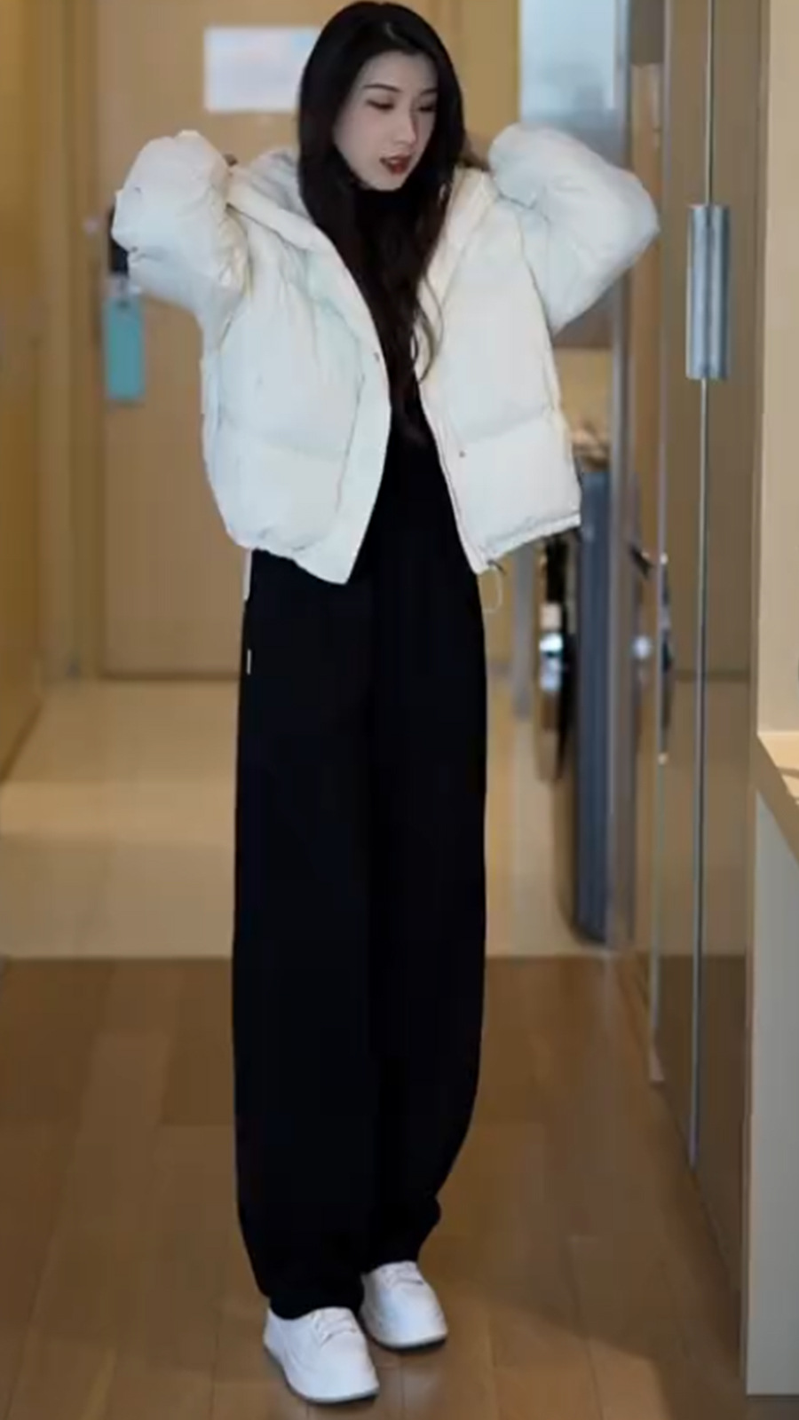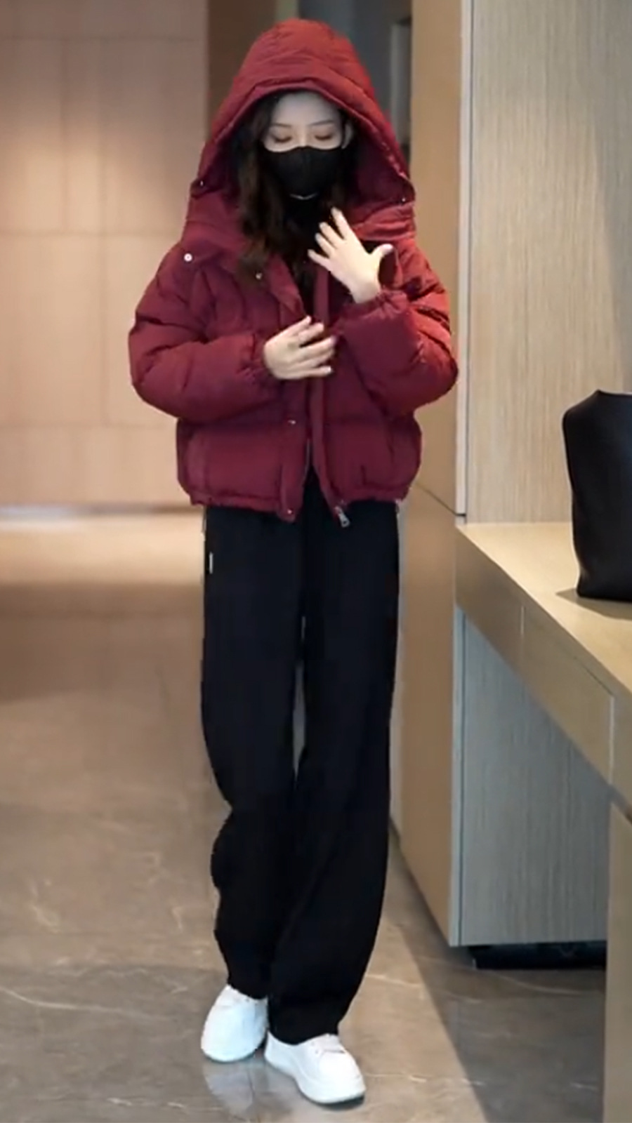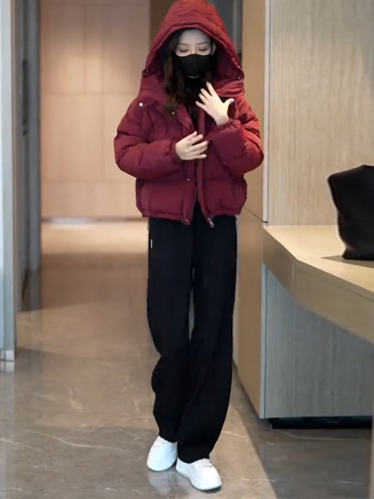 패션 짧은 후드 다운 재킷 여성의 2024 겨울 새로운 한국 느슨한 따뜻한 캐주얼 빵 자켓 트렌디