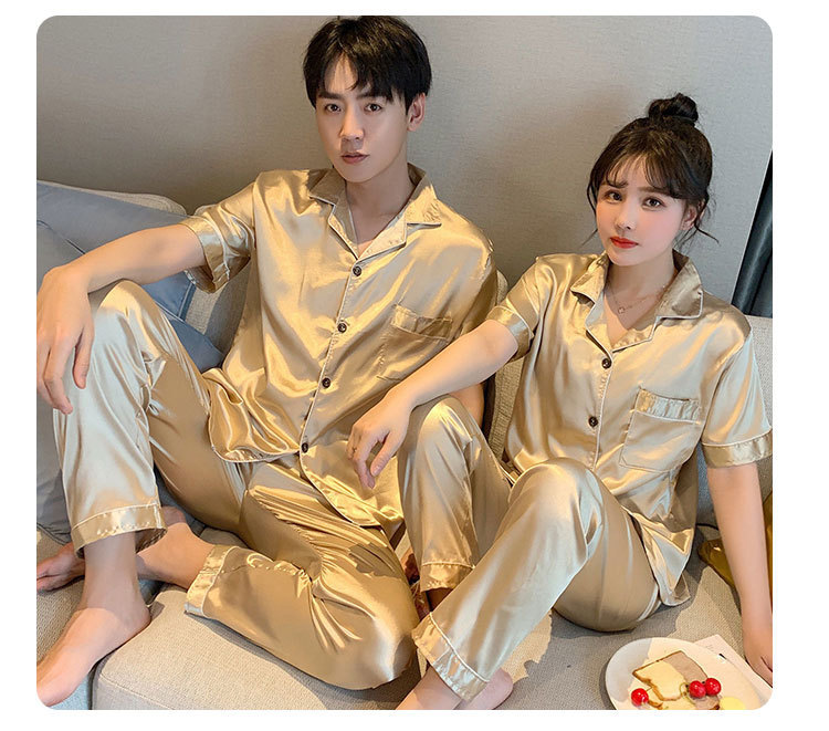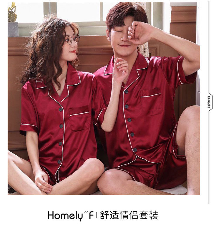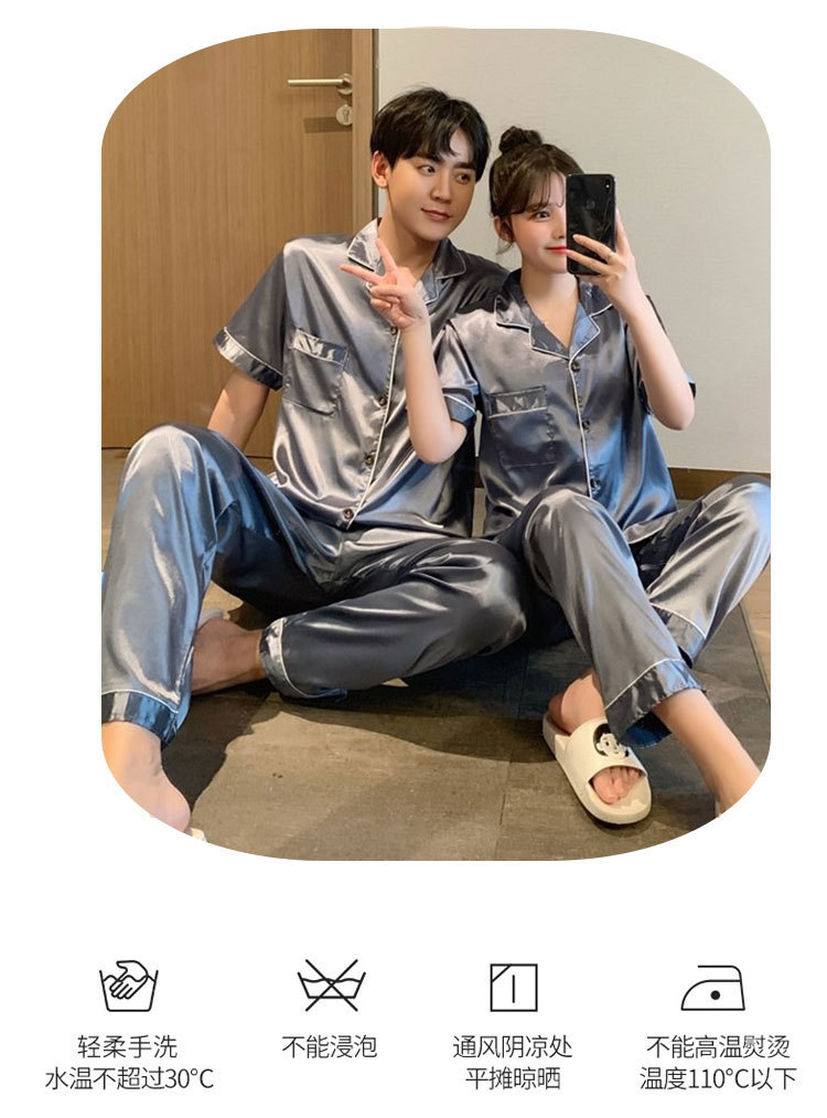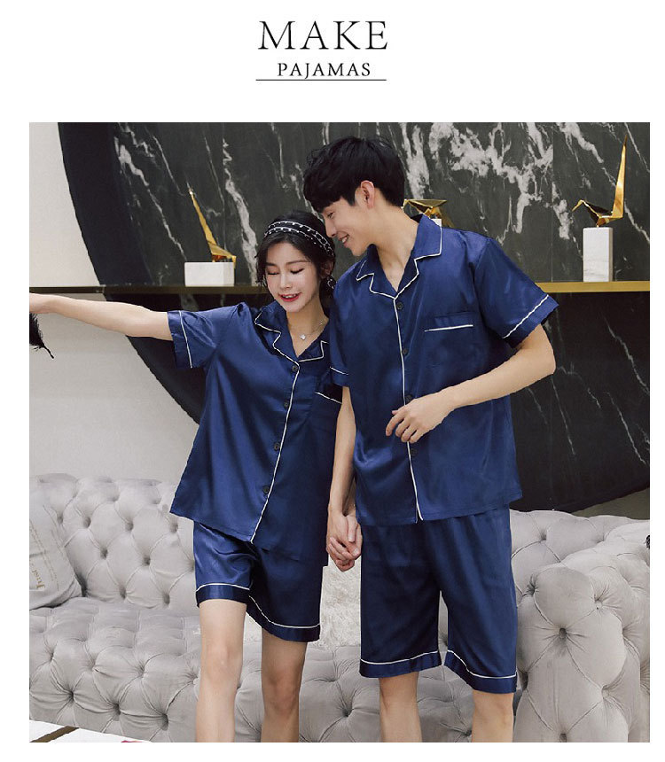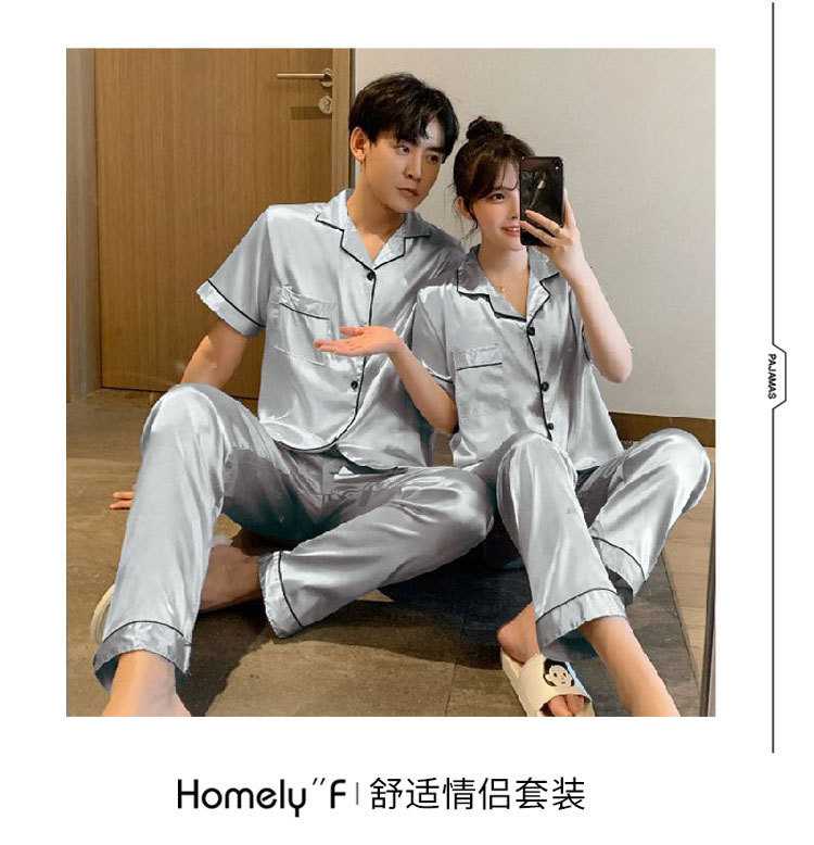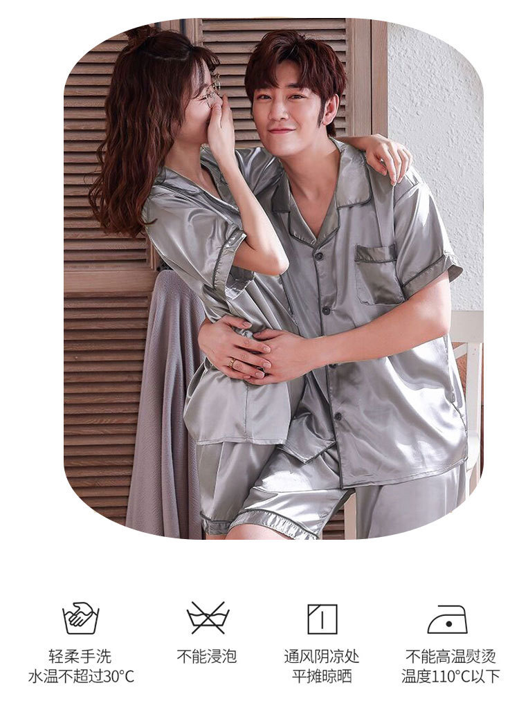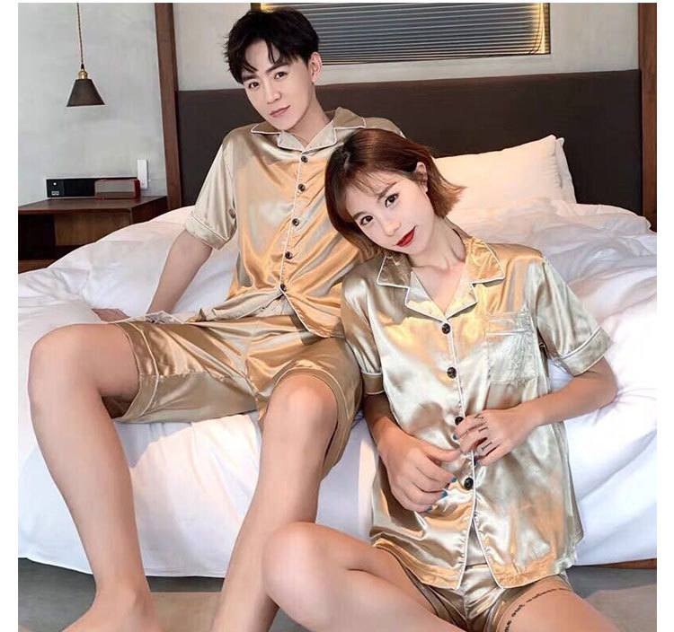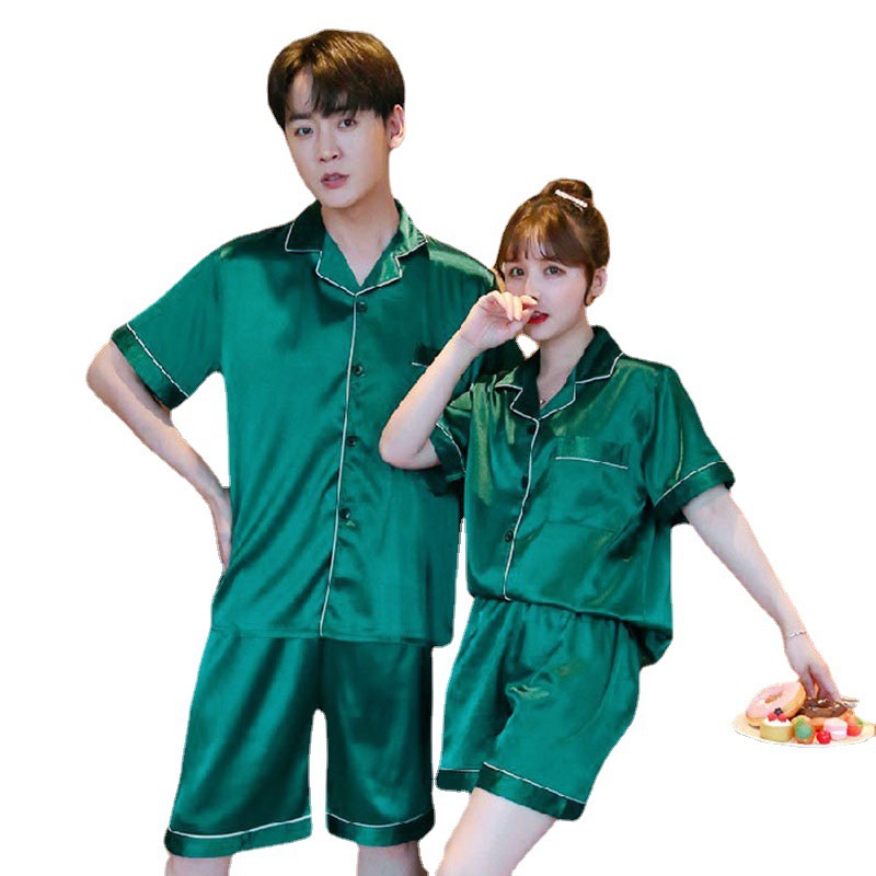 공장 커플 잠옷 여성 여름 얇은 아이스 실크 여름 반팔 반바지 홈 의류 인공 실크 남성 세트