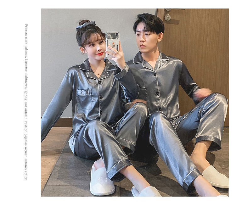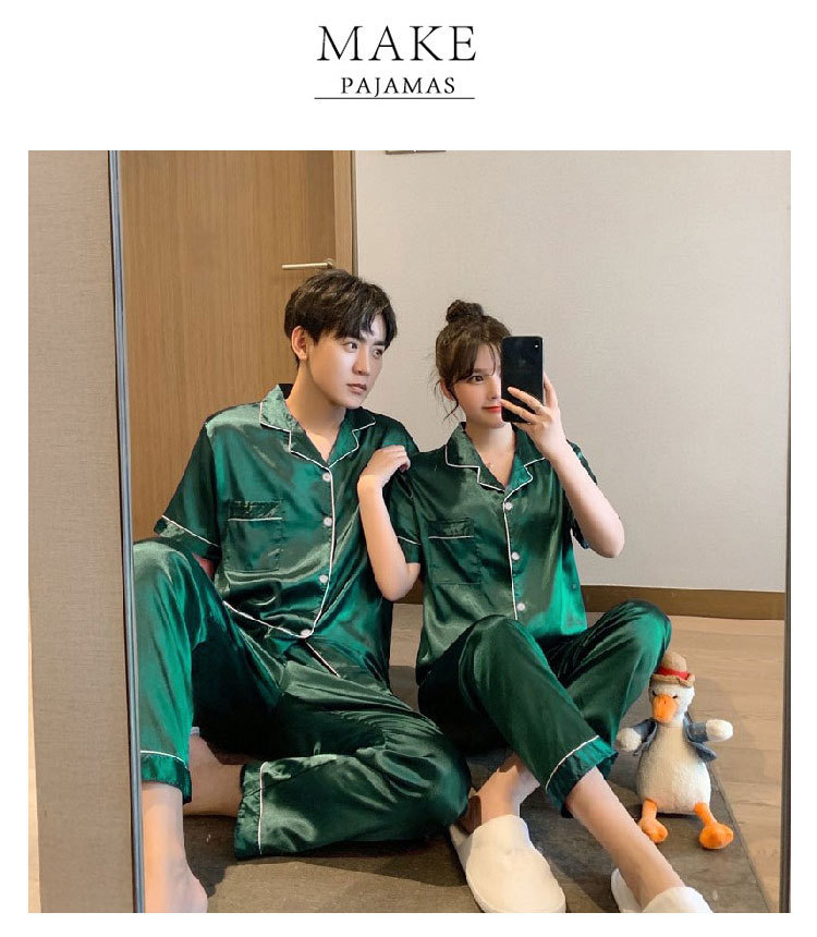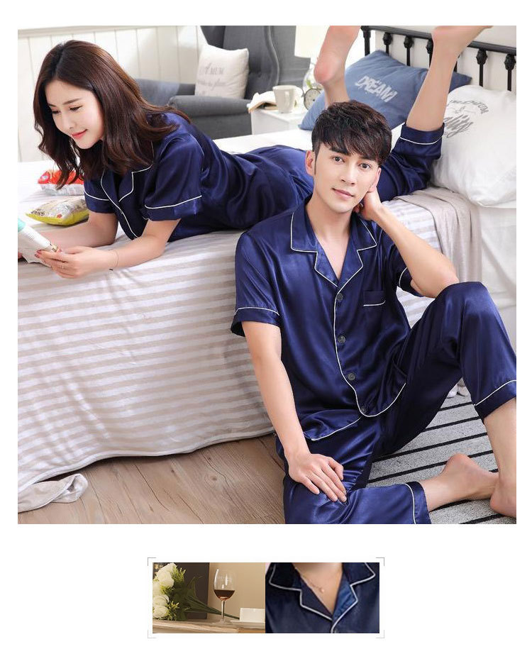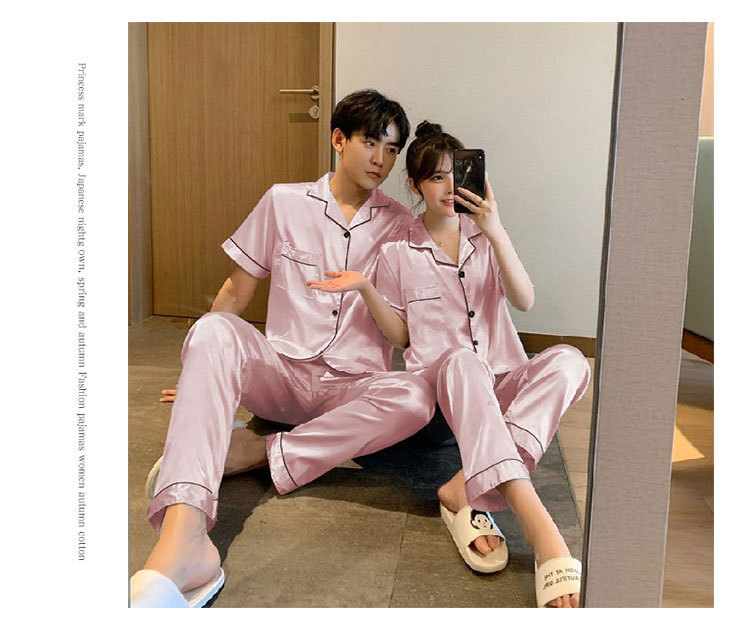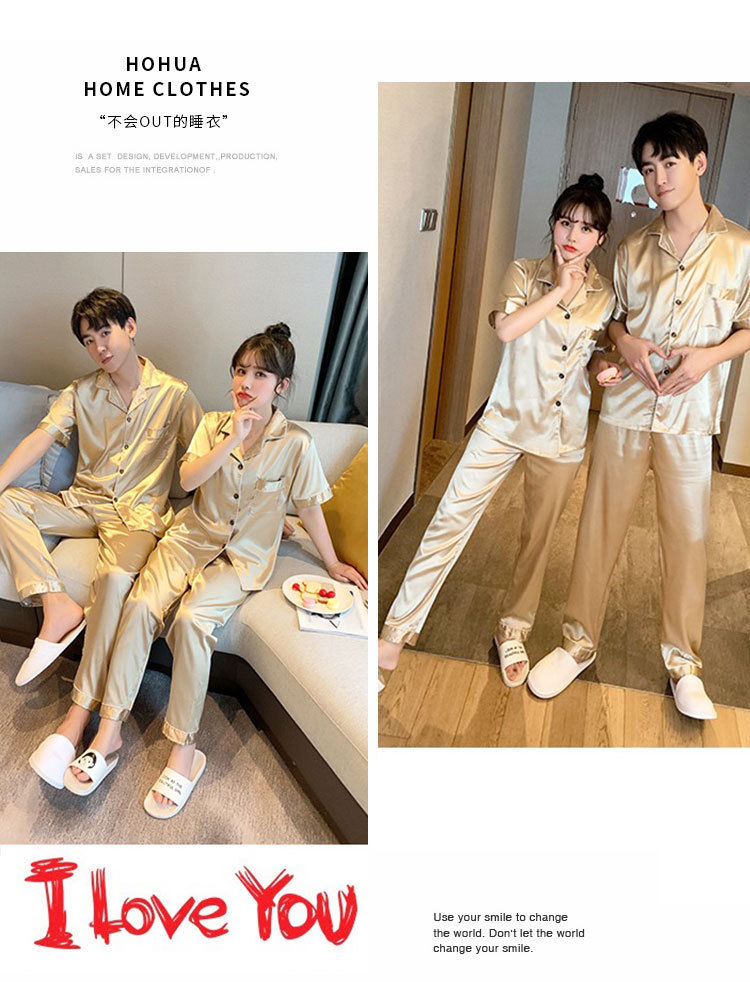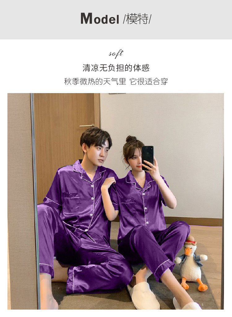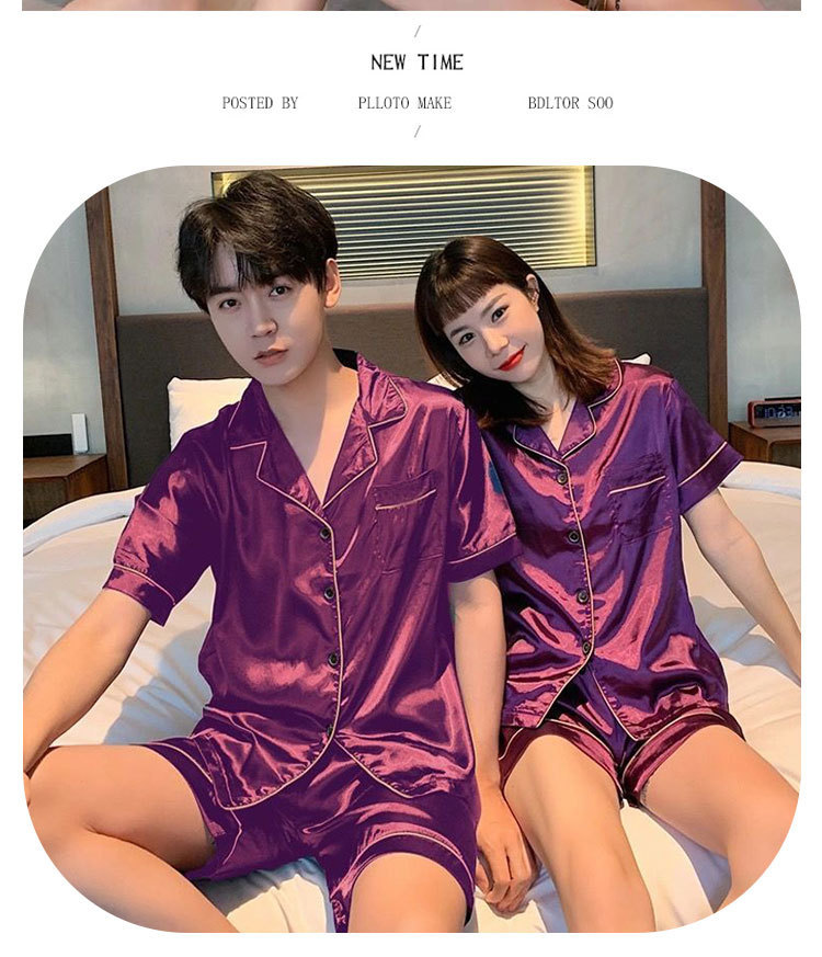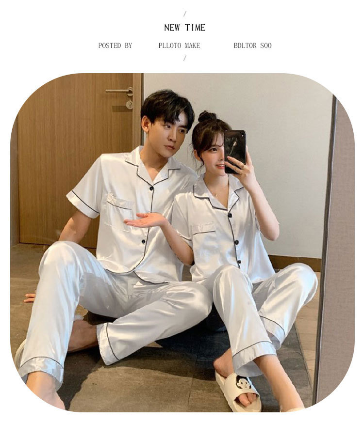 공장 커플 잠옷 여성 여름 얇은 아이스 실크 여름 반팔 반바지 홈 의류 인공 실크 남성 세트