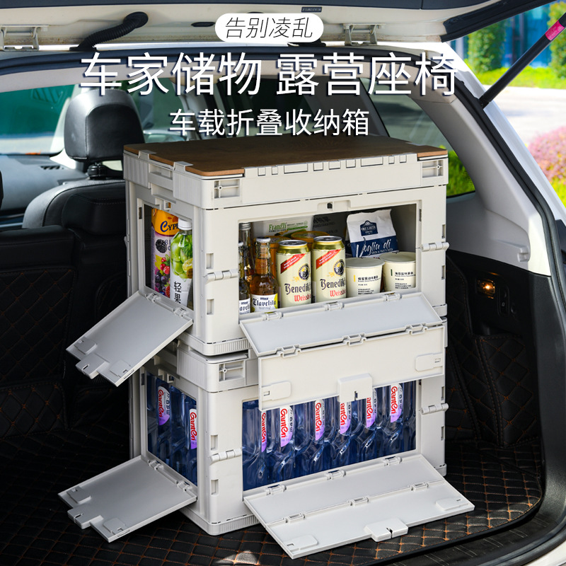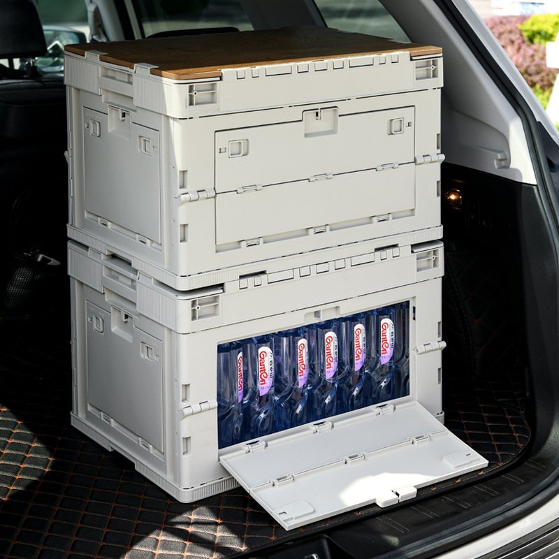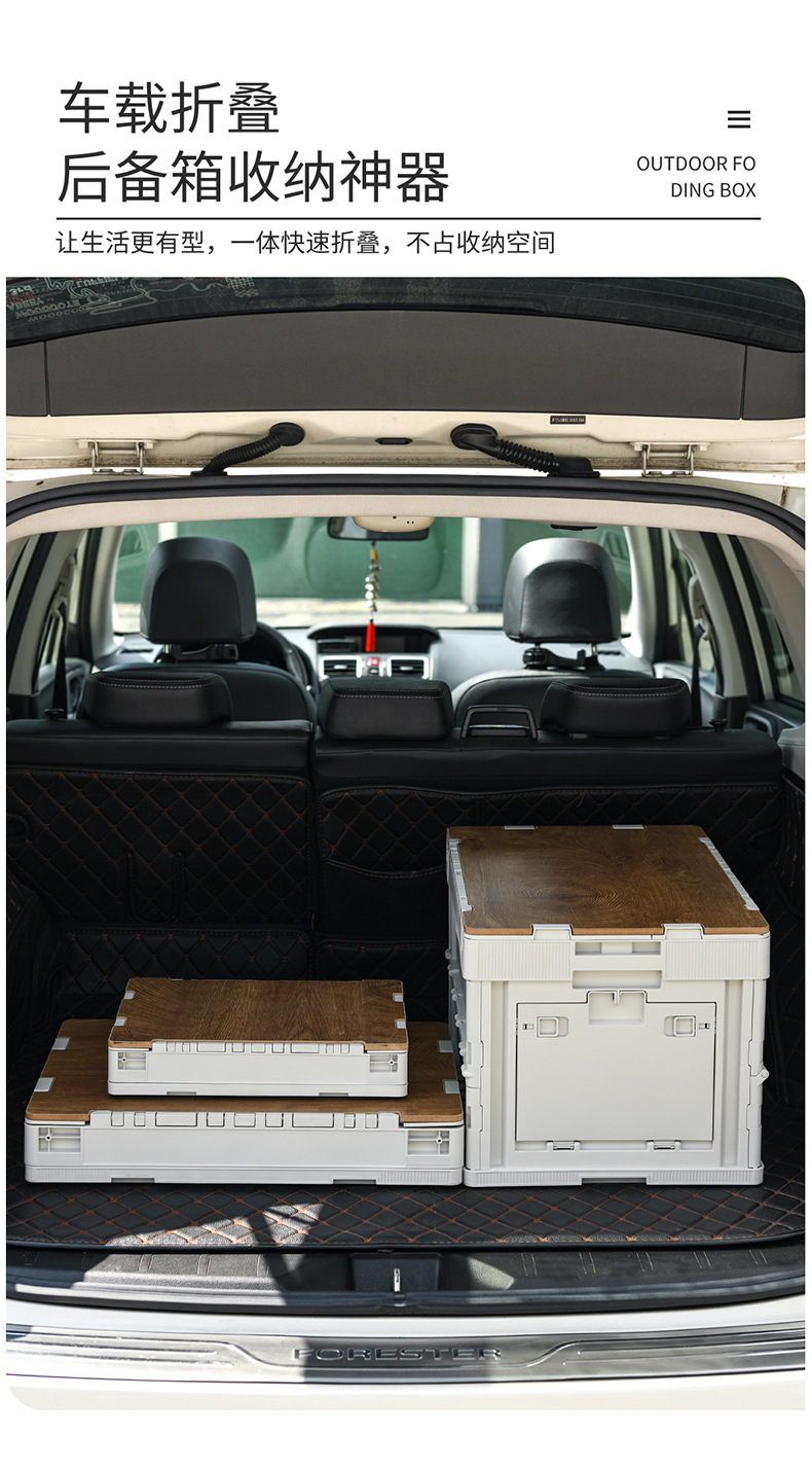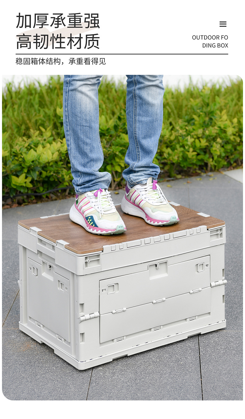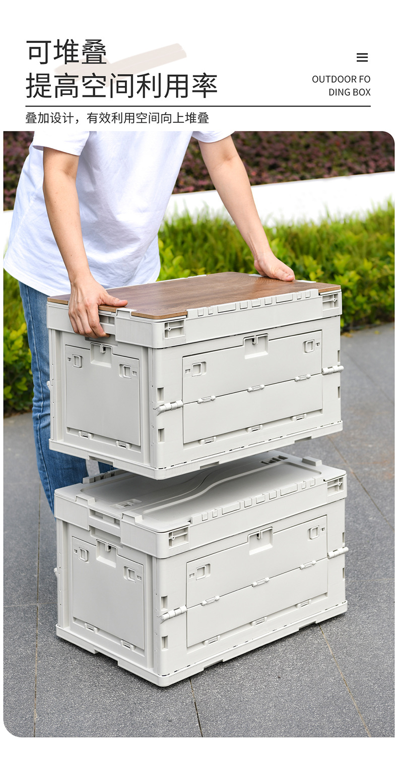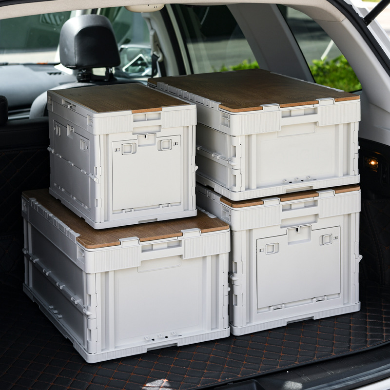 야외 캠핑 보관 상자 접이식 상자 캠핑 마감 상자 자동차 트렁크 보관 상자 나무 뚜껑 피크닉 보관 상자