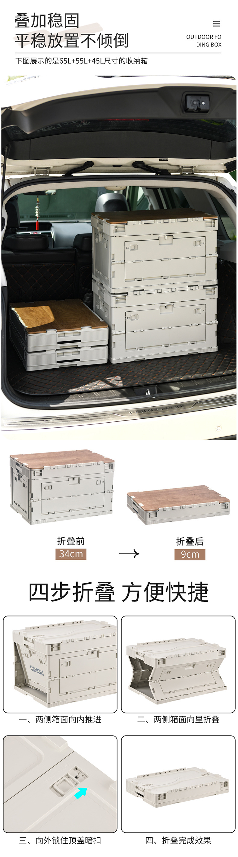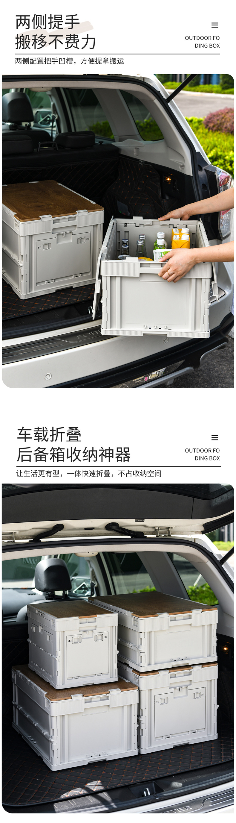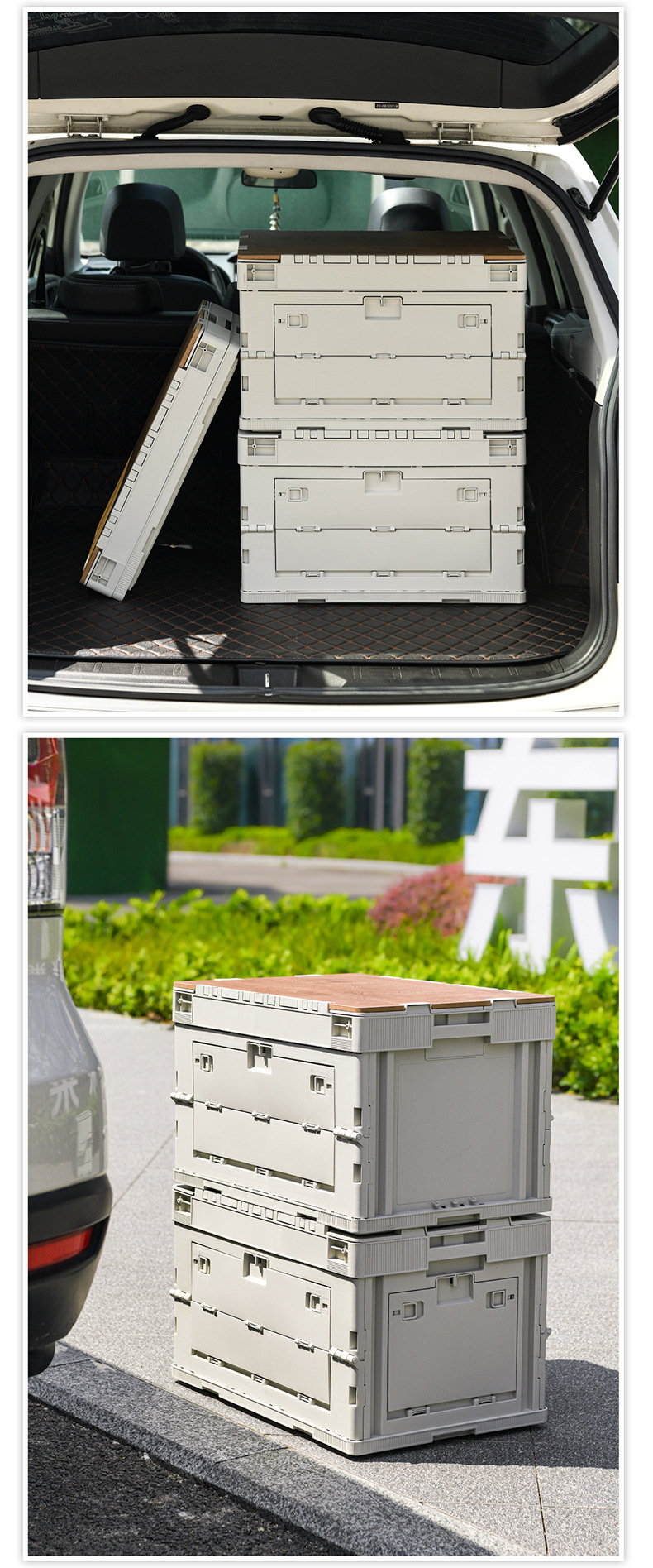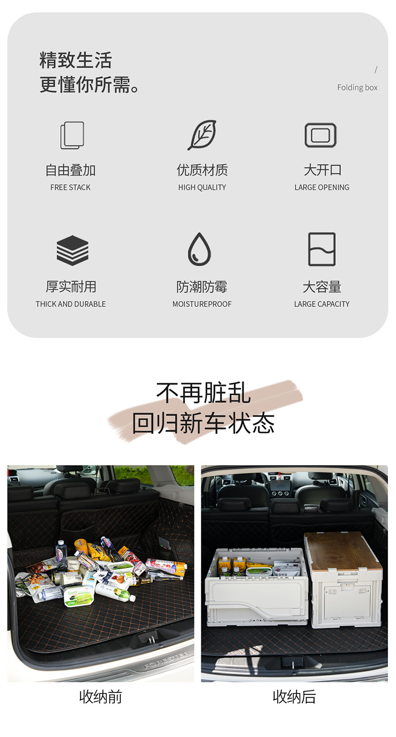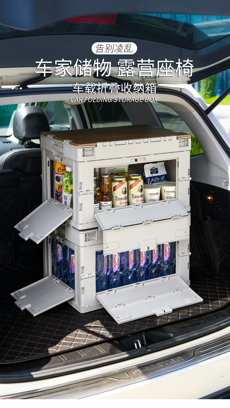 야외 캠핑 보관 상자 접이식 상자 캠핑 마감 상자 자동차 트렁크 보관 상자 나무 뚜껑 피크닉 보관 상자