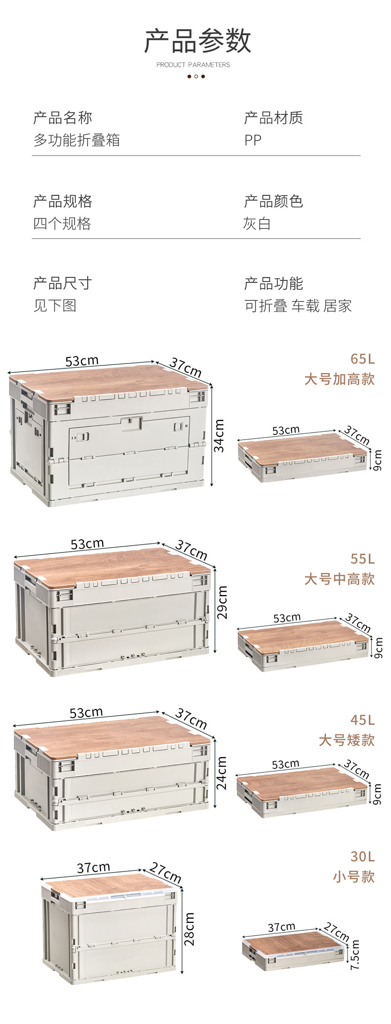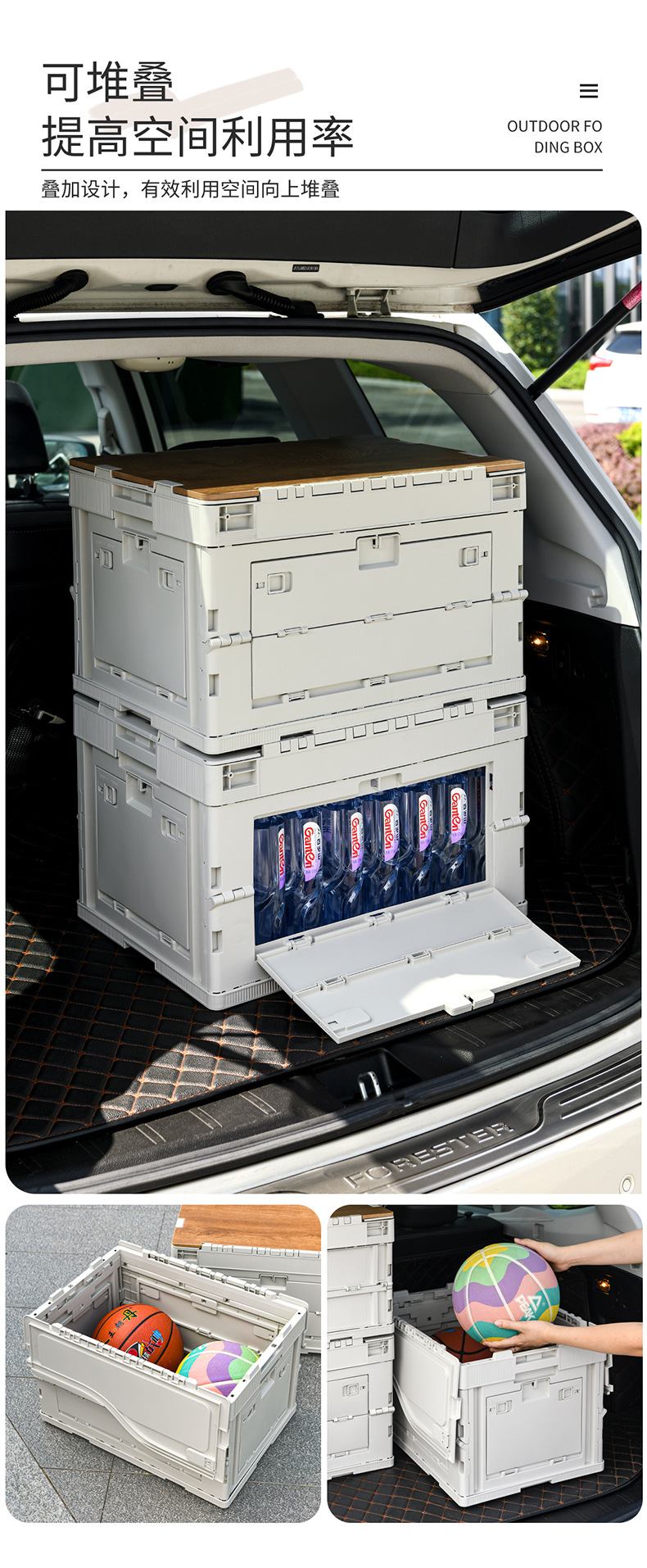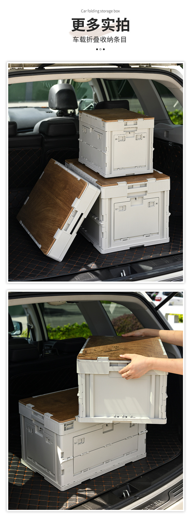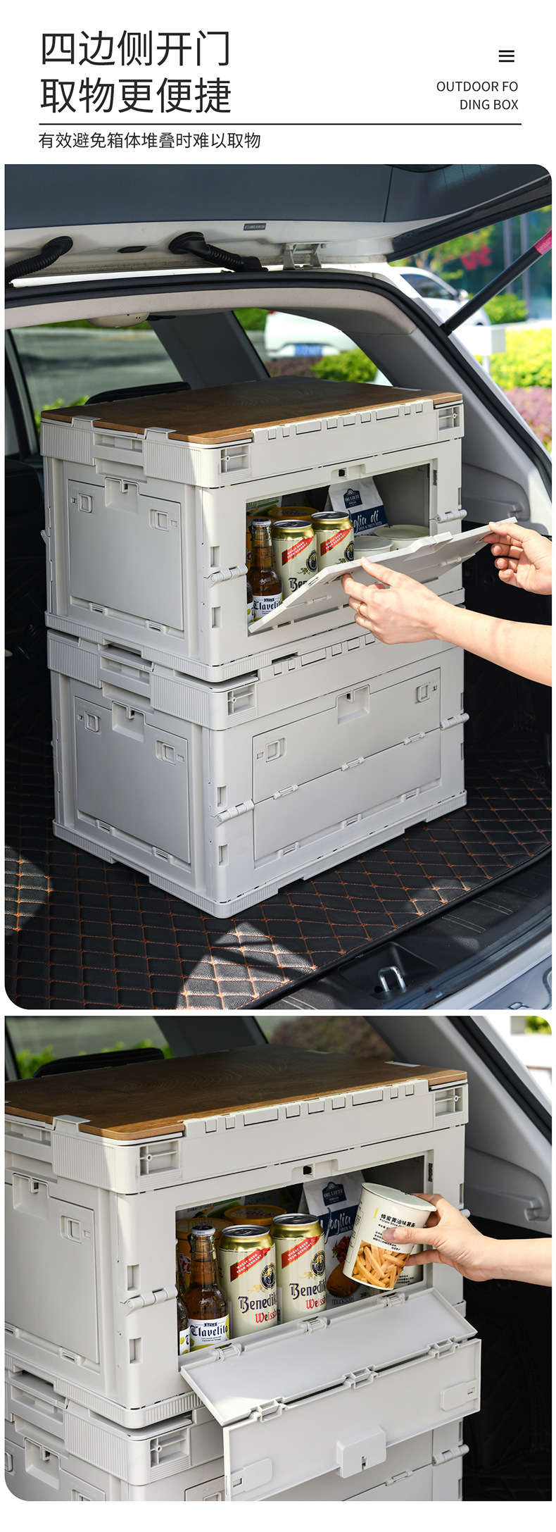 야외 캠핑 보관 상자 접이식 상자 캠핑 마감 상자 자동차 트렁크 보관 상자 나무 뚜껑 피크닉 보관 상자