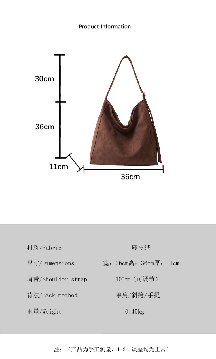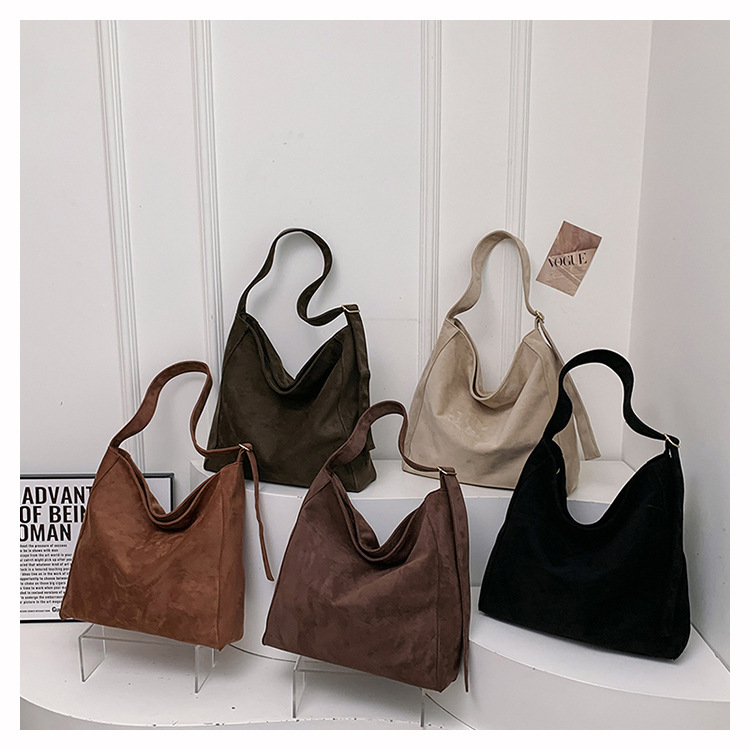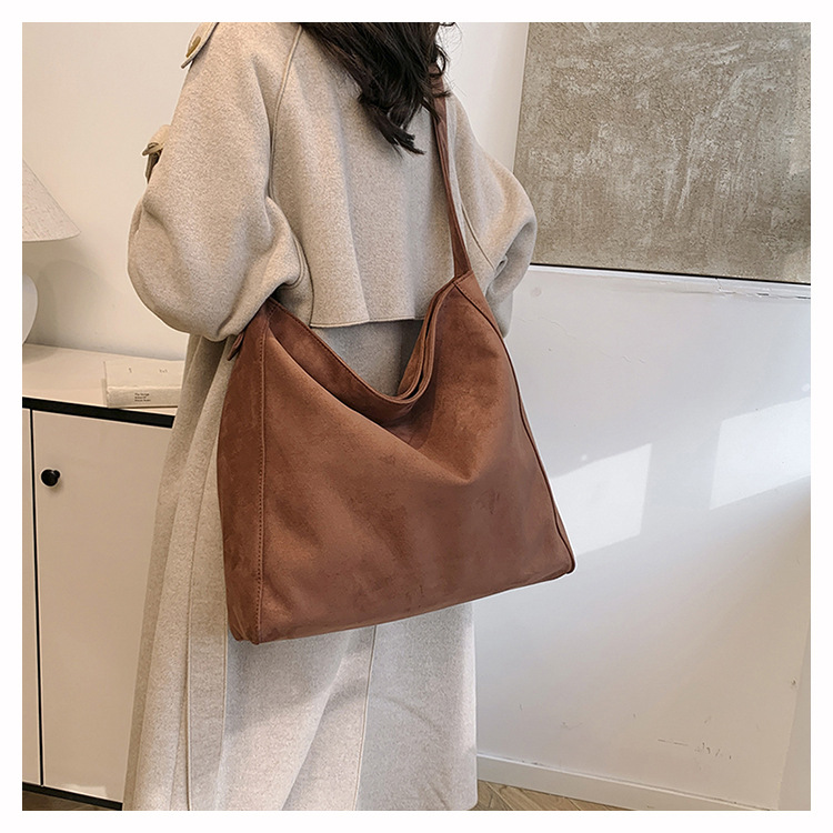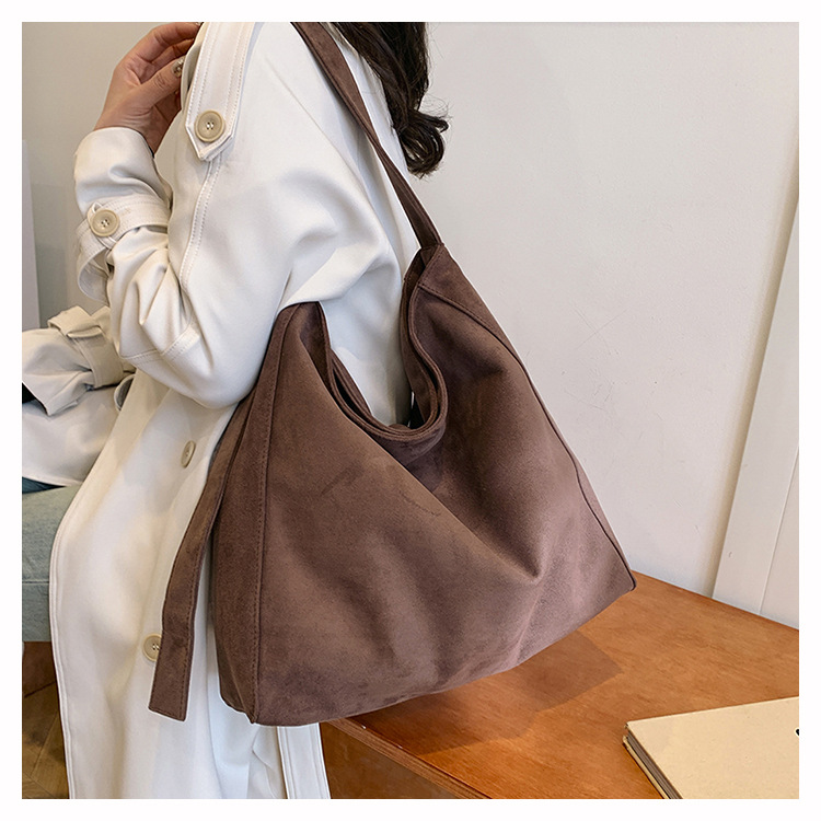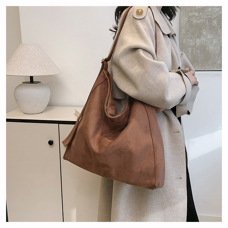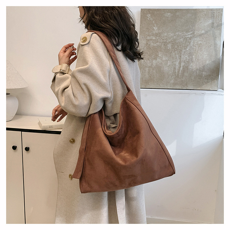 새로운 가방 대용량 레트로 스웨이드 패션 캐주얼 언더암 가방 틈새 디자인 게으른 토트 백