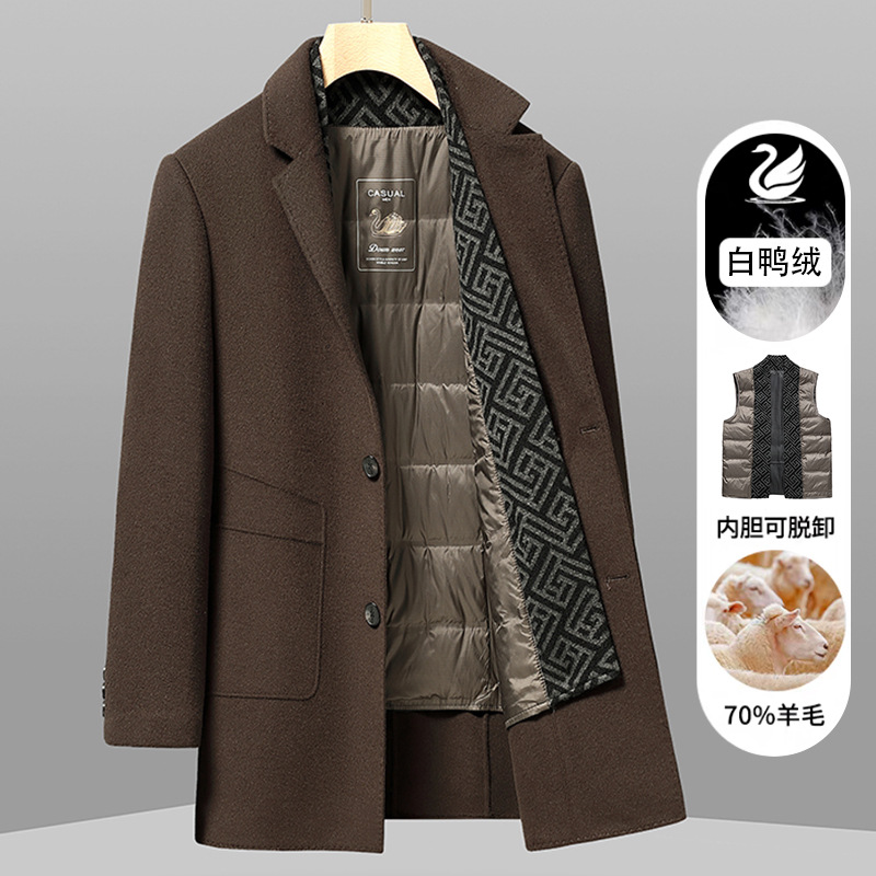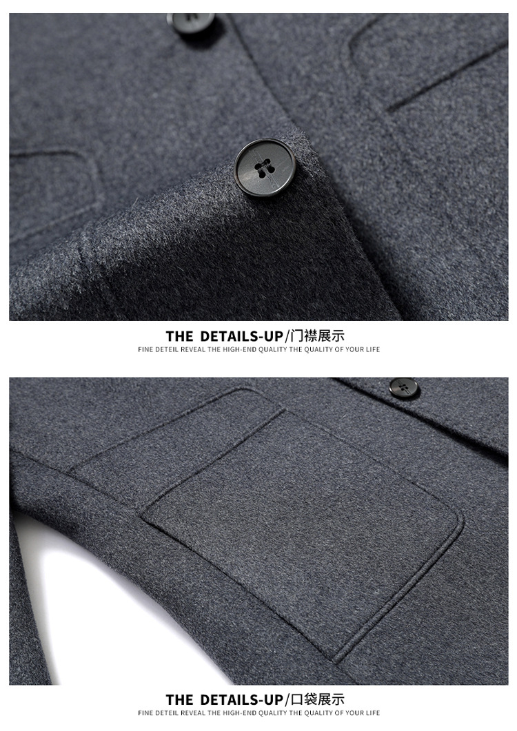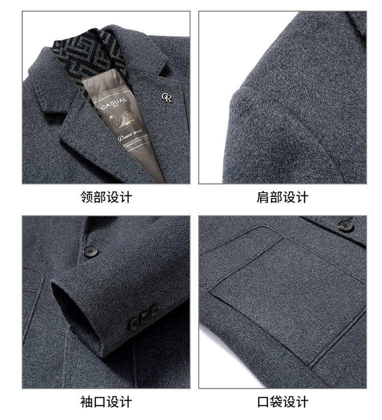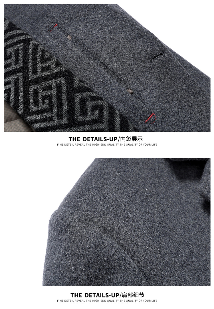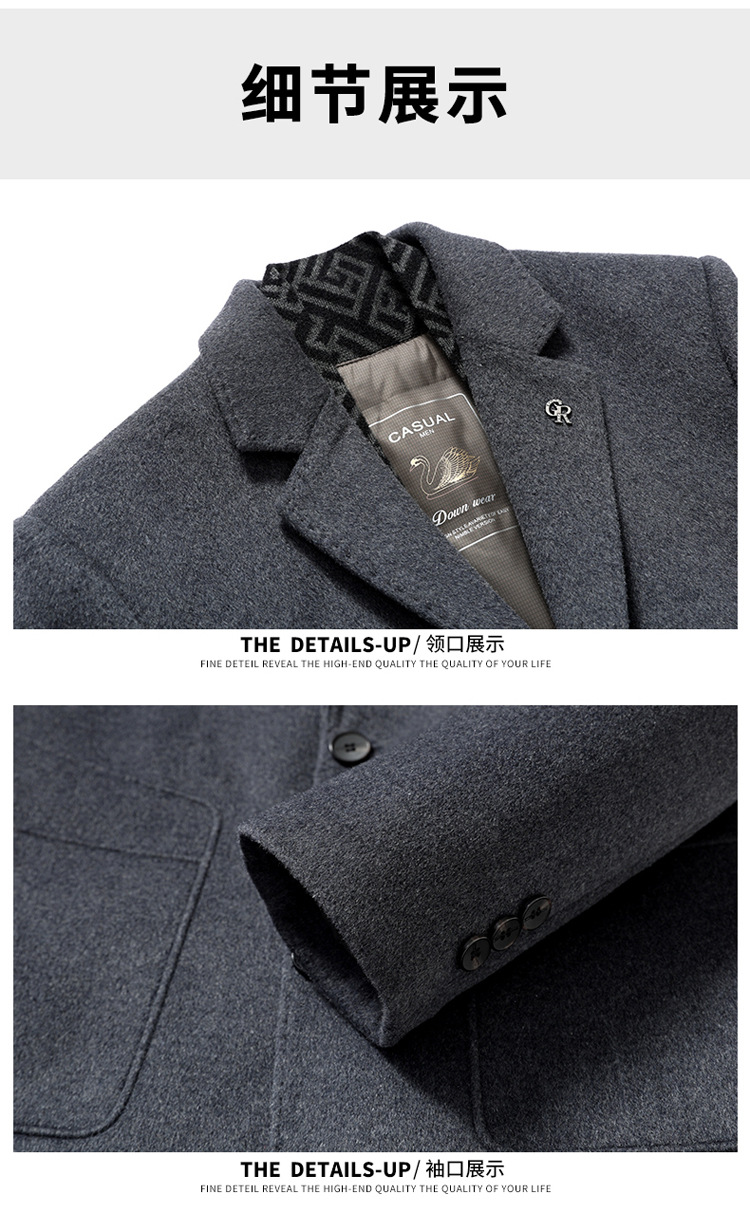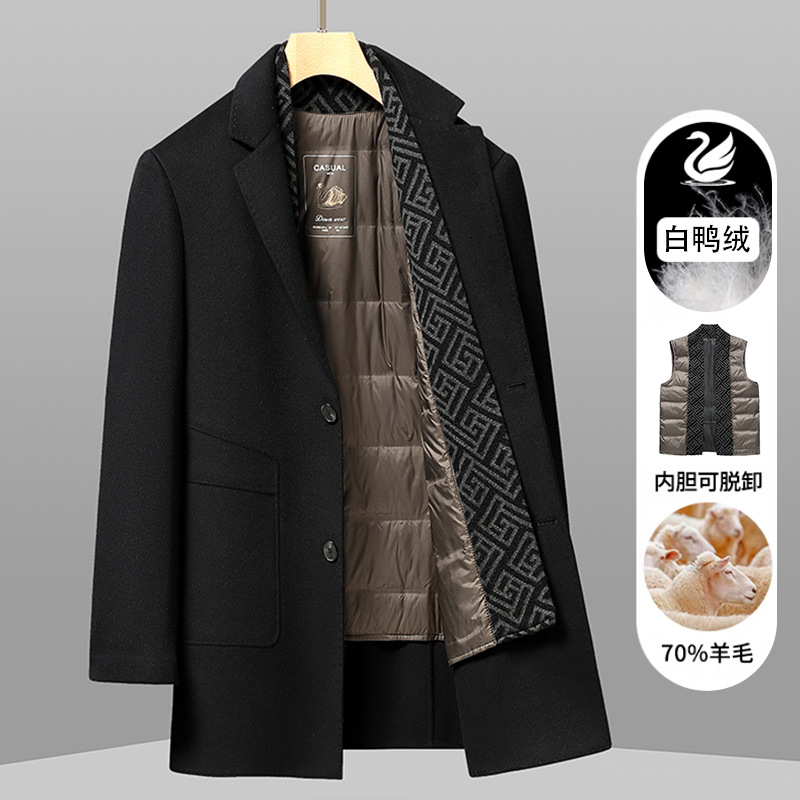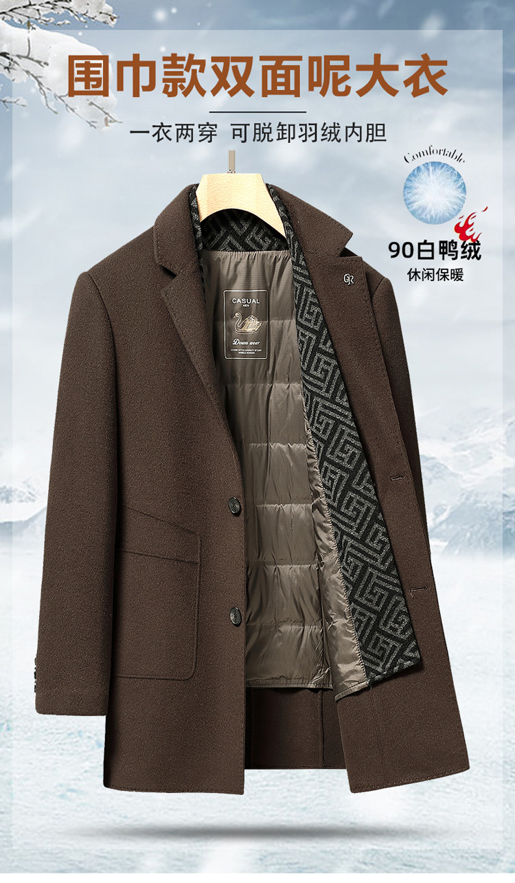 가을과 겨울 남성용 모직 코트 비즈니스 캐주얼 스카프 칼라 이동식 라이너 양면 모직 코트 코트