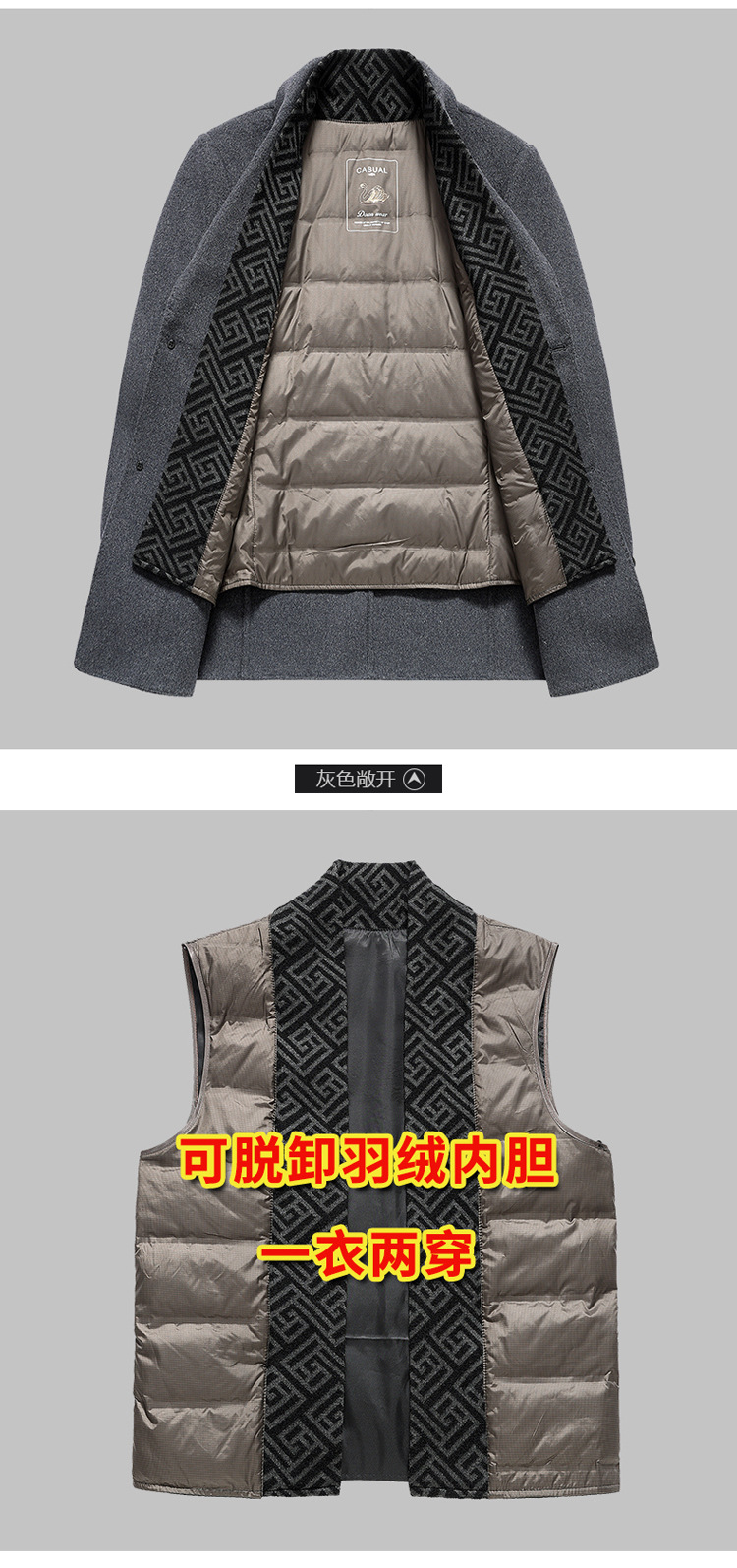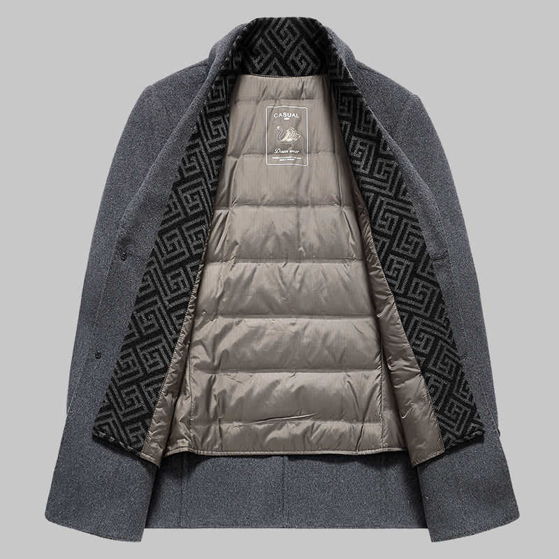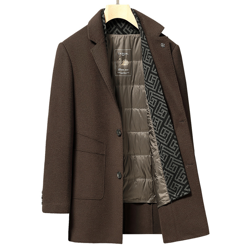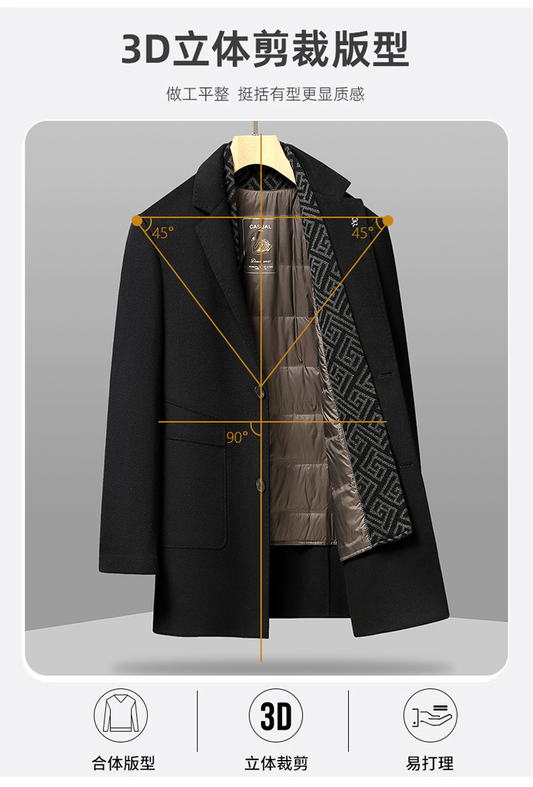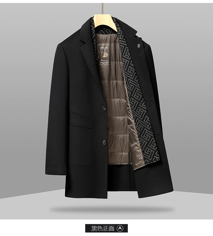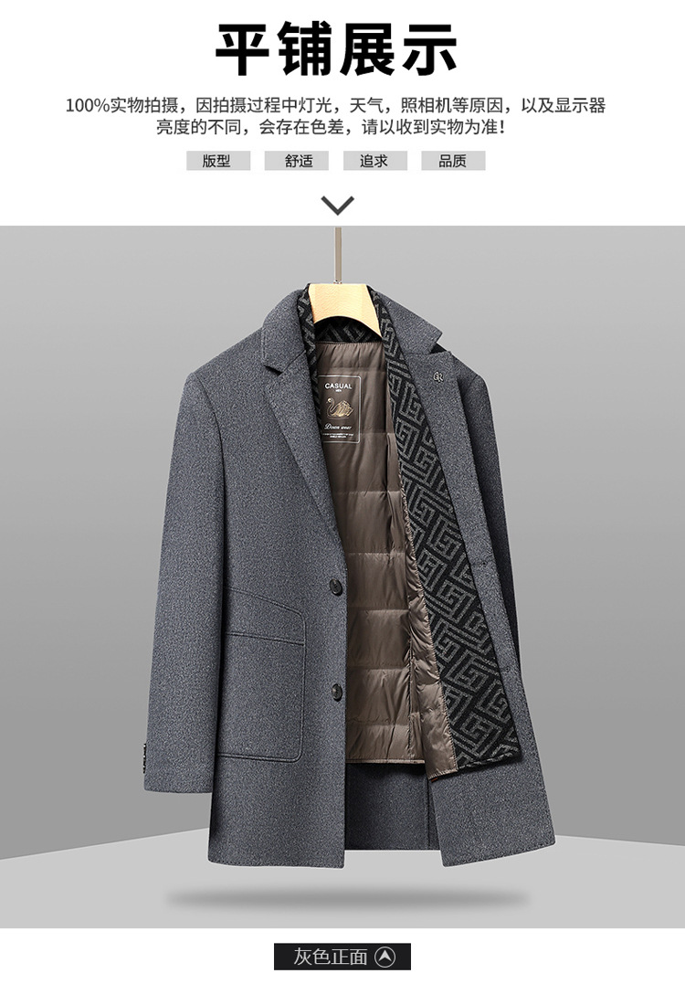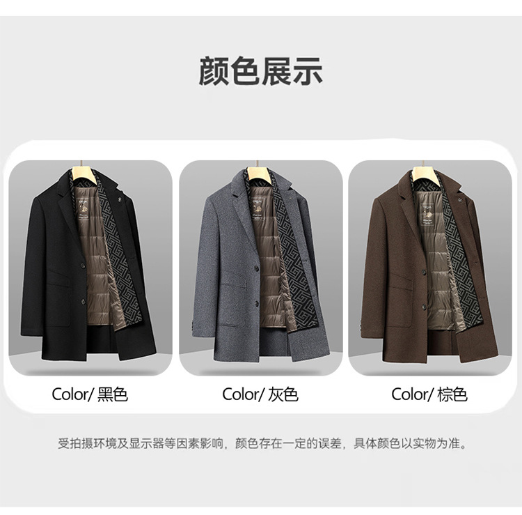 가을과 겨울 남성용 모직 코트 비즈니스 캐주얼 스카프 칼라 이동식 라이너 양면 모직 코트 코트