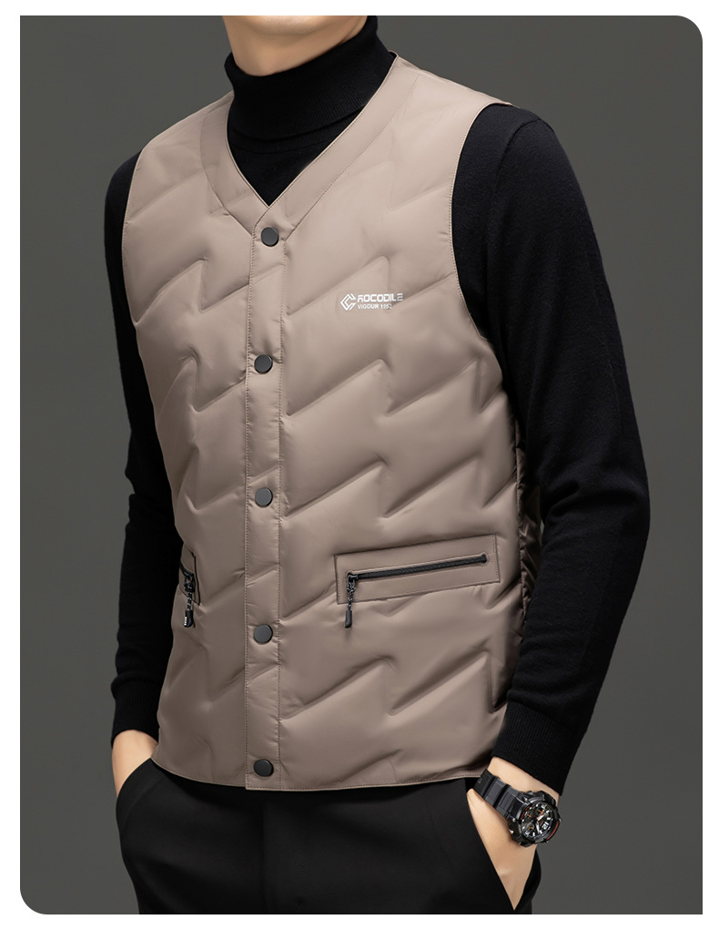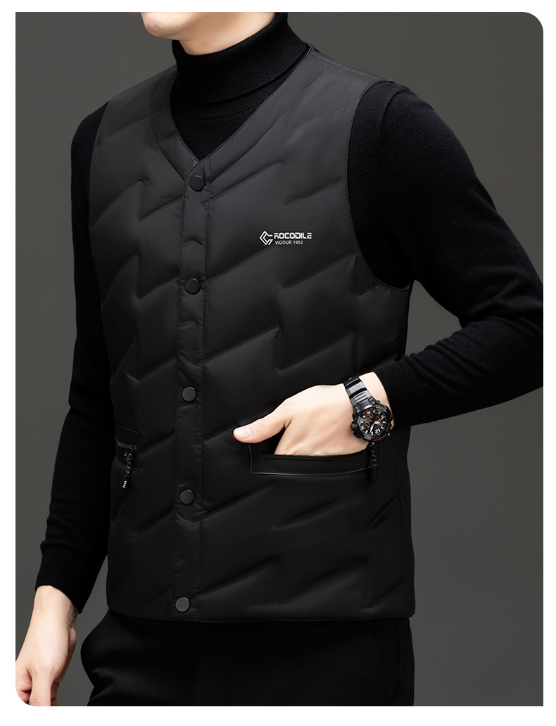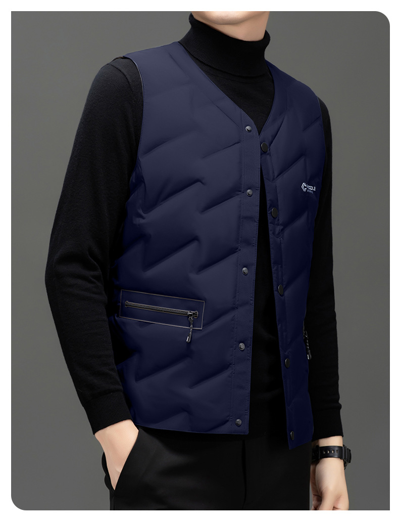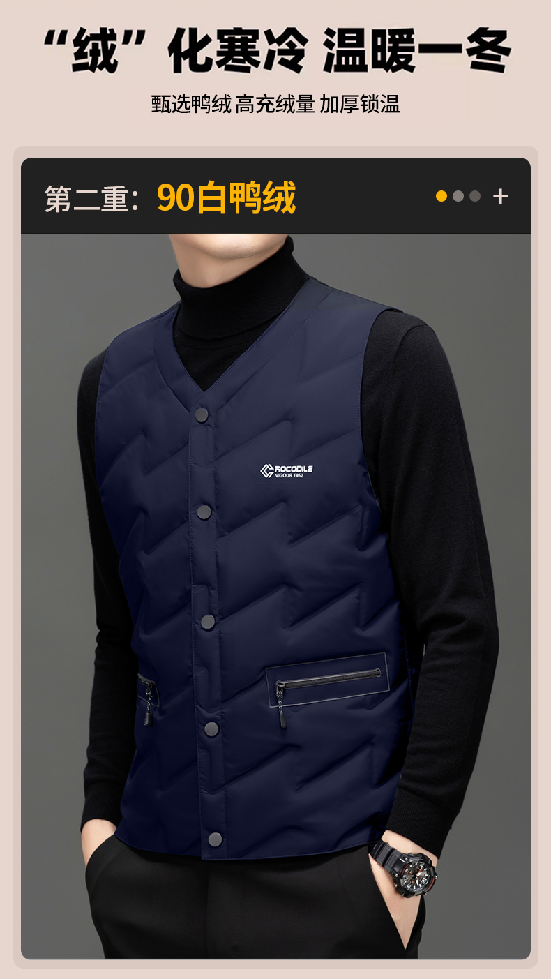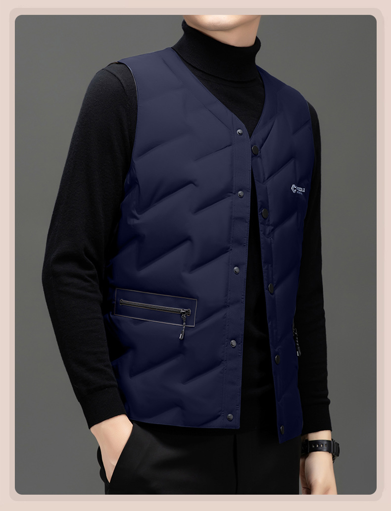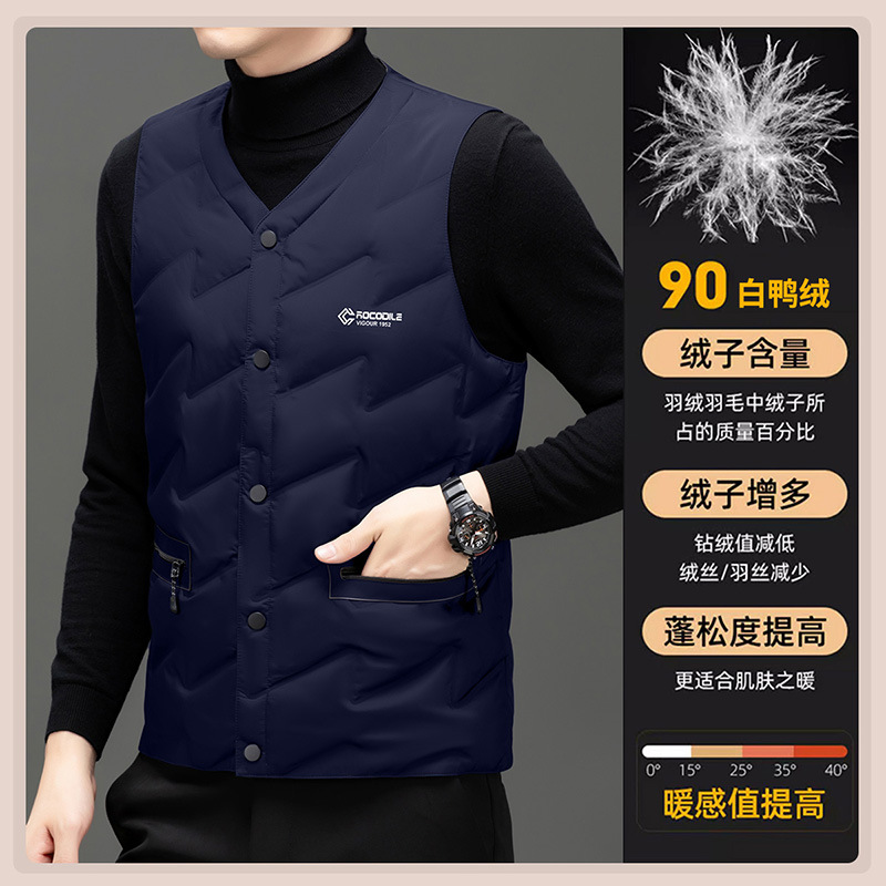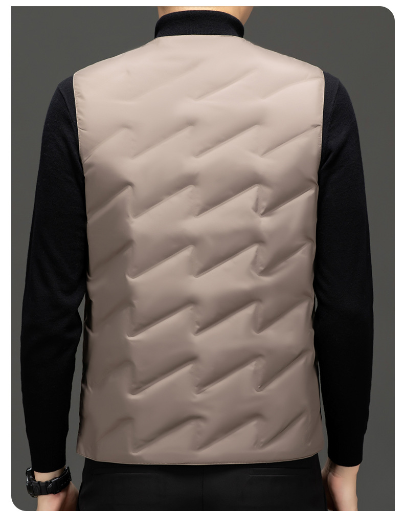 가을과 겨울 새로운 고급 남성 다운 조끼 패션 캐주얼 싱글 브레스트 민소매 양복 조끼 따뜻한 화이트 오리 다운 조끼