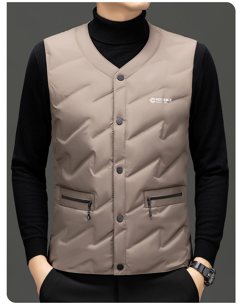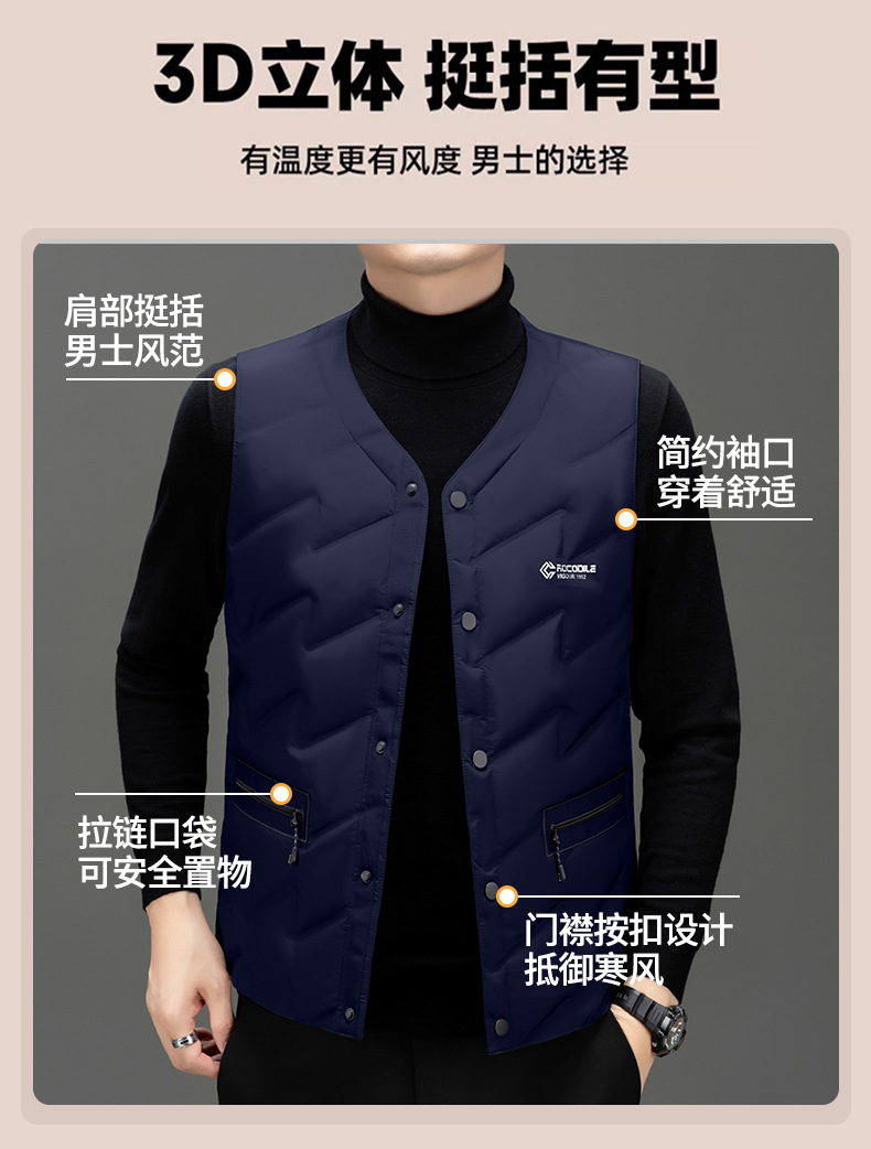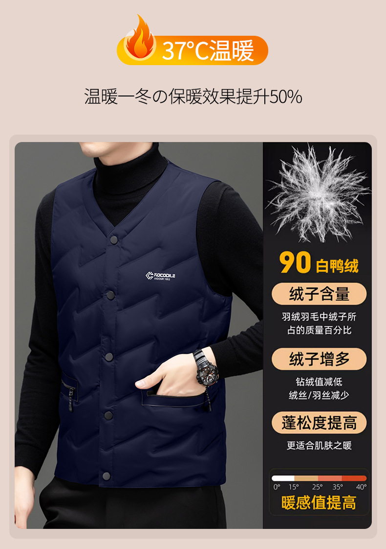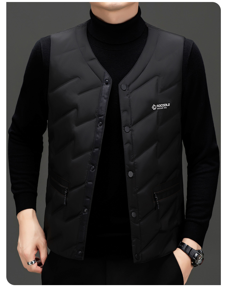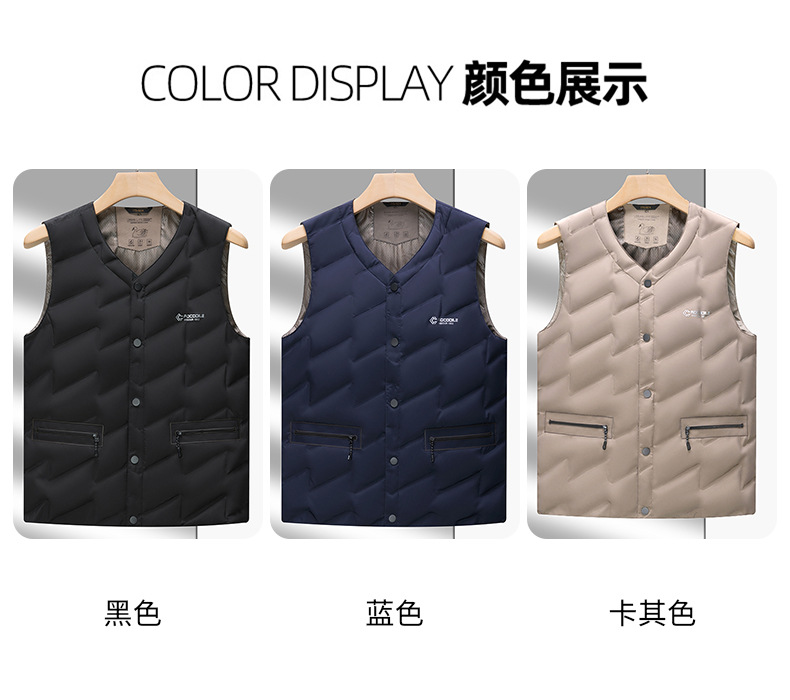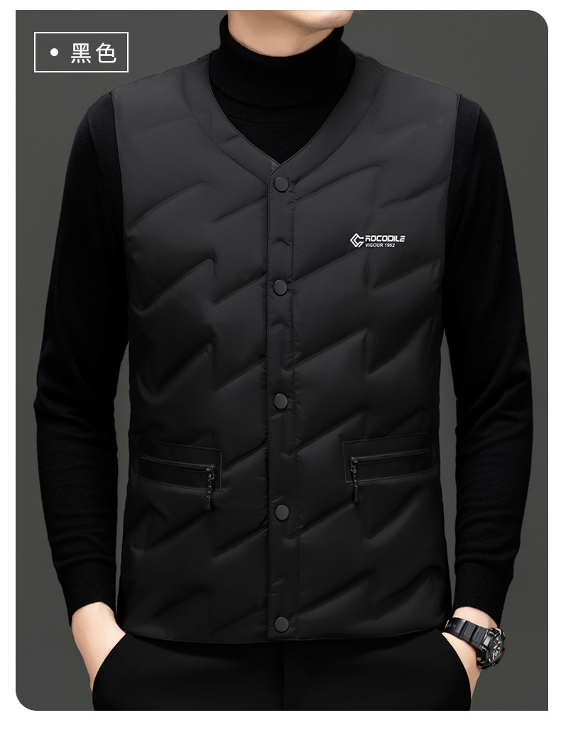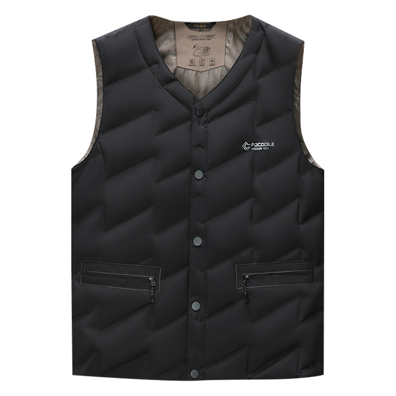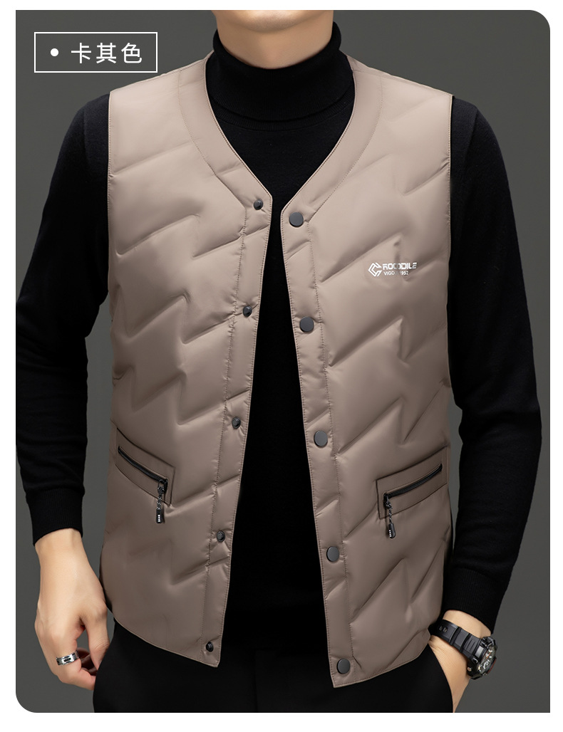 가을과 겨울 새로운 고급 남성 다운 조끼 패션 캐주얼 싱글 브레스트 민소매 양복 조끼 따뜻한 화이트 오리 다운 조끼