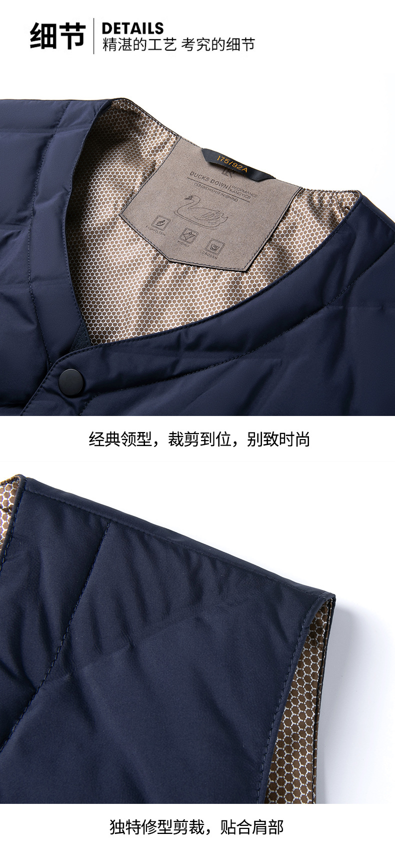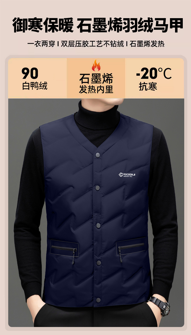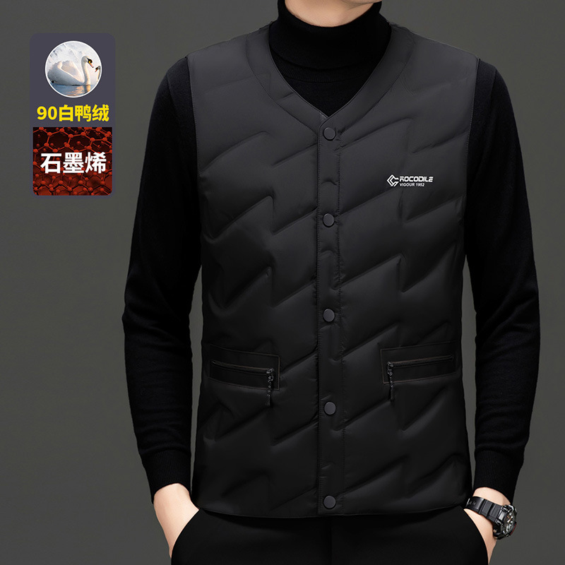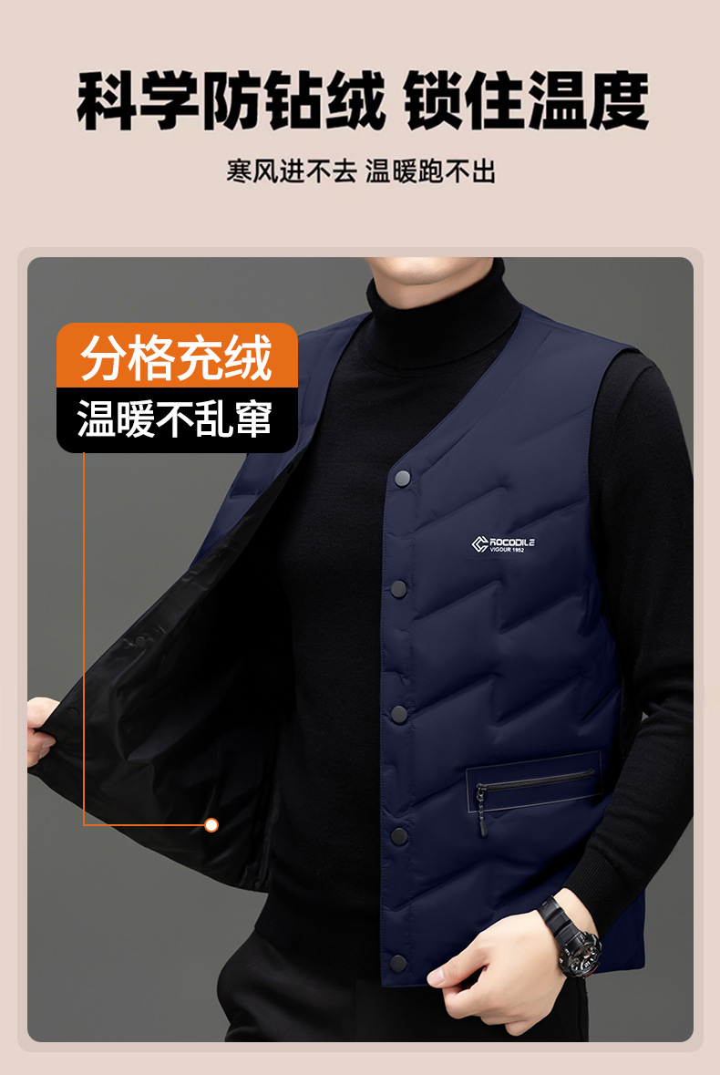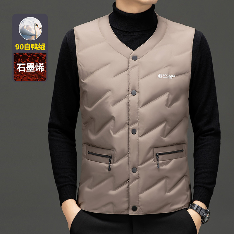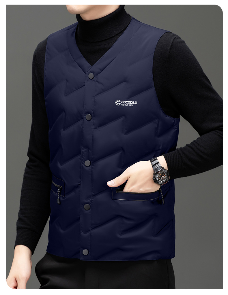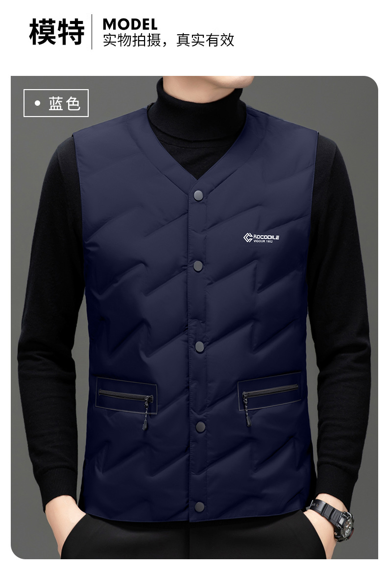 가을과 겨울 새로운 고급 남성 다운 조끼 패션 캐주얼 싱글 브레스트 민소매 양복 조끼 따뜻한 화이트 오리 다운 조끼
