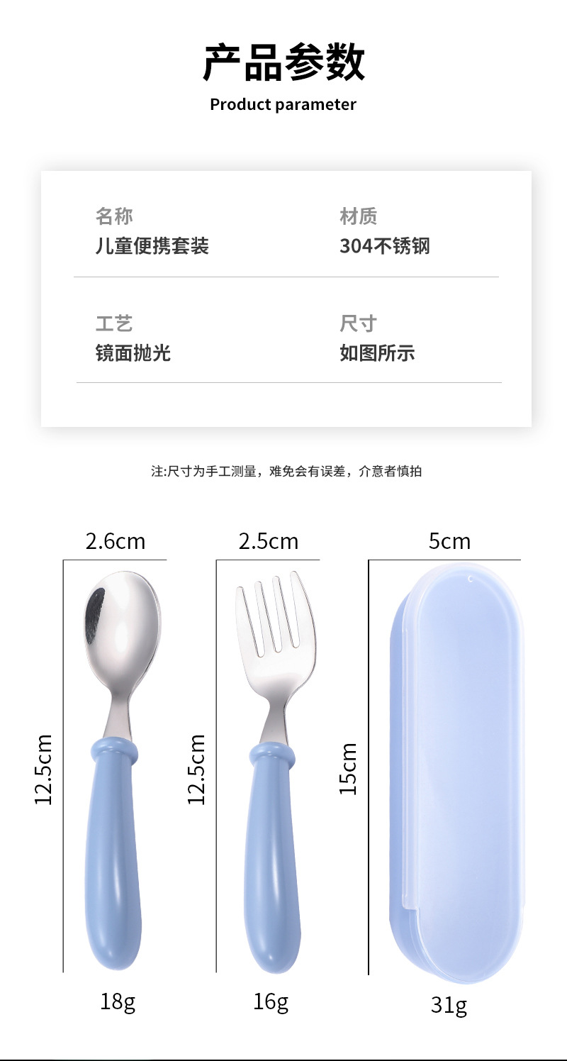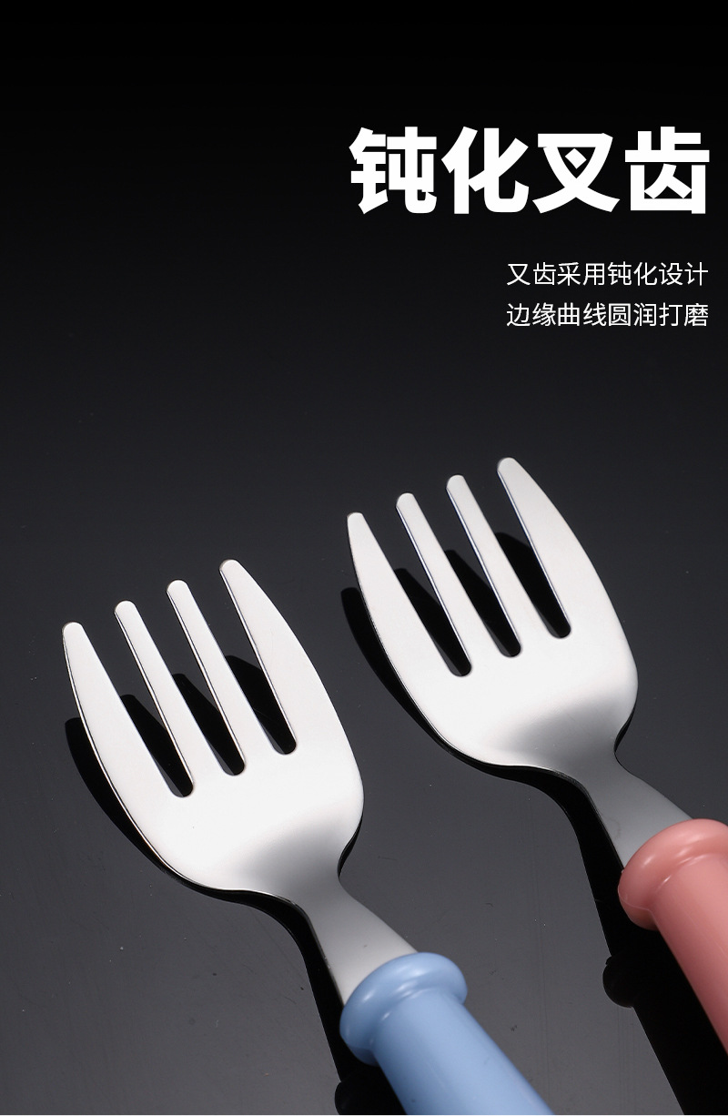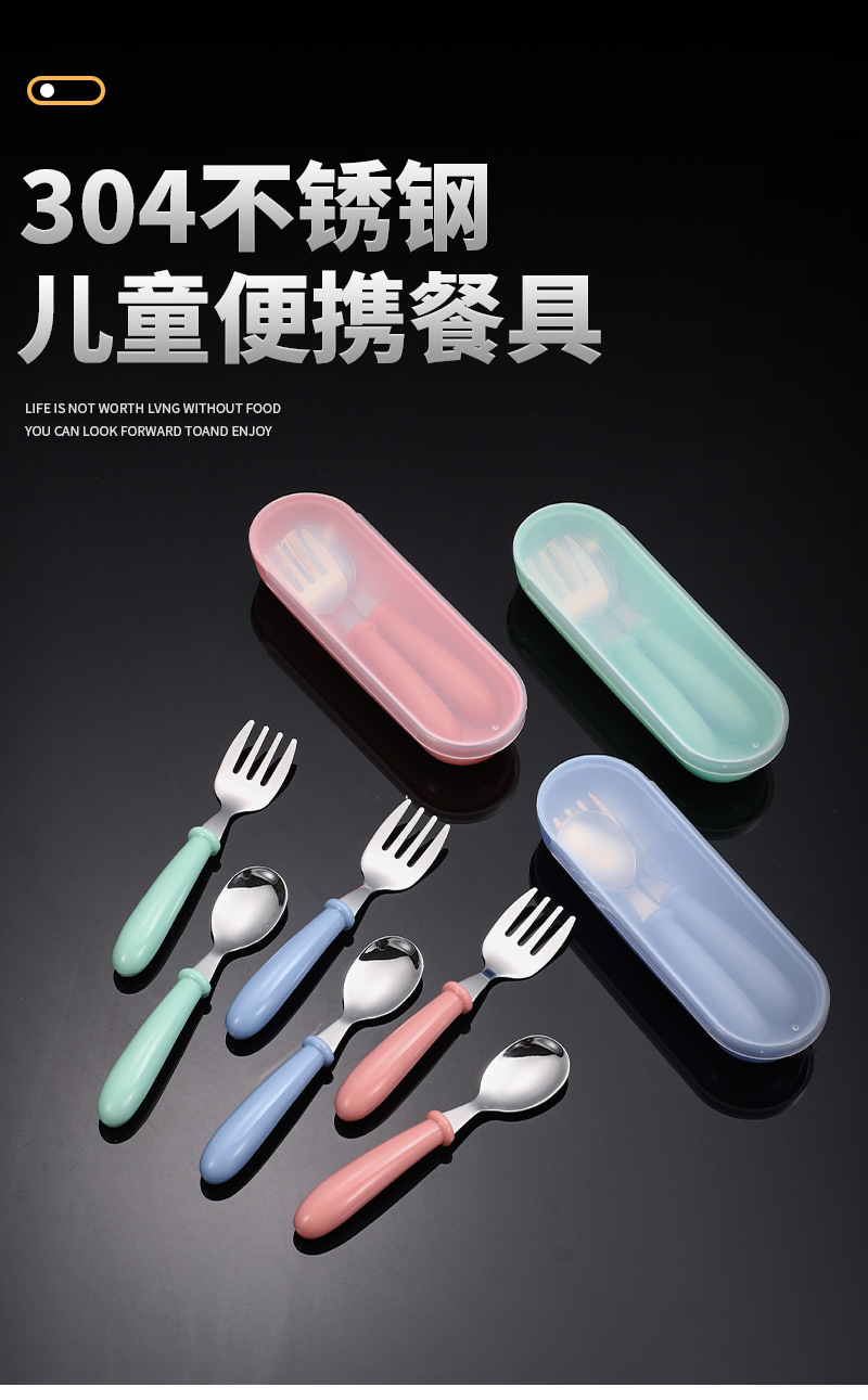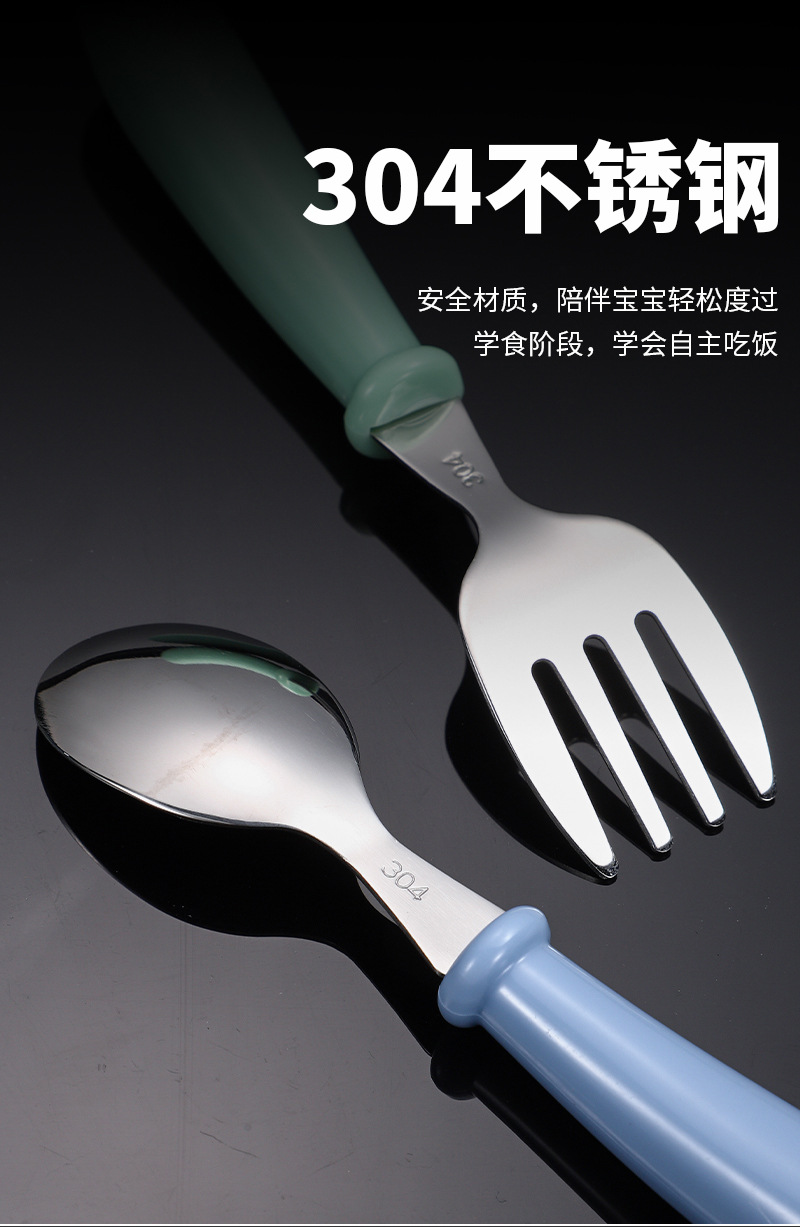 국경 간 아마존 304 스테인레스 스틸 어린이 포크 스푼 창조적 인 휴대용 식기 세트 유치원 아기 보완 숟가락