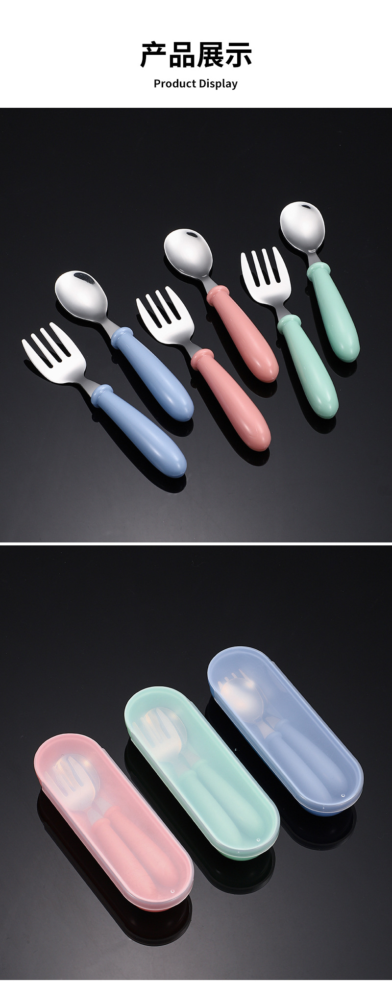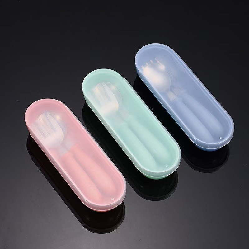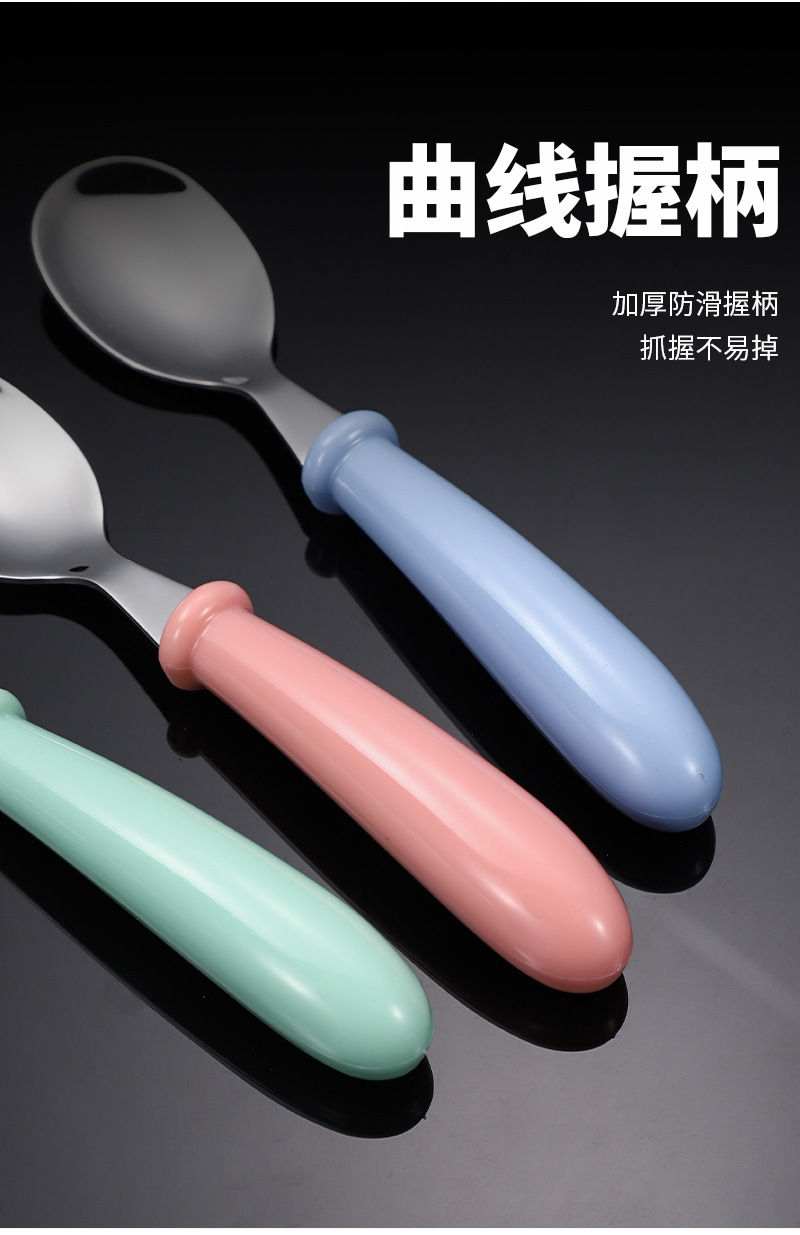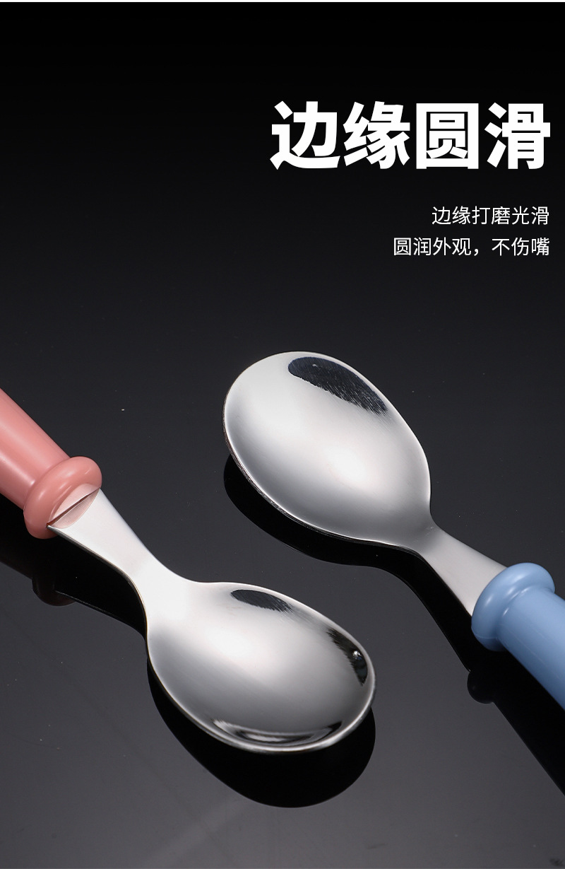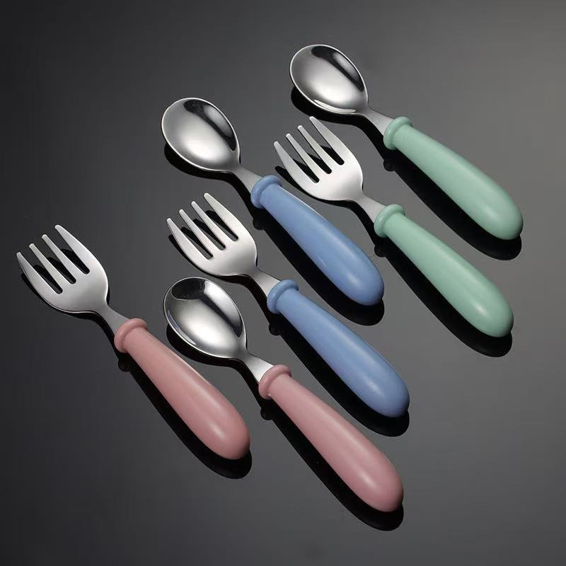 국경 간 아마존 304 스테인레스 스틸 어린이 포크 스푼 창조적 인 휴대용 식기 세트 유치원 아기 보완 숟가락