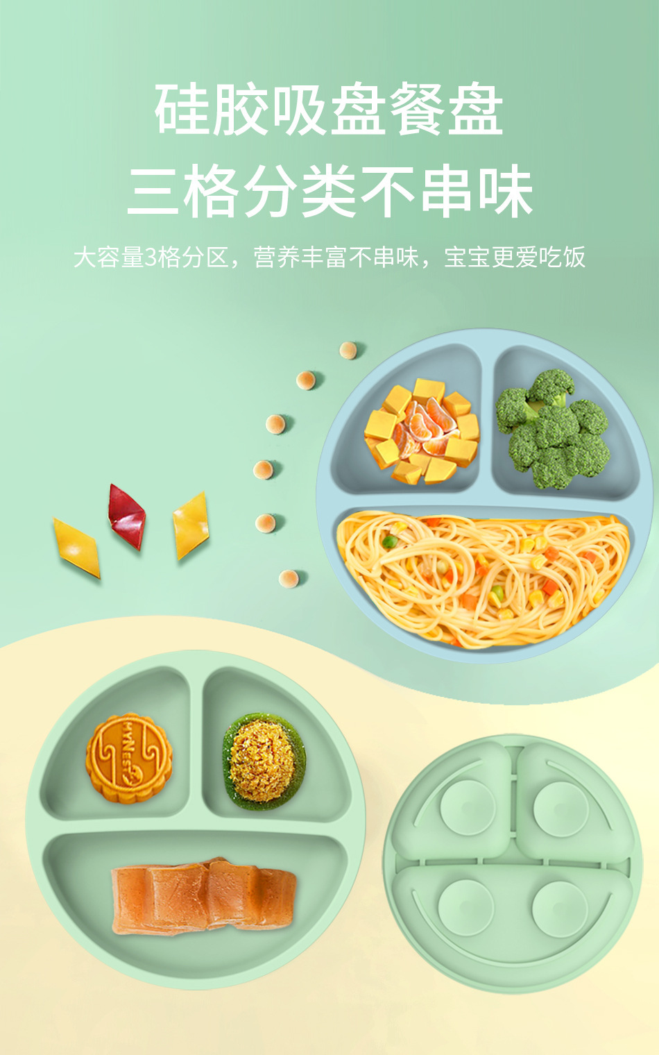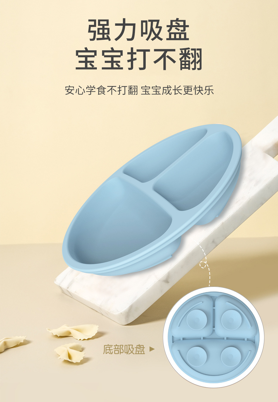 아마존의 인기 실리콘 분할 접시 흡입 컵 유아 및 유아 식품 보충 식기 식품 등급 실리콘 접시