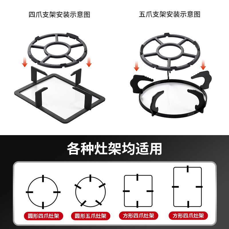 가스 스토브 주철 미끄럼 방지 랙 업그레이드 주철 4 발톱 5 발톱 유니버설 밀크 팟 랙 스토브 홀더 작은 냄비 브래킷