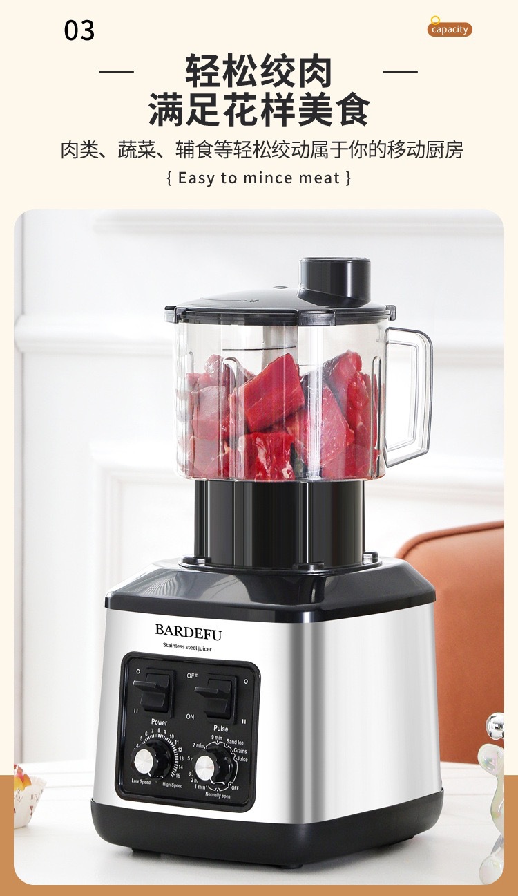 국경 간 아프리카 3L6in1블렌더 상업용 스테인레스 스틸 고출력 순수 구리 믹서 다진 고기 으깬 얼음 주스