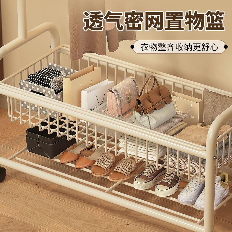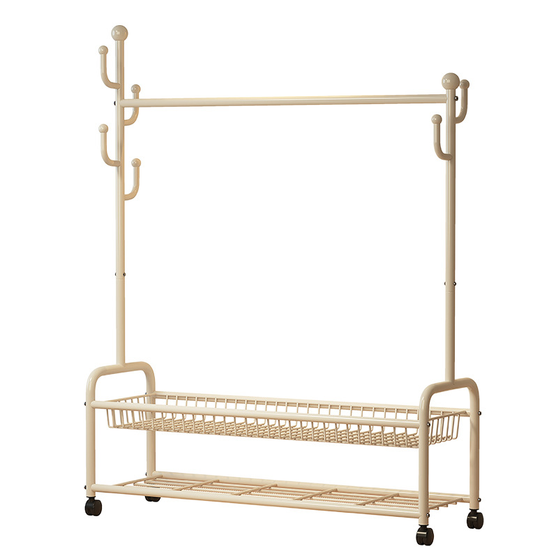 120cm 단층 메쉬 바스켓 - 크림 화이트 + 후크 6개 + 금속 범용 휠