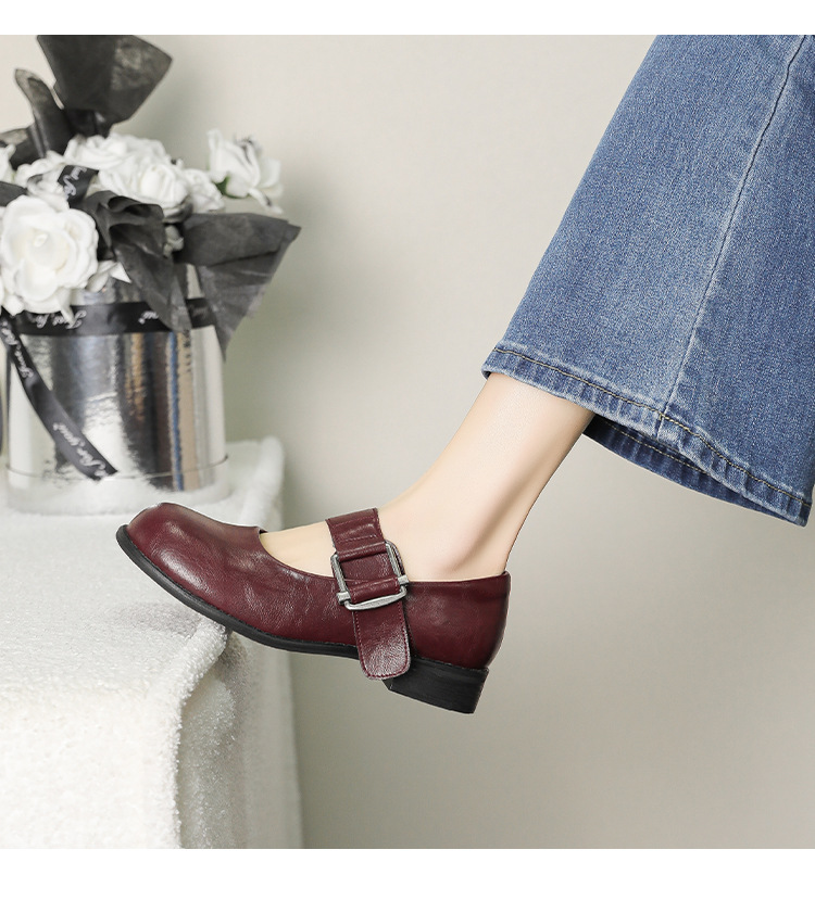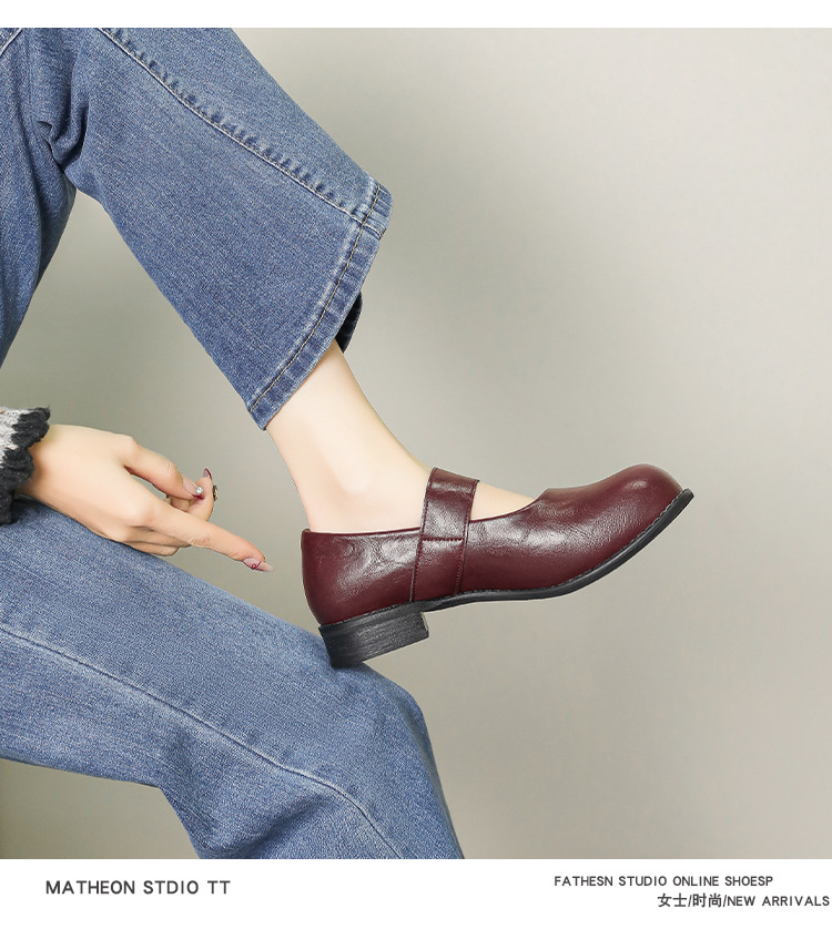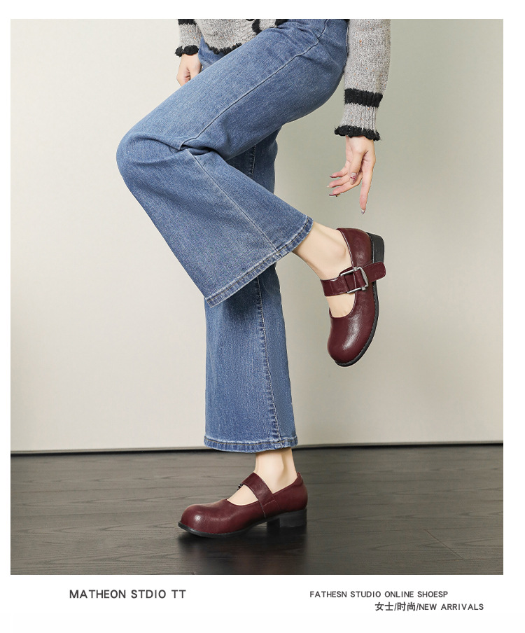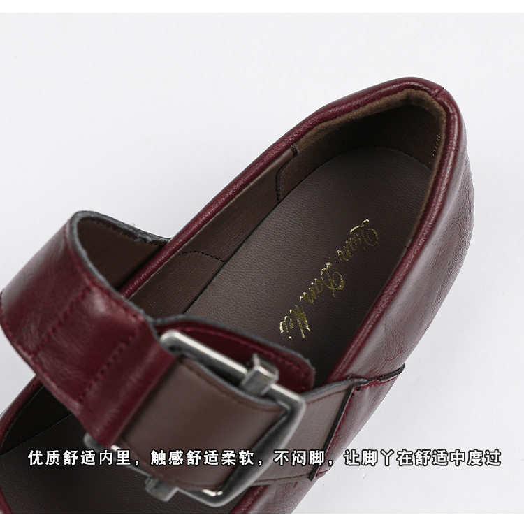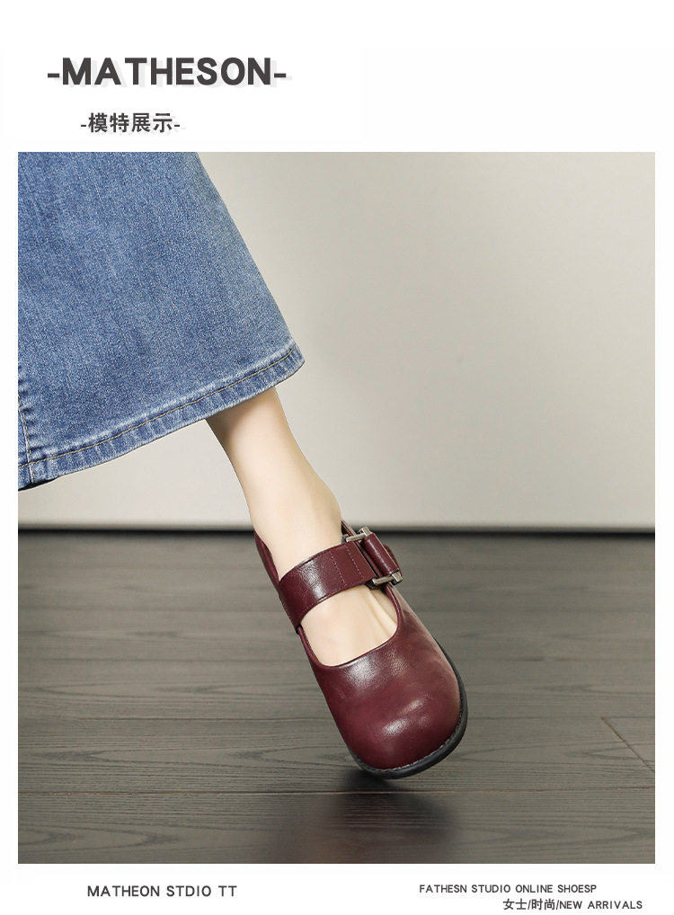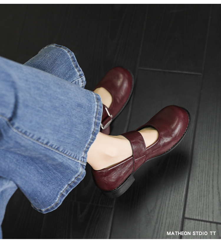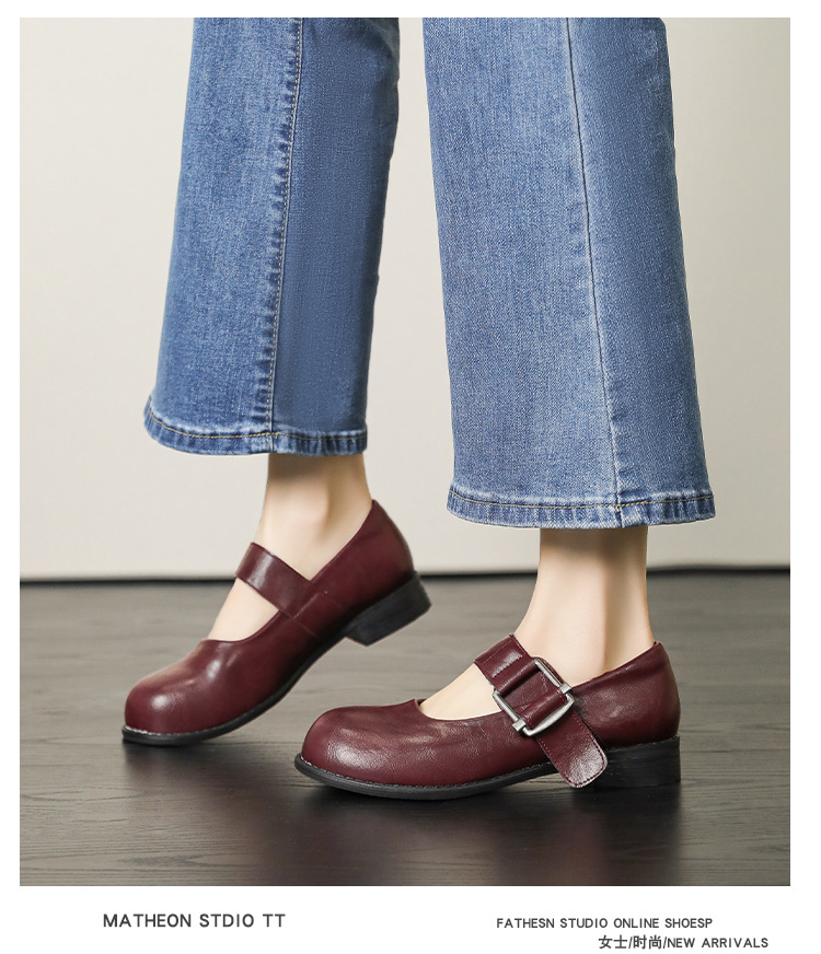 스팟 모델 ~ 메리 제인 신발 여성 2025 새로운 가을 복고풍 프랑스 부드러운 가죽 플랫 신발 두꺼운 뒤꿈치 다목적 신발