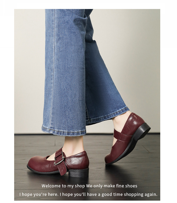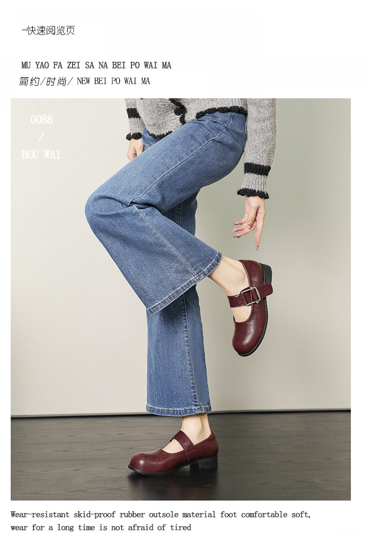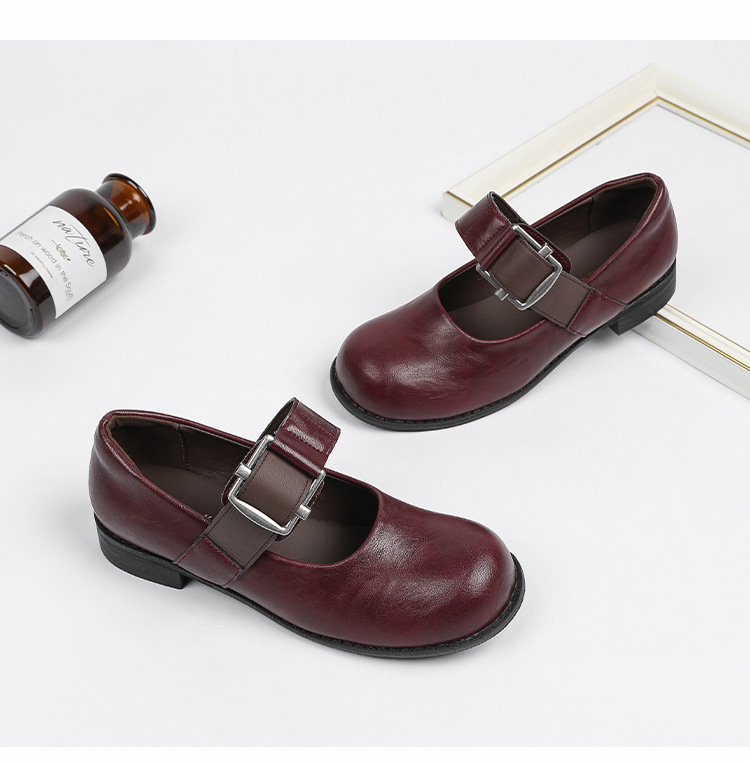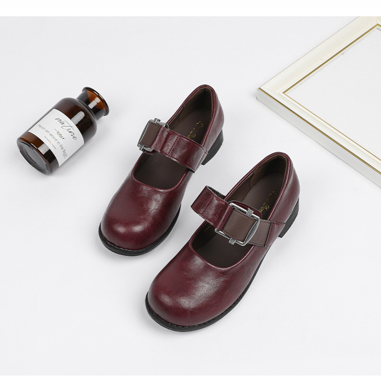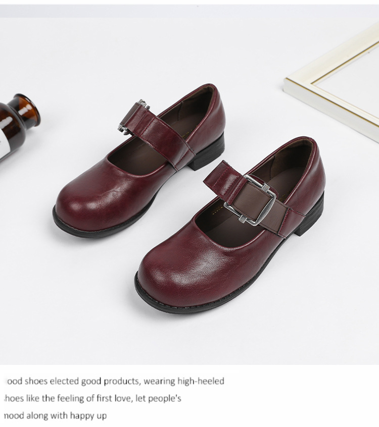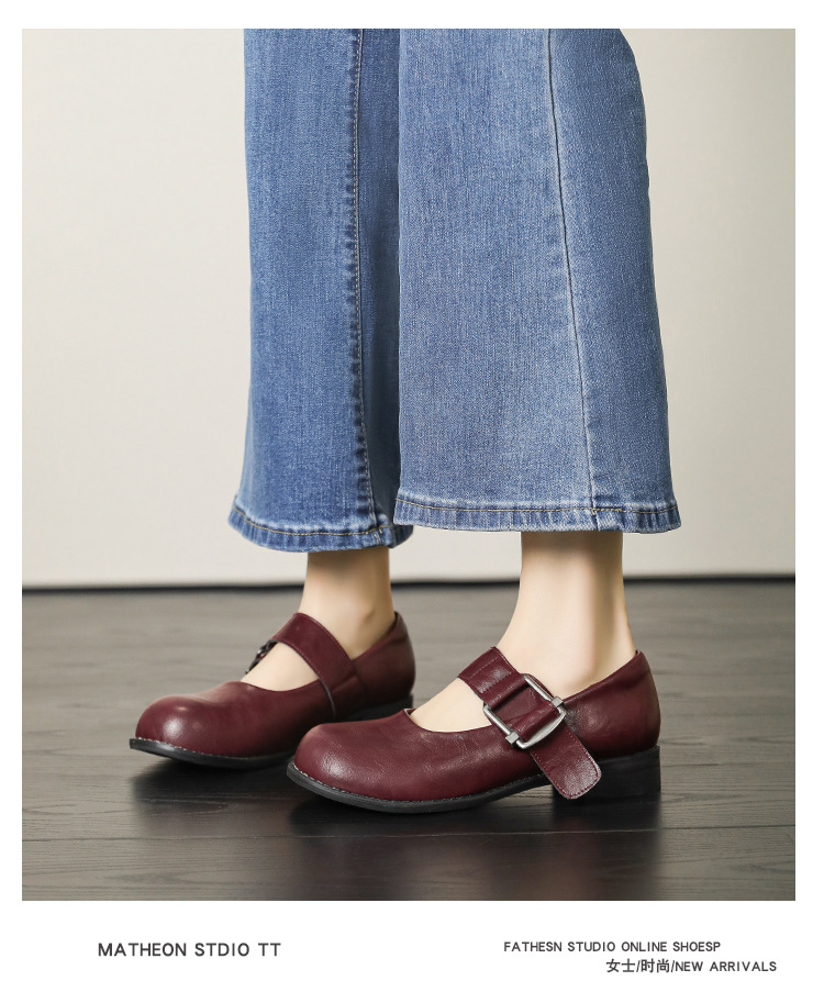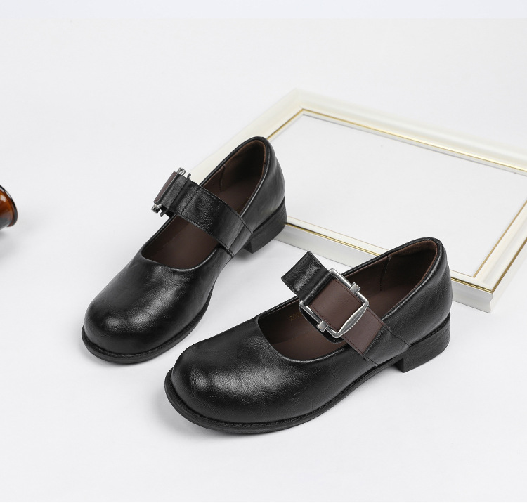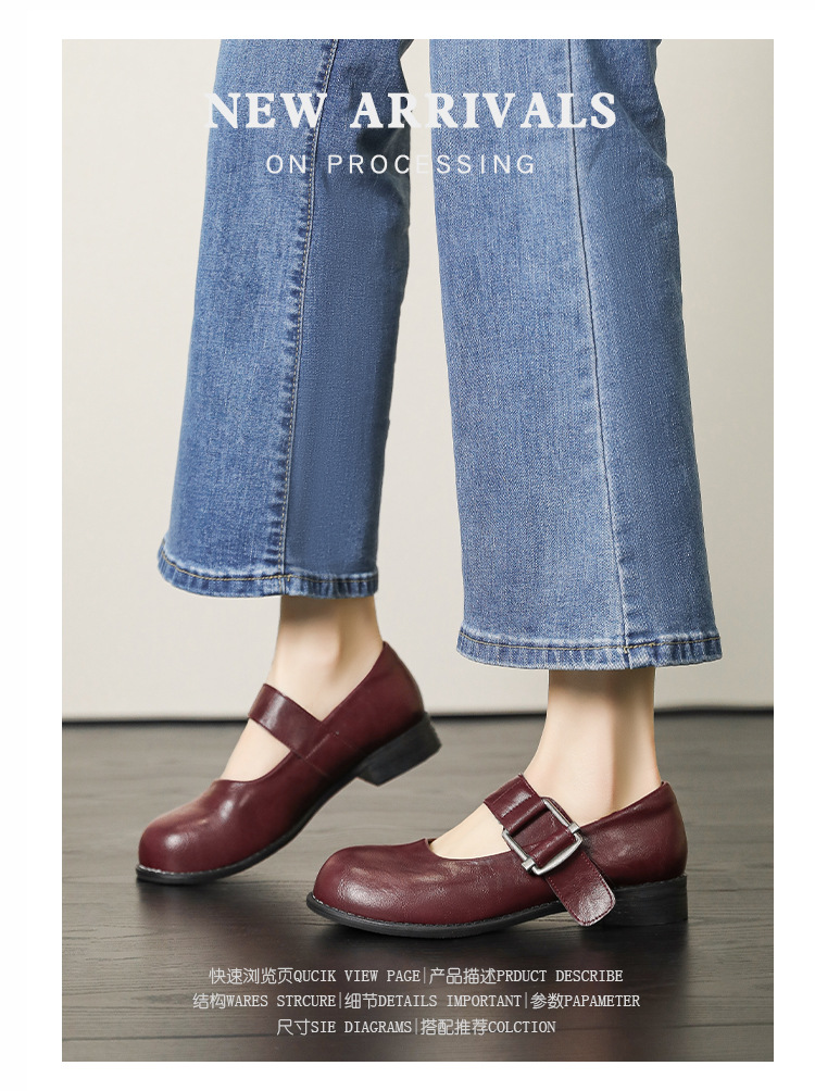 스팟 모델 ~ 메리 제인 신발 여성 2025 새로운 가을 복고풍 프랑스 부드러운 가죽 플랫 신발 두꺼운 뒤꿈치 다목적 신발