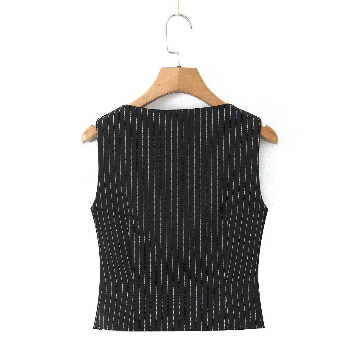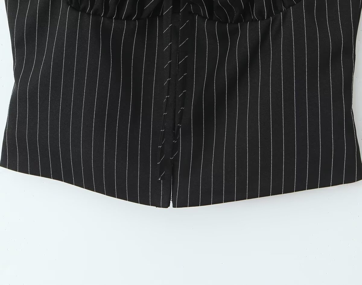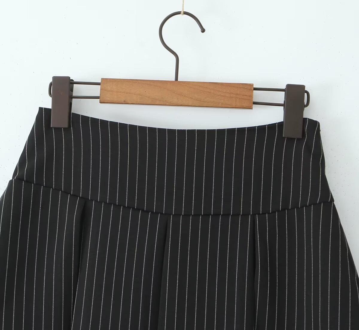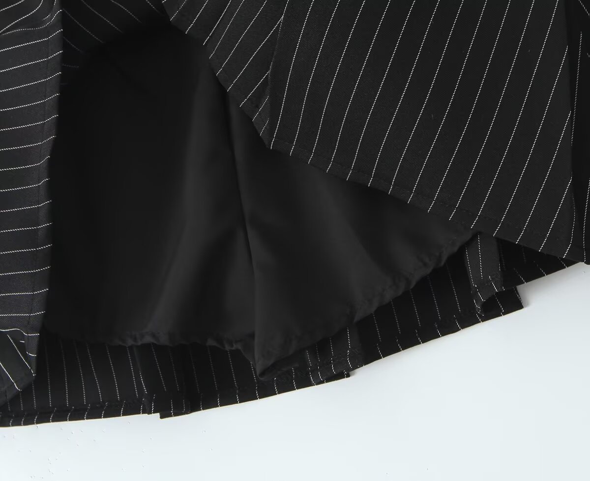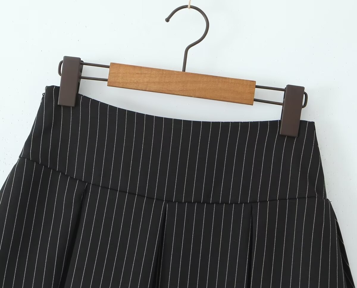 ZAR 가을 신상 여성복 유럽풍 프렌치 디자인 조끼 스트라이프 끈 탑 플리츠 스커트 세트