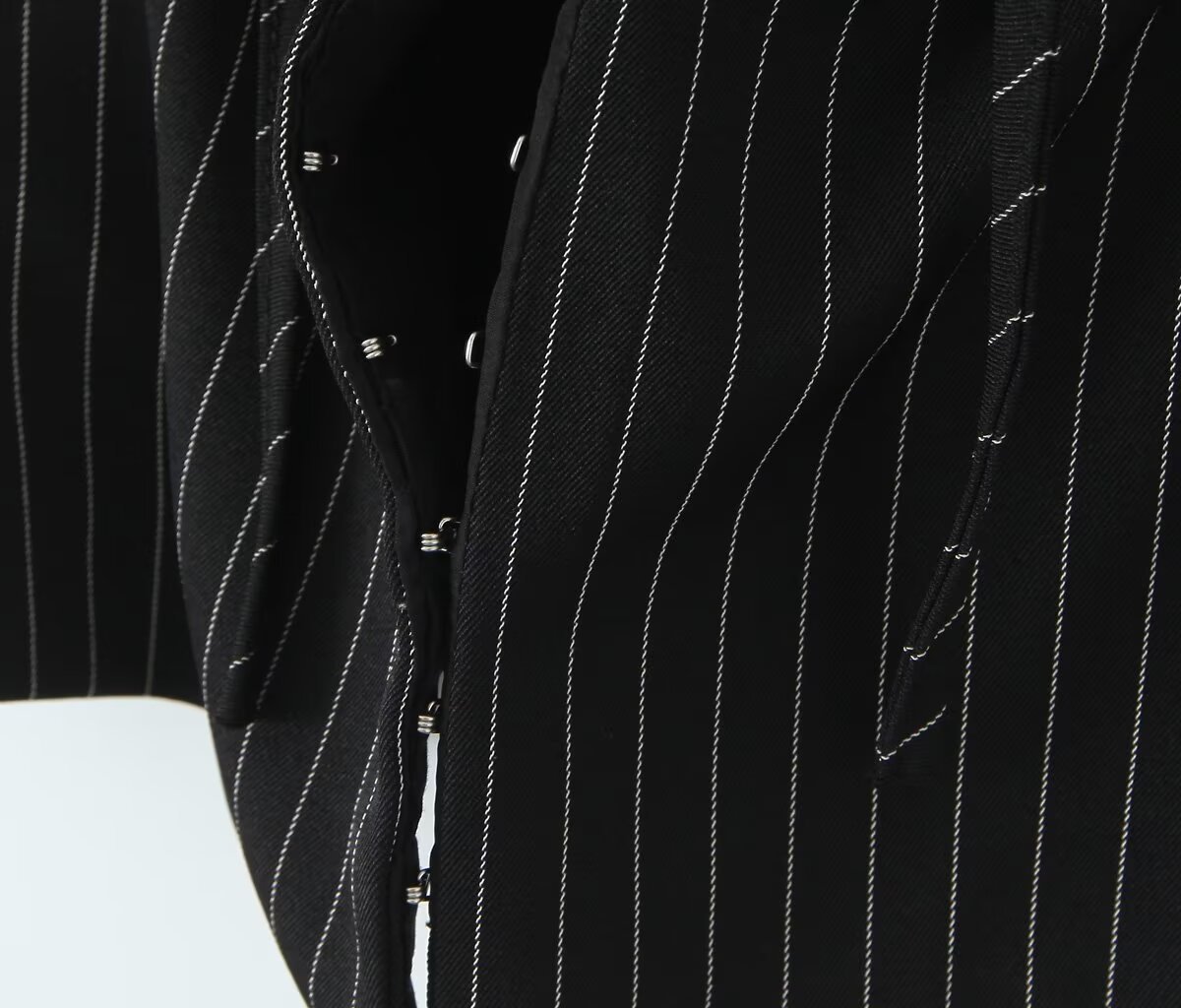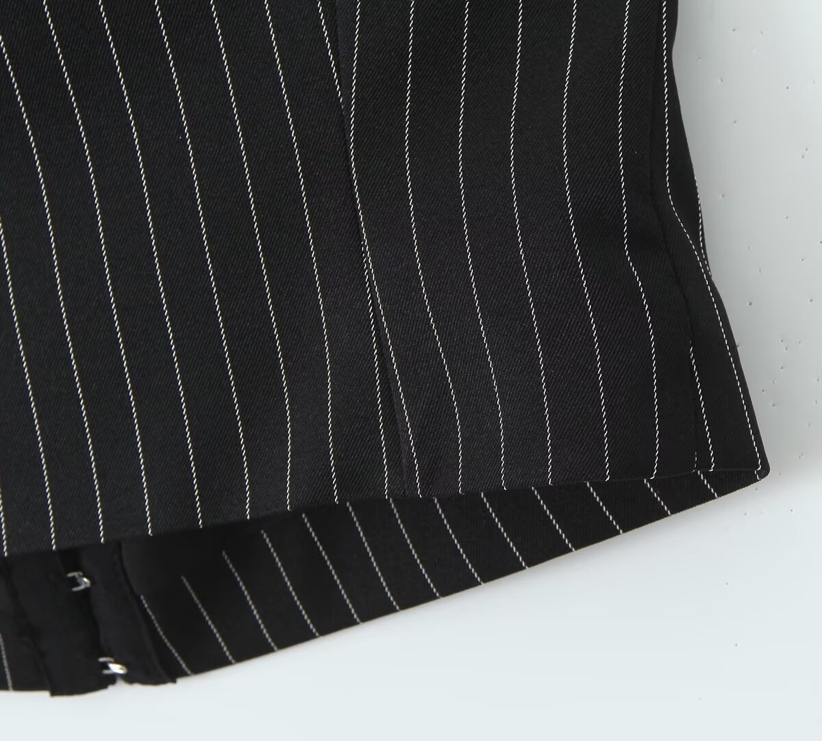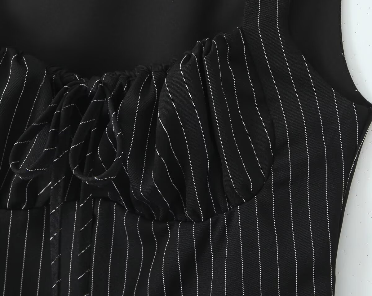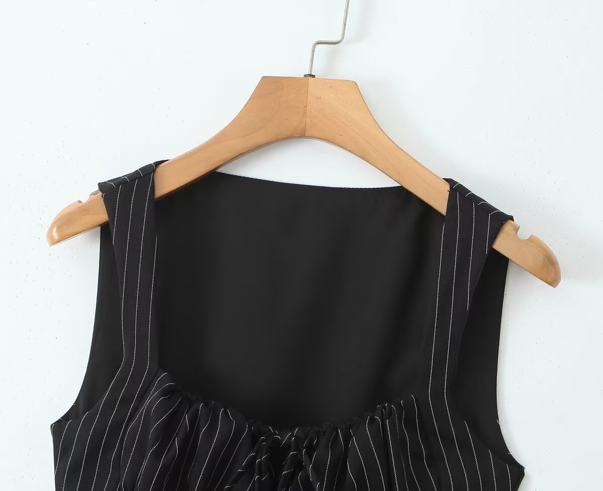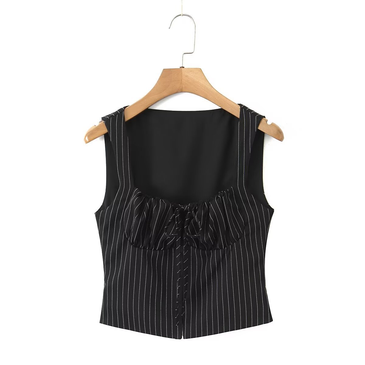 ZAR 가을 신상 여성복 유럽풍 프렌치 디자인 조끼 스트라이프 끈 탑 플리츠 스커트 세트