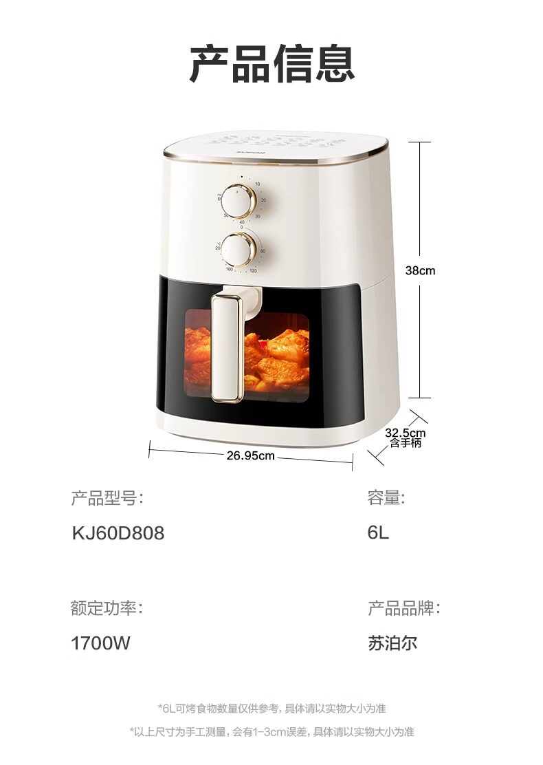 Suppor 에어 프라이어 가정용 6L 비주얼 2023 오븐 통합 대용량 KJ60D808/50Y804