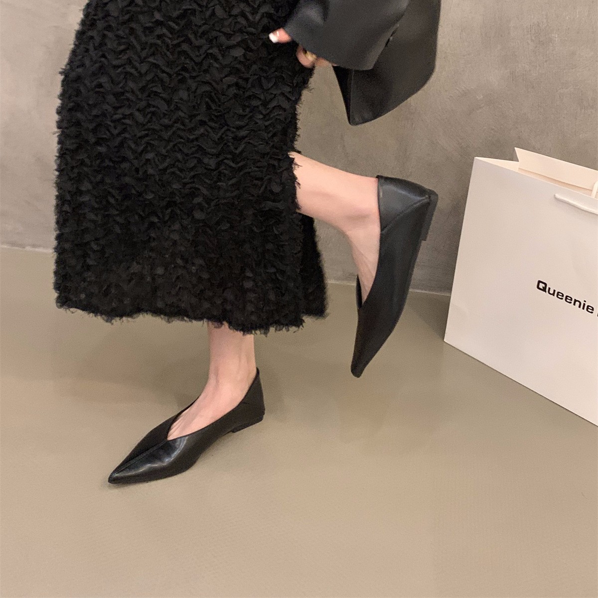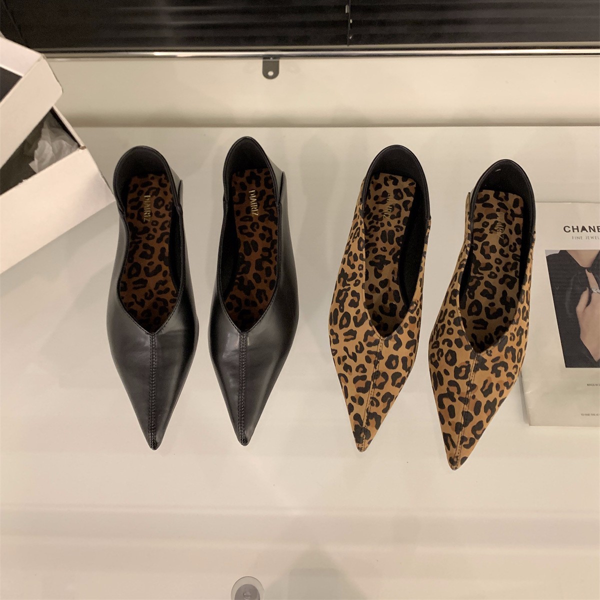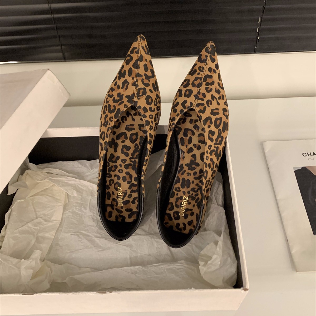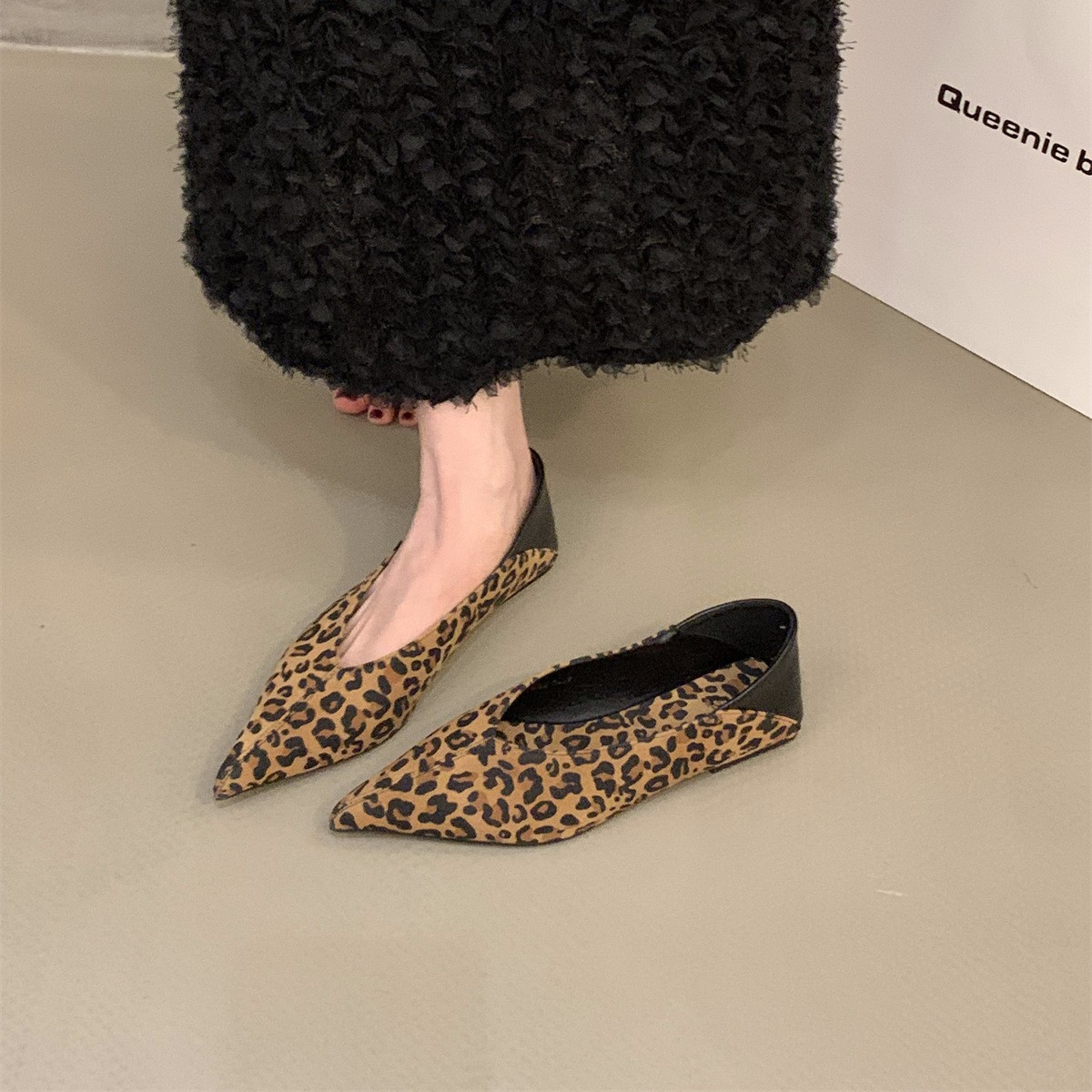 플랫 블랙 포인팅 발가락 신발 여성 신발 2025 새로운 봄 빈티지 스웨이드 프랑스 레오파드 무늬 얕은 입 신발
