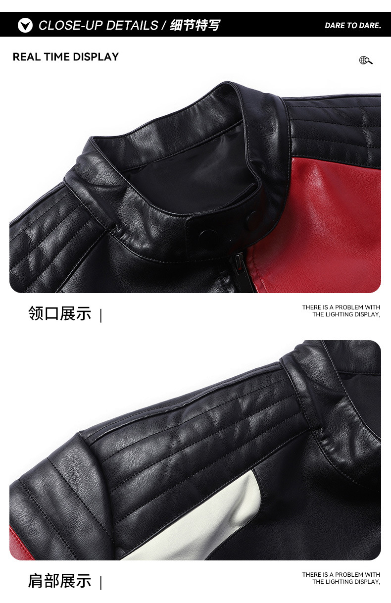새로운 국경 유럽 사이즈 스탠드 칼라 남성 가죽 자켓 스티칭 자수 남성 가죽 재킷 오토바이 의류 레이싱 의류 오토바이