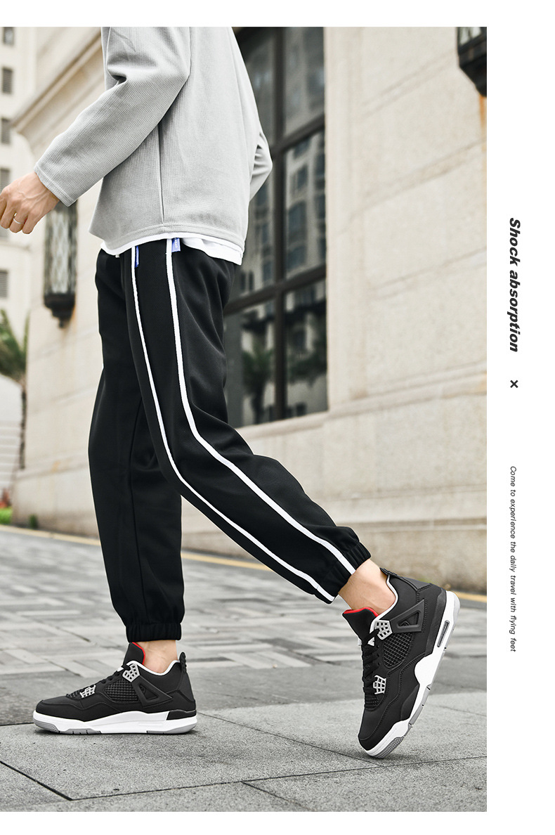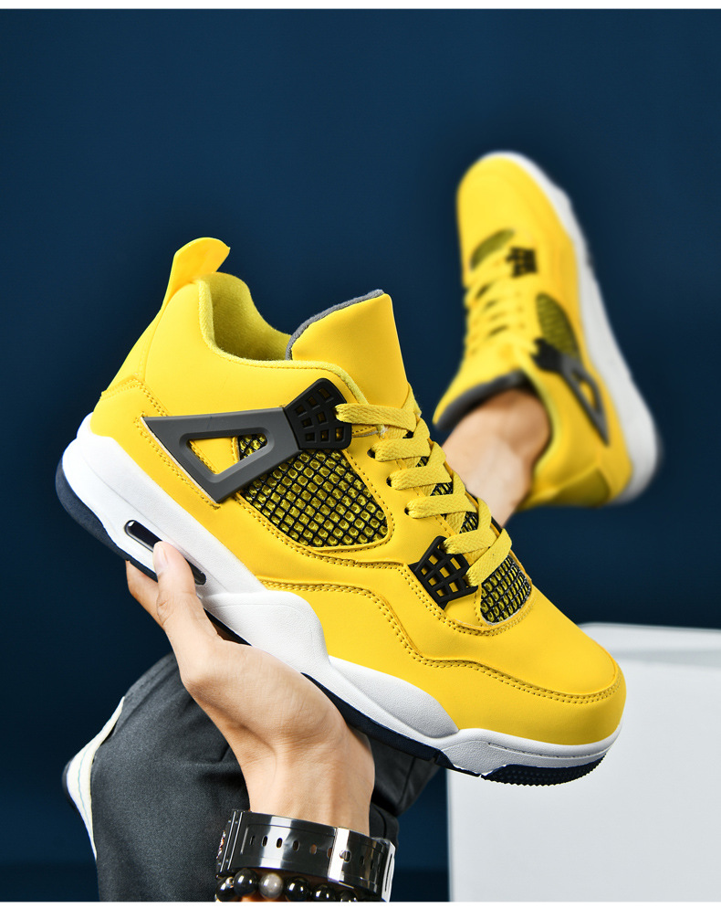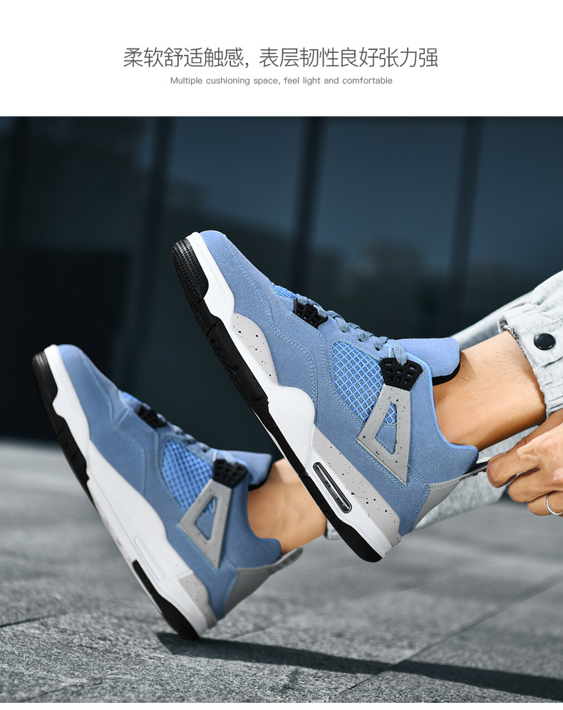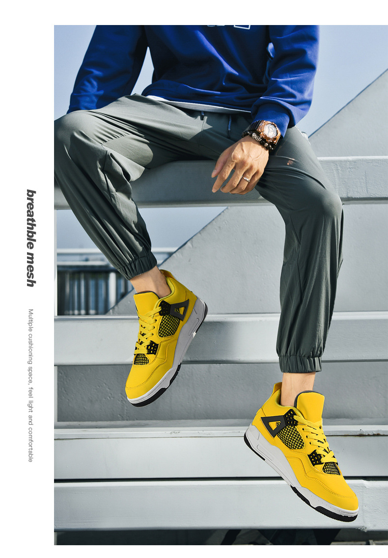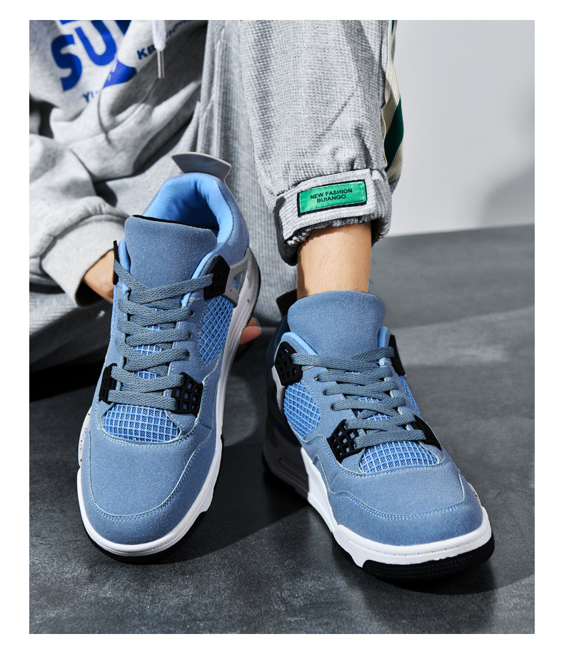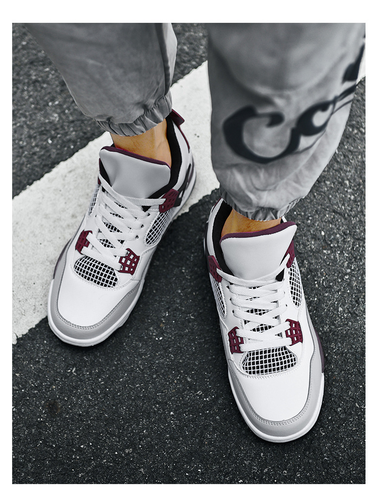 크로스보더 대형 사이즈 남성 농구화, 통기성 메쉬 소재, 고무 밑창, 미끄럼 방지, 내마모성, 중간 높이의 플라이 니트 학생용 운동화