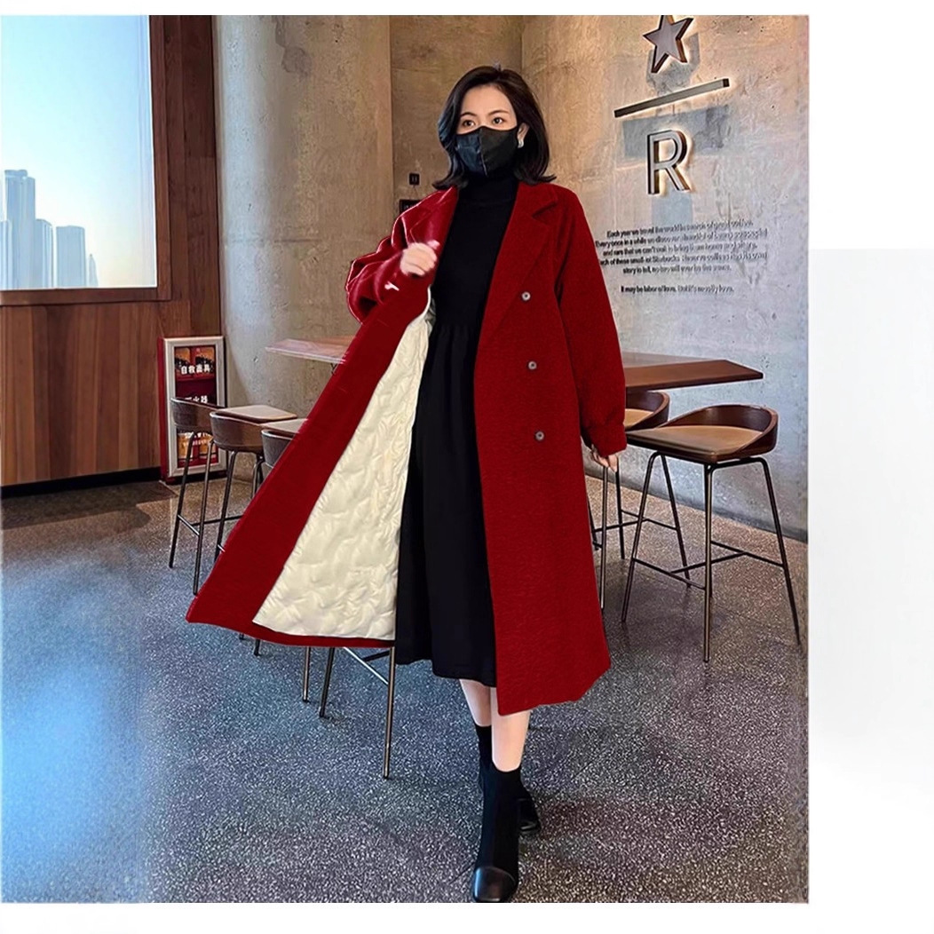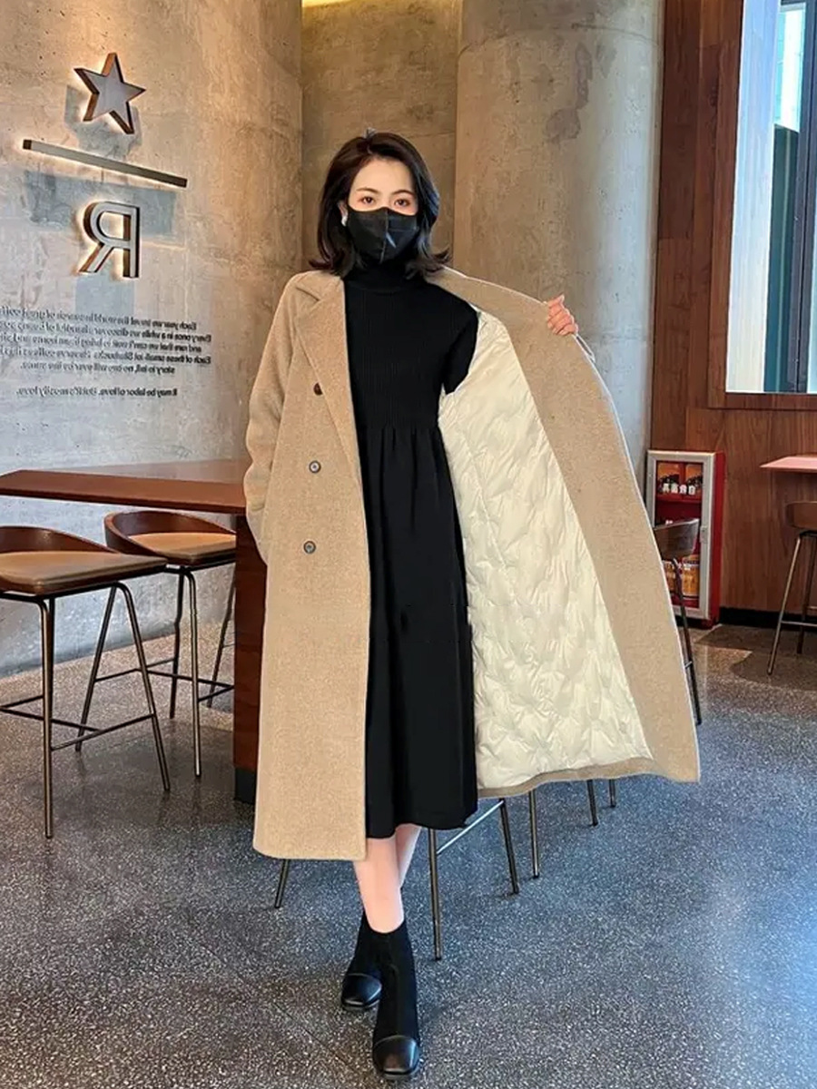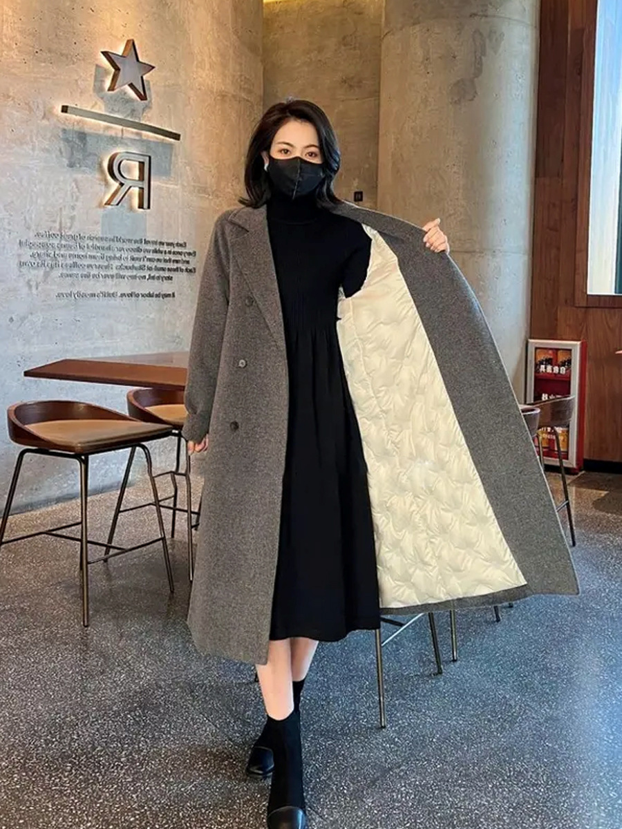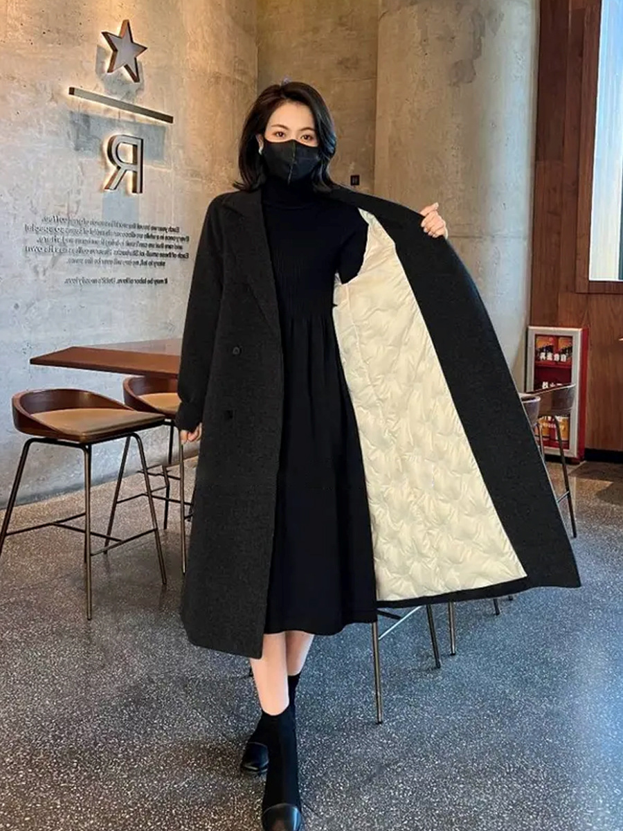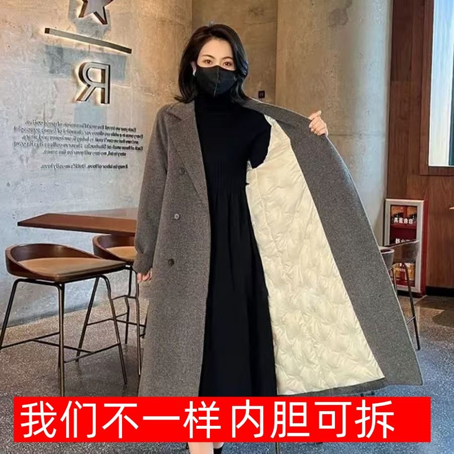 2025 가을 한국 스타일 탈착식 다운 라이너 화이트 오리 다운 모직 코트 여성용 따뜻한 모직 다운 코트
