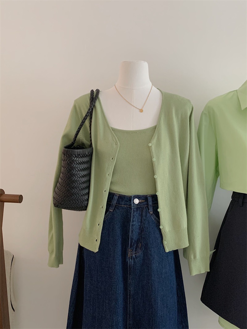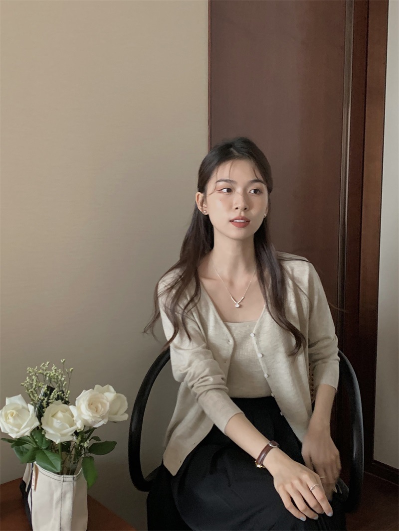 한국 스타일 니트 카디건 스트랩 탑 여성 가을 겨울 2024 부드러운 스타일 착용 유지 투피스 세트